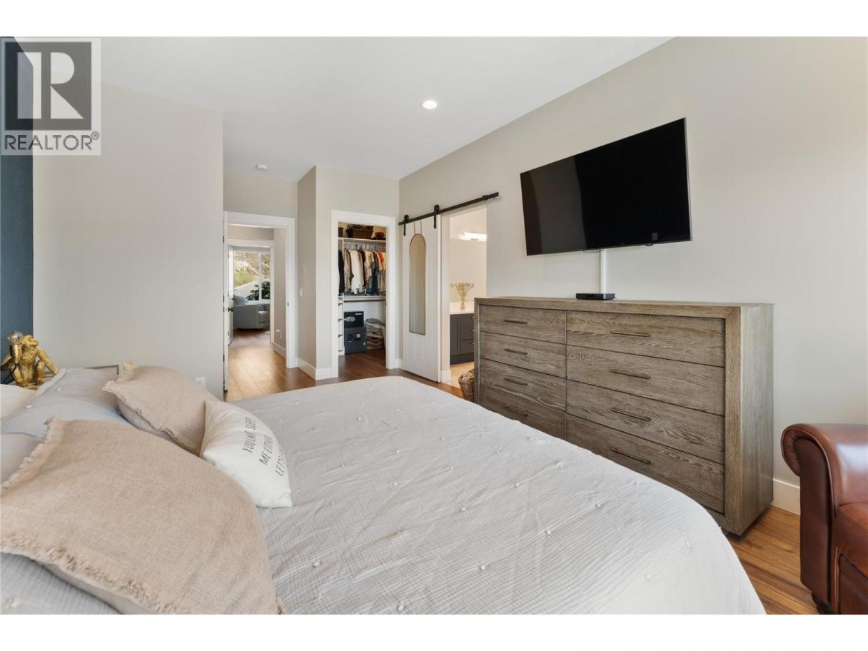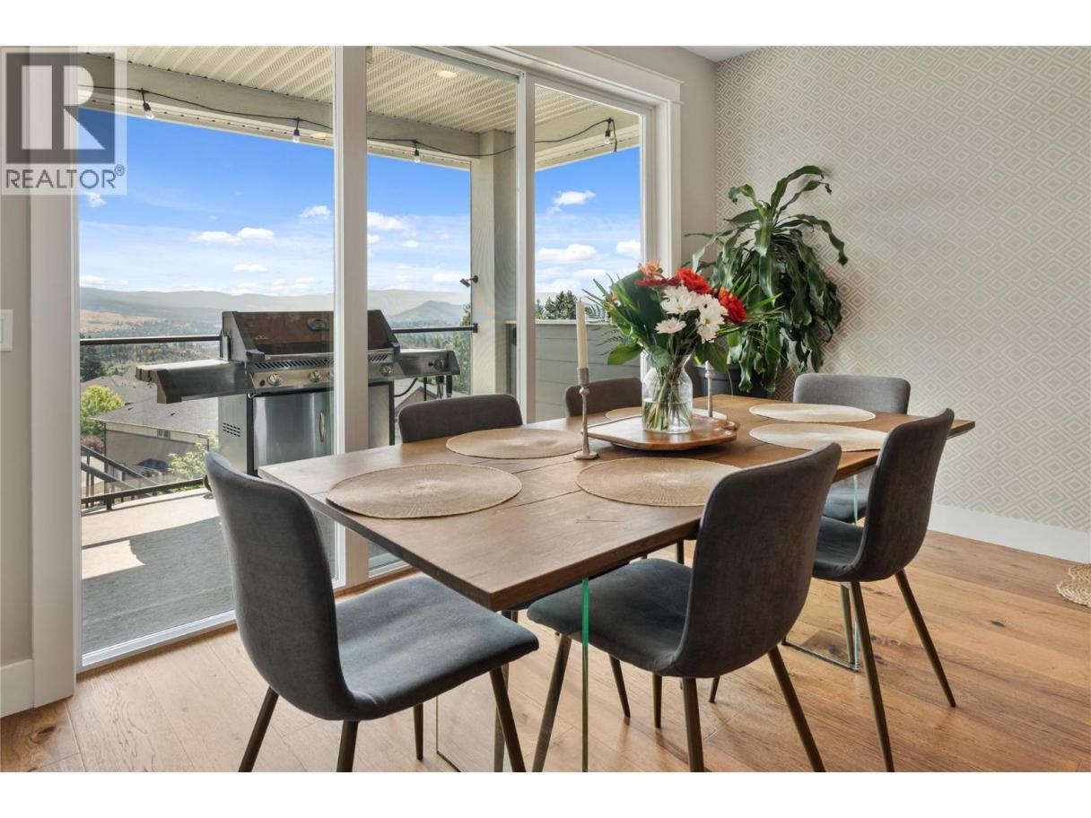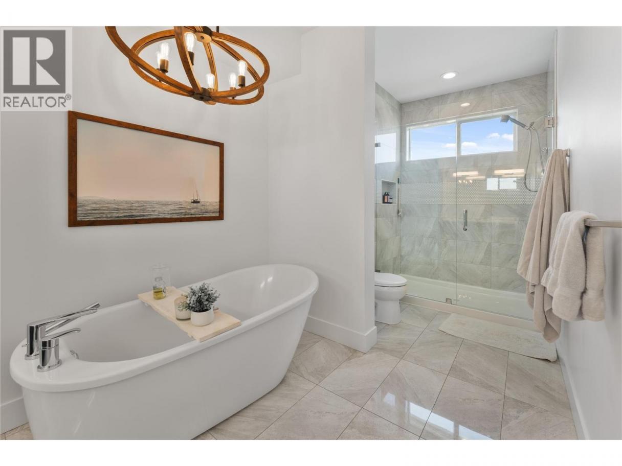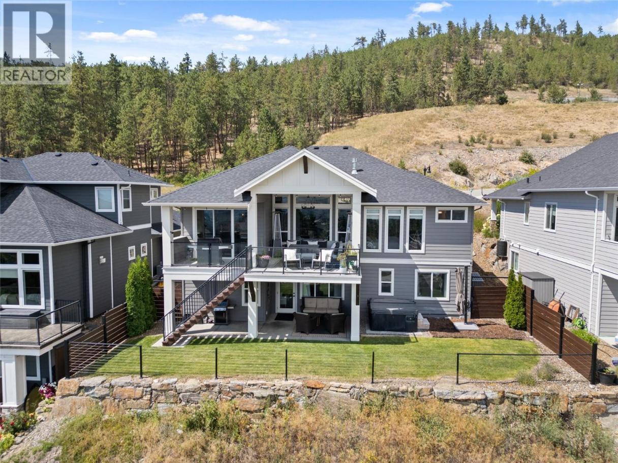 Welcome to this exceptional home in The Lakes, where luxury craftsmanship meets the Okanagan lifestyle. Built by the award winning Gibson Contracting, this custom 5 bedroom, 4 bathroom residence is perfectly positioned to capture breathtaking views of Wood Lake and the surrounding mountains. Step inside to soaring 12 foot ceilings, expansive floor to ceiling windows, and rich hickory hardwood flooring that flows throughout the open concept main level. The living room is warm yet refined, featuring a fireplace framed by custom millwork and seamless access to a spacious deck designed to take full advantage of the panoramic views. The gourmet kitchen is the heart of the home, showcasing quartz countertops, stainless steel appliances, a large island, and extensive cabinetry. It is equally suited for entertaining guests or enjoying relaxed family evenings. A generous mudroom and dedicated laundry space add everyday practicality without compromising style. The primary suite is a private retreat, complete with a walk in closet and a spa inspired 5 piece ensuite offering dual vanities, a soaker tub, and a rainfall shower.Downstairs, the fully finished lower level provides a spacious recreation room, two additional bedrooms, and ample storage. Privately tucked away is a beautifully finished one bedroom legal suite, ideal for extended family, guests, or additional income. Thoughtfully designed and meticulously built, this home offers timeless finishes, functional living, and spectacular lake and mountain views in one of the Okanagan’s most sought after neighbourhoods. (id:6769)