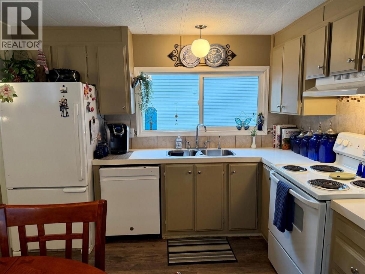 Located in a 55+ mobile home park on Main Street in Sicamous, this property offers exceptional walkability—groceries / post office right across the road, plus the pharmacy, restaurants, public beach, and all that Sicamous has to offer just steps away. The home features an excellent layout with bedrooms at each end for added privacy, offering 2 bedrooms and 2 bathrooms (2 New Toilets)plus a versatile den/flex room off the hallway—ideal for hobbies, crafts, or a home office. Enter through the convenient mudroom addition, perfect for boots and coats. The interior boasts new flooring throughout and has been recently painted inside and out, creating a bright and refreshed feel. Step outside to enjoy a covered deck with a comfortable sitting area, a private side yard, and beautiful garden spaces offering plenty of room to relax or tend to your flowers and plants. An attached storage/workshop area at the back provides excellent additional space. Recent upgrades include electrical inspection and permit (July 2024), new oil tank, new dishwasher, hot water tank (July 2022), and the home has been recently re-leveled. The main bathroom features updated wallpaper, new window blinds have been installed in the kitchen, dining area, and primary bedroom, and all water pipes beneath the home have been re-insulated. Monthly pad rent is $470.00. One dog or one cat permitted with park approval (dogs not to exceed 15”). Move-in ready and showing clear pride of ownership—this home is a must-see. (id:6769)