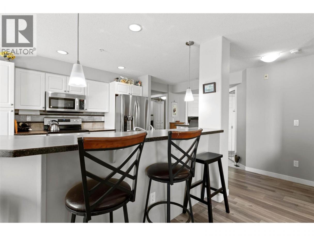 Well maintained and a pleasure to show. This bright, northeast-facing apartment features a spacious covered deck — perfect for enjoying your morning coffee. The open-concept layout showcases a custom kitchen with stainless steel appliances overlooking the living area, complete with a cozy corner gas fireplace. There is also a convenient gas BBQ hookup on the deck. The home offers both a four-piece bathroom and a three-piece bathroom. Tile and laminate flooring were updated in approximately 2022, and the hot water tank was replaced around 2019. The underground parking stall is conveniently located directly across from the elevator. Park Place is one of Kamloops’ most well-maintained and sought-after complexes, offering exceptional amenities including an indoor pool, sauna, hot tub, fitness centre, and more. The complex also features a secured dock for boats and kayaks (subject to availability). Centrally located and within walking distance to downtown restaurants, theatres, parks, riverfront trails, and the dog park. Just 5 minutes to RIH and 10 minutes to TRU. (id:6769)