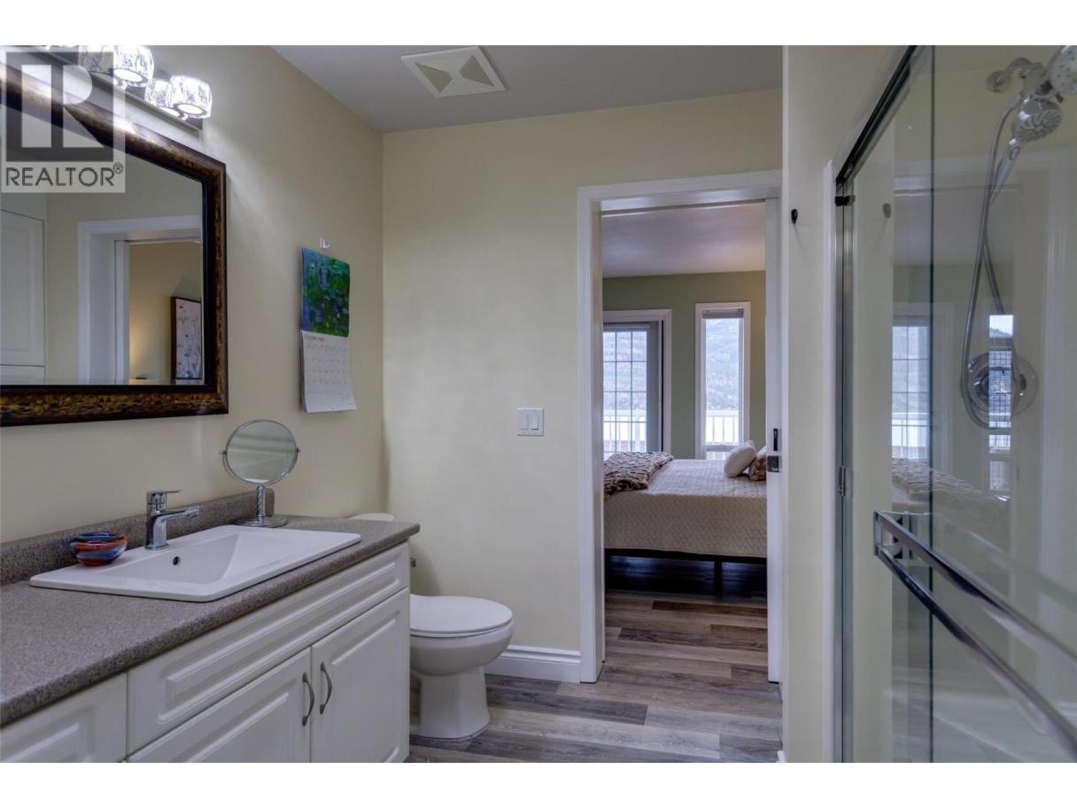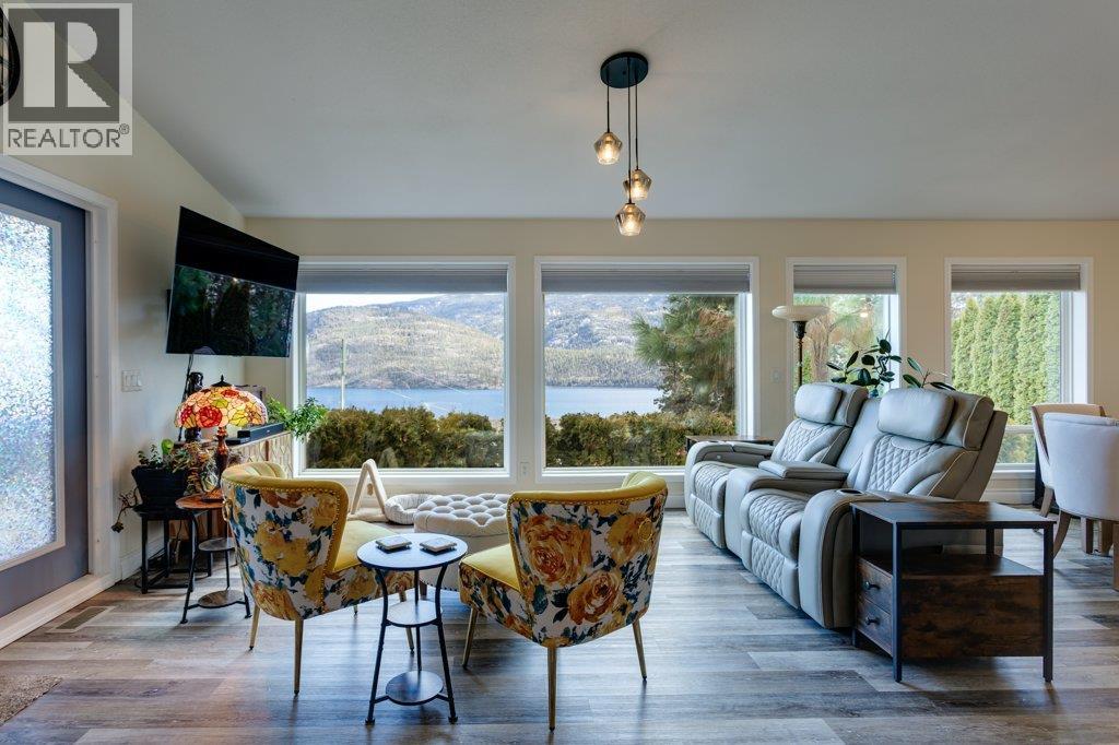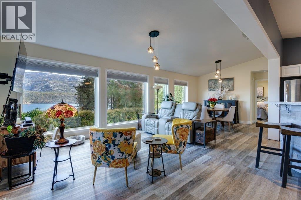 Life, simplified ... Make your move today to the most sought-after manufactured home park in the Central Okanagan - Kal Pine Estates! This friendly, well managed community overlooks the incomparable, stunning, Kalamalka Lake - just 30 minutes north of Kelowna and 20 minutes south of Vernon. Make this 2 bedroom, 2 bath, open concept home your Utopia. Privately nestled into the hillside, this home boasts big, bright windows and vaulted ceilings with unobstructed views from all rooms of the many, magical colours of the lake and the mountains to the east. Undoubtedly, this pristine home is located on the BEST lot in the development! The kitchen features a large island with a breakfast bar and plenty of cabinets, quartz countertops and a walk in pantry. Recent updates include (2019) a high-efficiency furnace, hot water heater, new roof, and new flooring, and (2020) a radon mitigation system. Easily accessible from the garage is a heated (6'4"" crawlspace) basement with concrete floors. An ideal, dry storage solution for all those extras. LOCATION is everything! Beach access and the Okanagan Rail Trail are just across the highway. Skiing, hiking, biking, boating, wine tasting, shopping and other amenities are just a stone's throw away. At the beginning, middle or end of the day you can come home and enjoy the evening views on your large, lake-facing deck or relax in your hot tub and soak your aching muscles after a joyous day on the ski hill. This home is whispering your name... (id:6769)