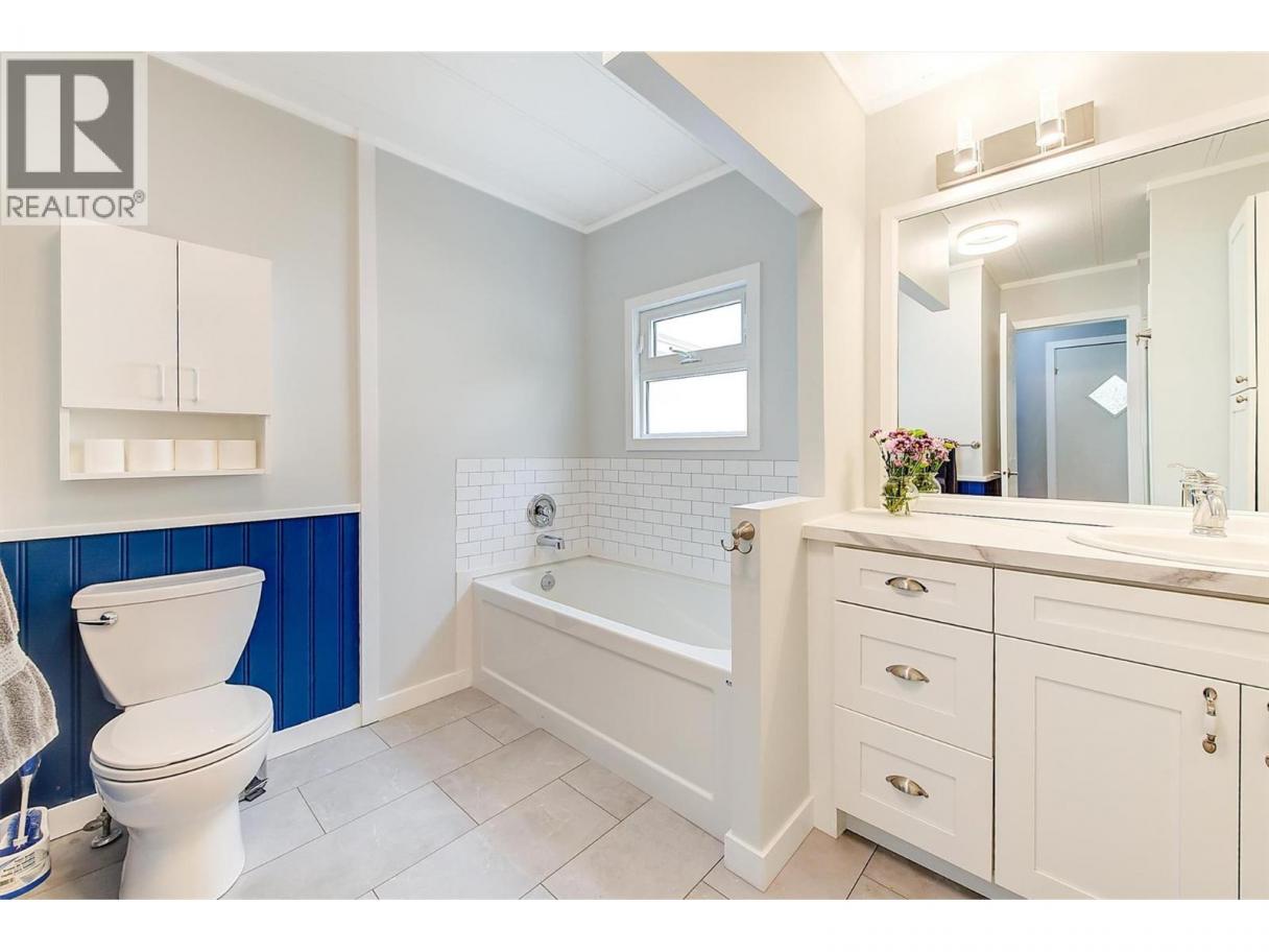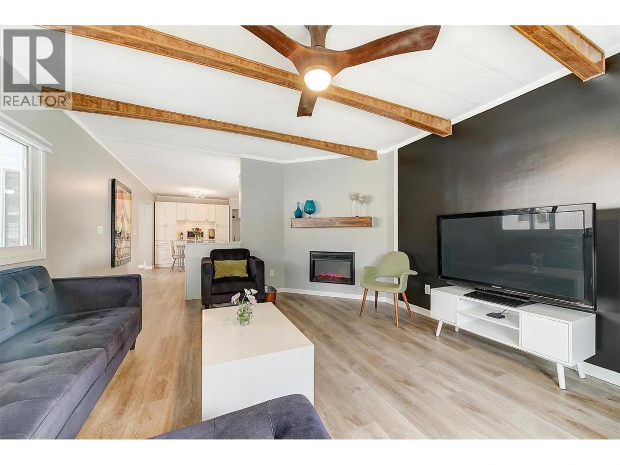 Enjoy that ""New Home Feeling"" when you walk into this fully renovated 3 bedroom home at McDougall Creek Estates β nothing to do but move in and enjoy! Beautifully updated throughout in a contemporary colour palette β kitchen has white shaker cabinets with soft-close, subway tile, and newer appliances including gas stove. AC and furnace replaced in 2021, hot water tank in 2023, lovely electric fireplace, vinyl windows, premium vinyl plank/tile flooring throughout, updated bathroom vanity and glass shower. Covered deck, storage shed and low maintenance yard with car port and ample parking. McDougall Creek Estates is a sought after 45+ community. Pad fees include well water and community septic system. Minutes to parks, restaurants, shopping, and all amenities as well as hiking/biking trails, cross-country skiing, snowshoeing and so much more. Schedule your showing before itβs gone! (id:6769)