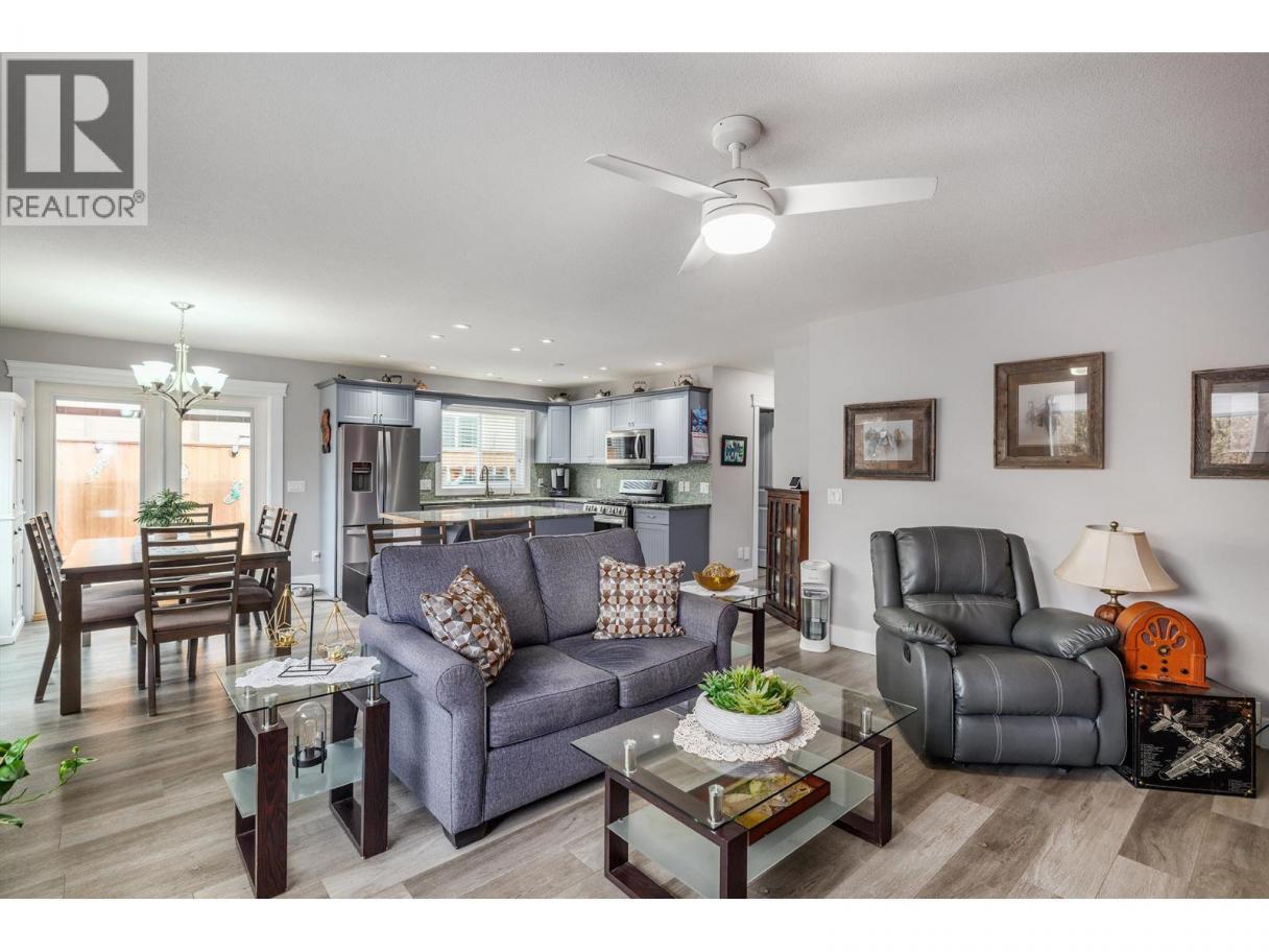 Located in the much sought after community of Sage Creek. A vibrant 45+ gated community, centrally located, close to shopping and recreation. This two bedroom plus den, two bath rancher with oversize garage is bright and open. Great curb appeal with an aluminum railed large front veranda and exposed aggregate driveway and sidewalk. Situated on a concrete crawl space, this one level living is ideal for retirement living! Enjoy your private back and side yard, with an enormous 40x9 no step aggregate concrete patio, perfect for entertaining. The spacious kitchen features an kitchen island with breakfast bar and plenty of counter and cupboard space. The kitchen overlooks the great room with bright and roomy living and dining room areas. Two good sized bedrooms, a smaller den/office and 1 ensuite and bathroom, and mudroom/laundry complete this well laid out floorplan. Many recent updates include newer vinyl plank flooring, stainless steel appliances only 5 years old, including a gas range, 220 power upgrade to the garage, new patio French doors and upgraded pot lights. This home is truly move in ready! Book your showing today! Electric Fire Place and TV brackets not included. (id:6769)