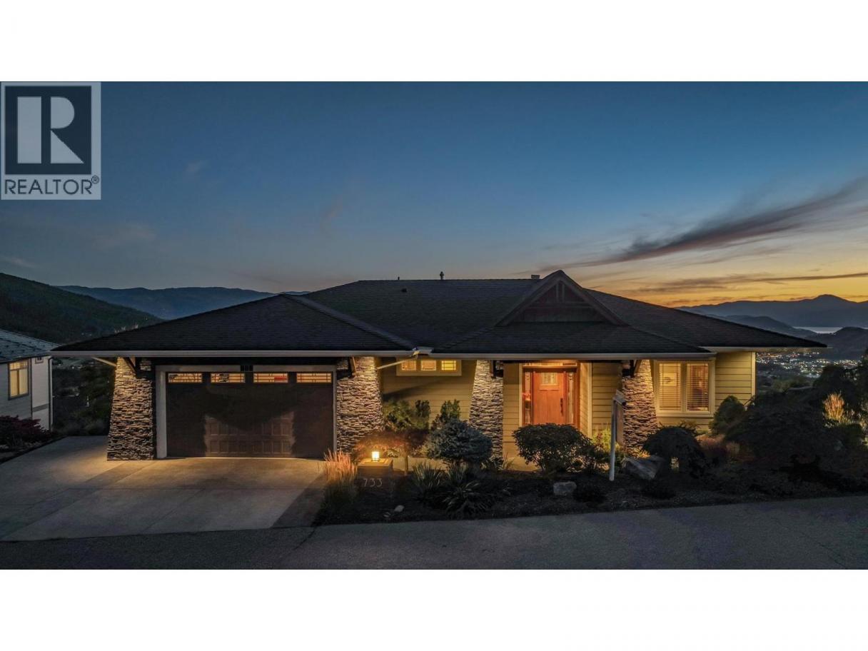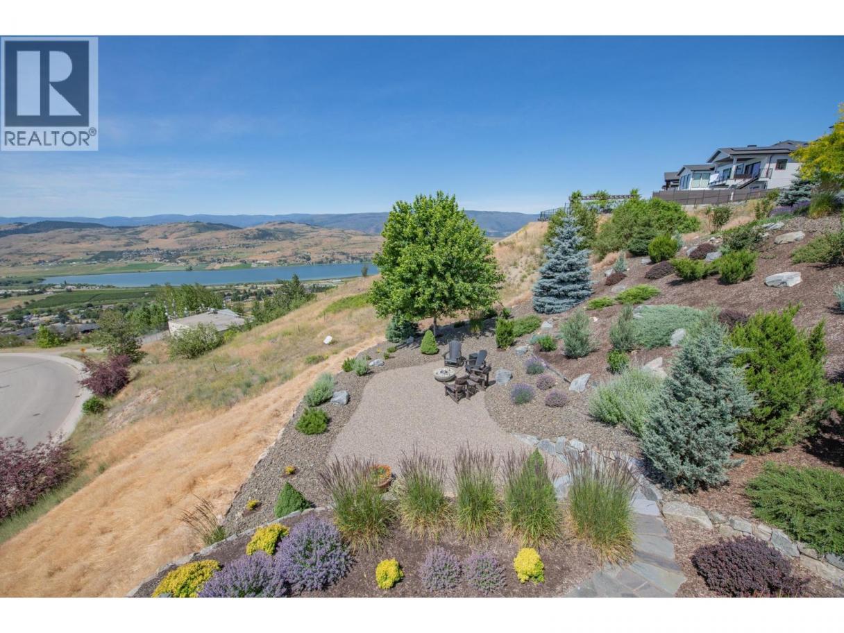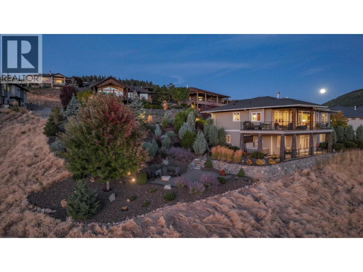 A custom-built rancher by Oakes Custom Homes, perfectly positioned to capture south-facing views of Vernon’s three lakes and Valley. Set on a private double lot of over half an acre, this home combines luxury living with custom details throughout.Inside, the open-concept design seamlessly connects the kitchen, dining, and living areas—ideal for entertaining or everyday comfort. The chef’s kitchen features two-tone cabinetry, a granite island, quartz countertops, and stainless steel appliances. From both the dining and living areas there is a two way fire place and sliding doors lead to a screened-in patio with automated screens, to enjoy the stunning views. The primary suite offers a walk-in closet and spa-inspired ensuite with in-floor heating, a standalone soaker tub, double vanity, and a glass walk-in shower. Additionally you’ll find a versatile office/den and a two-piece powder room.A custom steel staircase brings you to the lower level, where a cozy living room and sleek wet bar await. Two bedrooms, a full guest bath, and a flexible bonus room—perfect as a bedroom, exercise space, or craft room. The fully landscaped grounds feature low-maintenance plants with drip irrigation, a hot tub, fire pit area, and space for a pool. RV parking, security system with flood sensors. Immaculately maintained home that showcases custom craftsmanship at every turn. Don’t miss the opportunity to enjoy luxury living and unmatched views in one of Vernon’s most desirable settings. (id:6769)