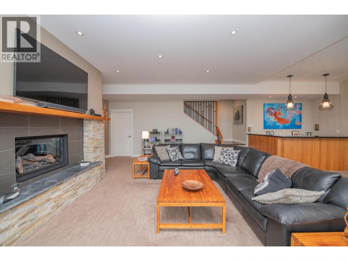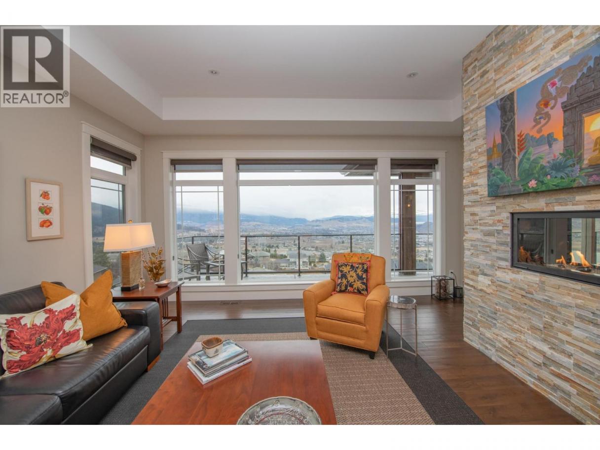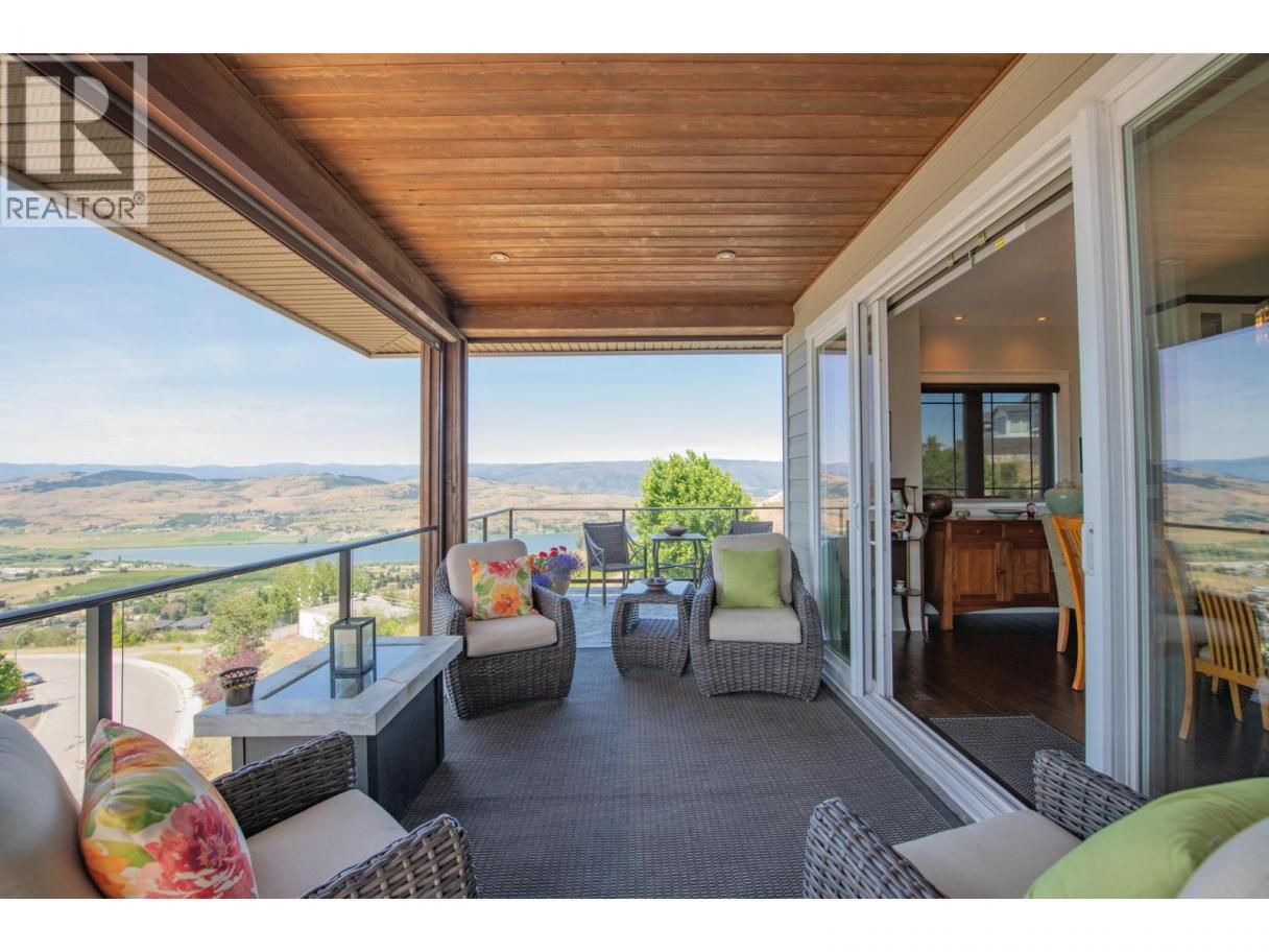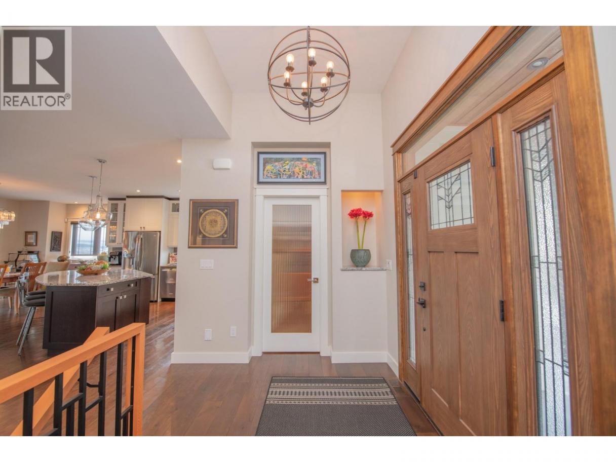 A custom-built rancher by Oakes Custom Homes, perfectly positioned to capture south-facing views of Vernon’s three lakes and Valley. Set on a private double lot of over half an acre, this home combines luxury living with custom details throughout.Inside, the open-concept design seamlessly connects the kitchen, dining, and living areas—ideal for entertaining or everyday comfort. The chef’s kitchen features two-tone cabinetry, a granite island, quartz countertops, and stainless steel appliances. From both the dining and living areas there is a two way fire place and sliding doors lead to a screened-in patio with automated screens, to enjoy the stunning views. The primary suite offers a walk-in closet and spa-inspired ensuite with in-floor heating, a standalone soaker tub, double vanity, and a glass walk-in shower. Additionally you’ll find a versatile office/den and a two-piece powder room.A custom steel staircase brings you to the lower level, where a cozy living room and sleek wet bar await. Two bedrooms, a full guest bath, and a flexible bonus room—perfect as a bedroom, exercise space, or craft room. The fully landscaped grounds feature low-maintenance plants with drip irrigation, a hot tub, fire pit area, and space for a pool. RV parking, security system with flood sensors. Immaculately maintained home that showcases custom craftsmanship at every turn. Don’t miss the opportunity to enjoy luxury living and unmatched views in one of Vernon’s most desirable settings. (id:6769)