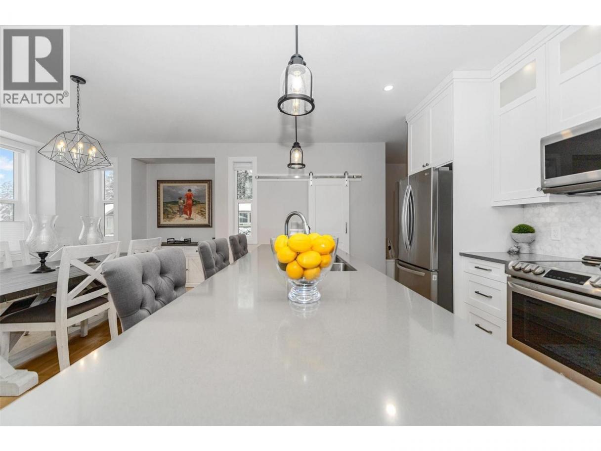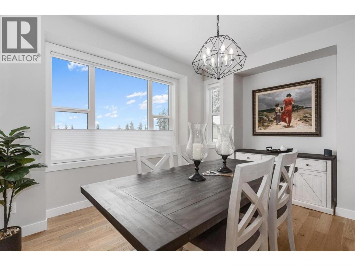 Better than new! Fully landscaped, GST paid + custom window covering & electric shade on the balcony. Built in 2021, this custom-designed rancher offers level living, quality construction, thoughtful design & beautiful views. The kitchen is functional & inviting, featuring cabinetry to the ceiling with showcase lighting, quartz counters & a spacious pantry with barn-door entry, built-in shelving & dedicated stations for small appliances. The dining area accommodates a full gathering table with space for a hutch. Engineered hardwood runs throughout the main level with vinyl plank downstairs — no carpet, allowing for clean, low-allergen living. Large windows bring in natural light while framing views that are also enjoyed from the deck. The main level features am open design with a comfy living room, primary bedroom with walk-in closet & double-vanity ensuite, plus a powder room & full laundry with cabinets & a sink. The lower level was finished during original construction, creating cohesive design & consistent finishes throughout & offers a bright family room with wet bar, separate entrance, covered patio, 2 additional bedrooms, full bathroom & a versatile bonus room. Custom window coverings, extra parking beside the home, xeriscaped and partially fenced (updated photos coming) complete the property. Discover why Salmon Arm attracts those who value community, hiking/biking trails, waterfront recreation & a lifestyle that blends outdoor living with everyday convenience. (id:6769)