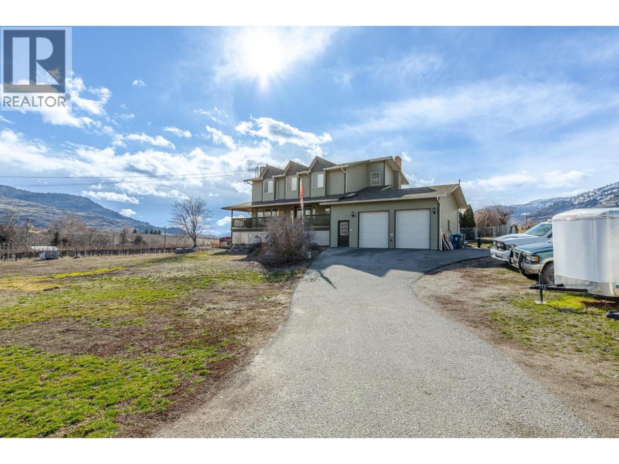 Located just 3 minutes south of Oliver, this .72-acre property delivers the quintessential South Okanagan lifestyle, surrounded by vineyards and orchards. Exceptionally maintained 5BDRM/4BATH two-storey home w/ in-law suite featuring 4 bedrooms plus office on the upper level, refinished oak hardwood floors, updated bathrooms, and a spacious primary retreat with renovated ensuite. Vaulted ceilings add architectural interest, cozy gas fireplaces, gas range, skylit bath, and modern mechanical upgrades provide year-round comfort and efficiency. Major improvements include new roof, siding, gutters, and hot water tank. Serviced with 200-amp electrical, natural gas, and two sets of newer appliances already in place. Sound-insulated 1-bedroom suite w/ separate entry is ideal as a mortgage helper, short- or long-term rental, or extended family living. Private, fully fenced backyard with a 20’ x 40’ saltwater in-ground pool (new liner & pump), covered deck for outdoor dining, and front veranda with gas BBQ hookup. Productive garden area with heritage apricot trees, berries, and rich soil ready for your home-based food garden. Attached double garage plus ample parking with two 30-amp RV/EV outlets for trailers, boats, or motorhomes. Garage ceilings tall enough for future mezzanine level or car hoists for all the toys. A rare offering in Canada’s Wine Capital—exceptional privacy, poolside living, income potential, and minutes to town. One block to Vin Amité Cellars—welcome home! (id:6769)
