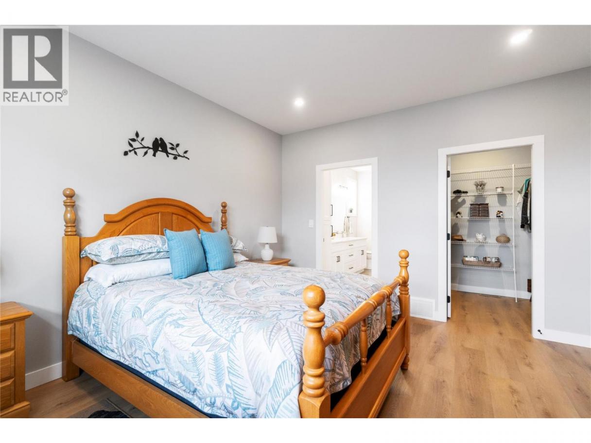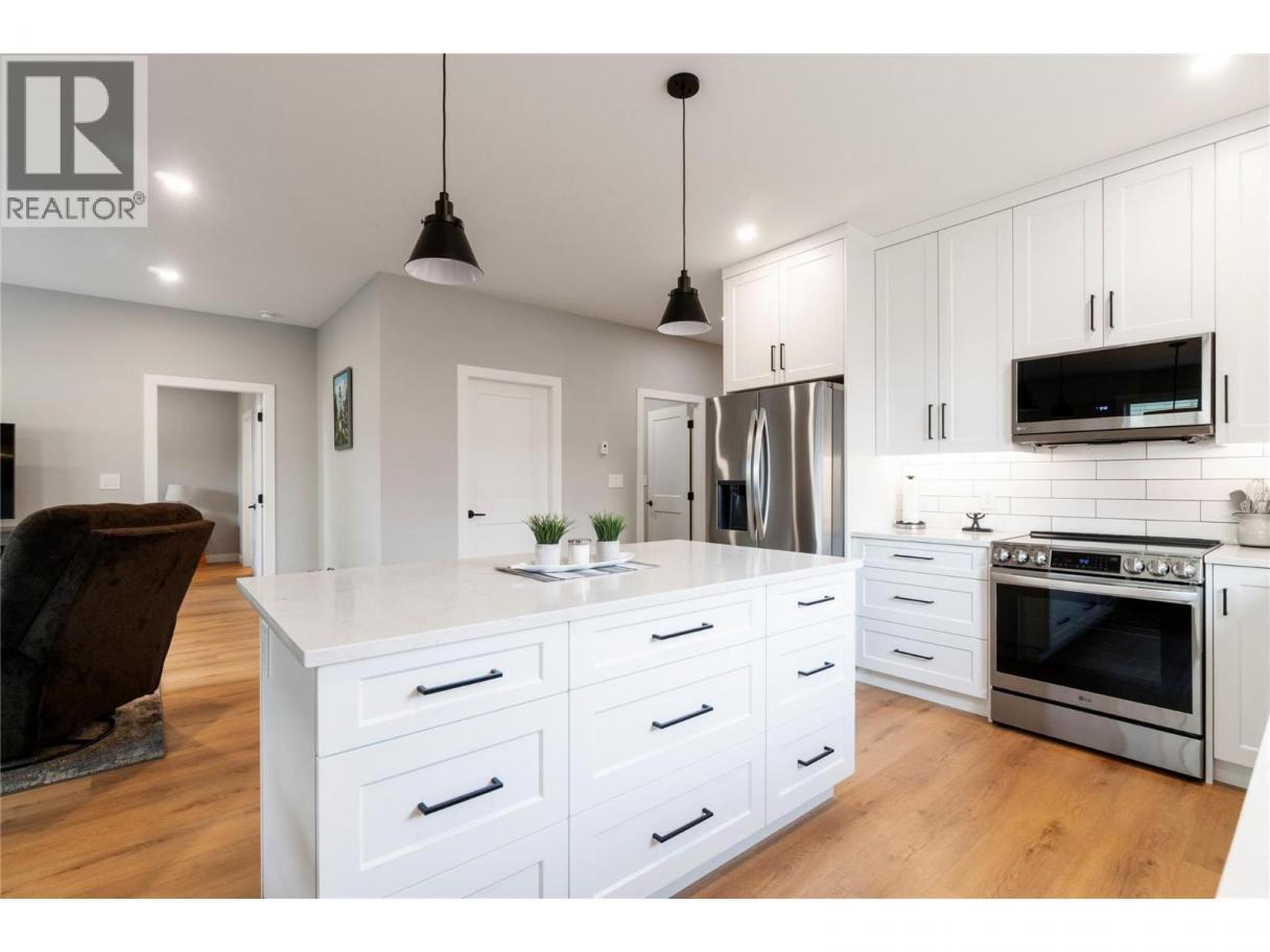 DESIGNER FINISH - PRIME LOCATION - ZERO COMPROMISE. Welcome to this beautifully maintained 1,395 sq. ft. two-bedroom, two-bath rancher that showcases exceptional pride of ownership throughout. Thoughtfully designed with an open-concept layout, this home offers seamless flow, creating a bright, cohesive space with a timeless color palette throughout the home that creates a warm and classic aesthetic. The stunning kitchen serves as the heart of the home, featuring a large island with quartz countertops, stainless steel appliances, sizeable pantry and loads of cupboard space. The dining area and spacious living room create a warm and inviting setting for comfortable gatherings. The sizable primary bedroom includes a walk-in closet and a private beautifully designed ensuite complete with a large tiled walk-in shower, quartz countertops, and double sinks. A spacious guest bedroom and full bathroom offer comfortable accommodations for visitors, and a well-equipped laundry room with a stackable washer/dryer, utility sink, and built-in storage, has direct access to a spacious garage with workbench and EV charger. Outside, the generous patio with gas hook up provides the ideal setting to relax and enjoy Salmon Arm’s sought-after climate. Close to shopping, parks and all our amazing city has to offer (id:6769)