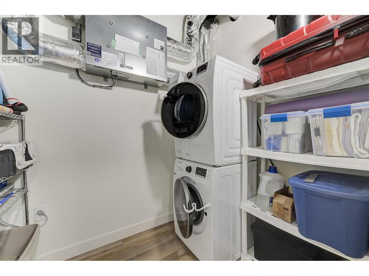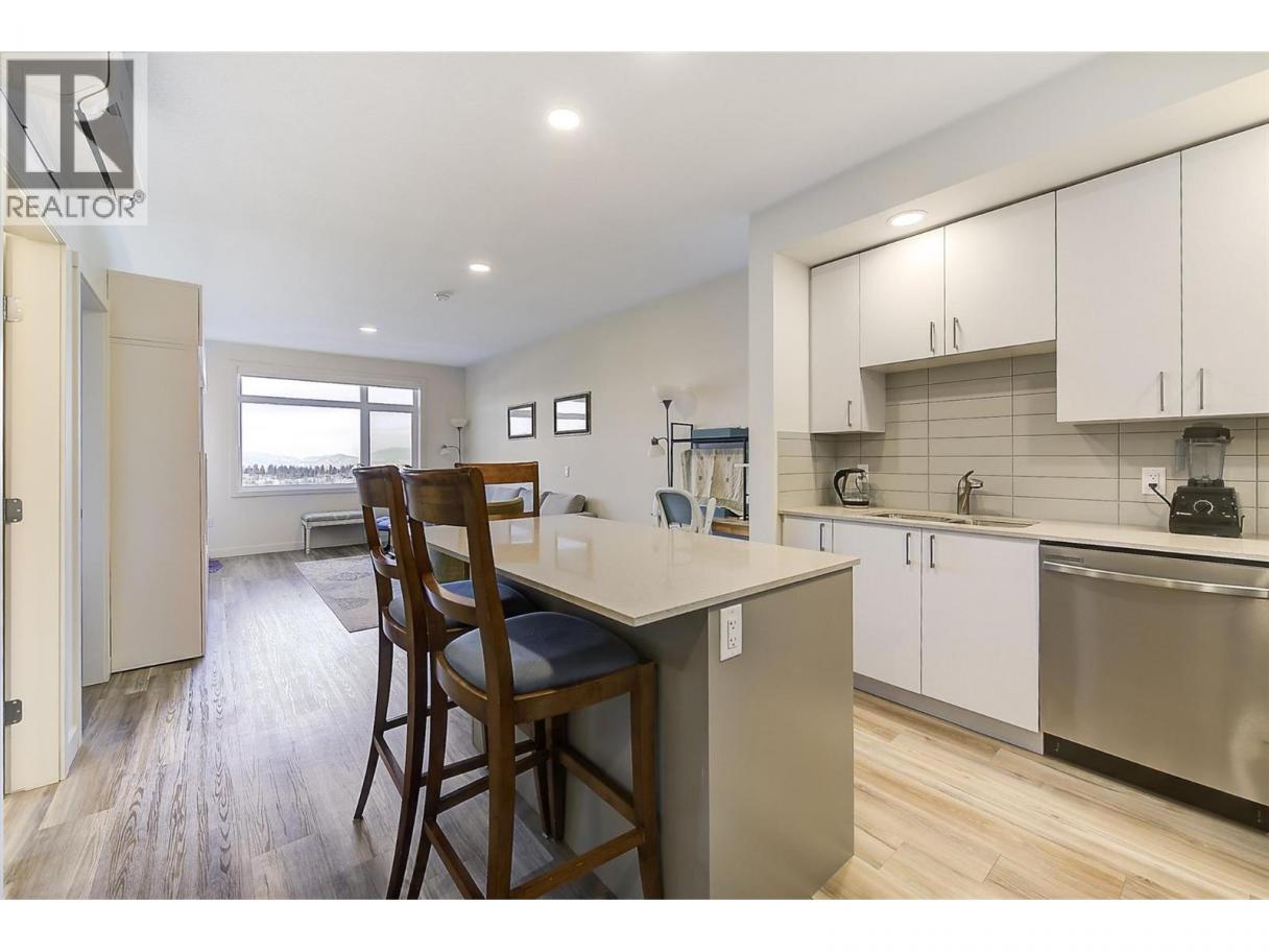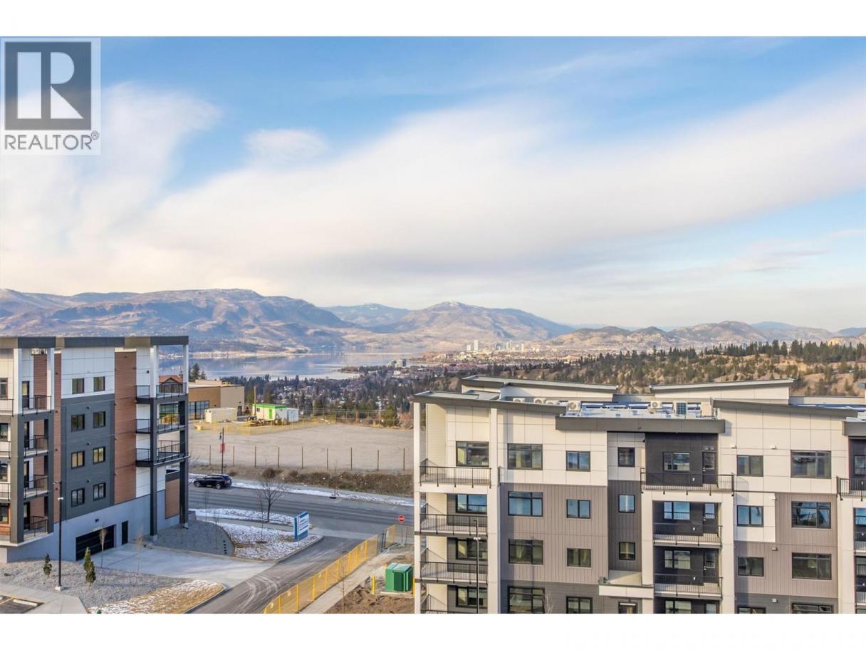This bright one bedroom, one bathroom pet-friendly condo offers the building's best panoramic views of Okanagan Lake, the downtown skyline, and surrounding mountains. Nestled in Kelowna's sought after Upper Mission, it's directly across from Mission Village at the Pond; where there are many local storefronts including Save-On-Foods, Starbucks, Shoppers Drug Mart, and more. The open concept kitchen, living, and dining area flows seamlessly. The kitchen dazzles with abundant cabinetry, sleek stainless steel appliances, quartz countertops, and a stylish island. The living room features smart built-in cabinets for extra storage, plus a generous window that frames postcard-perfect scenes of the lake and city. Retreat to the generously sized bedroom, also boasting those unbeatable lake views. Additional conveniences include a dedicated laundry room with extra storage space, air conditioning, a private patio and one surface parking stall. Residents also enjoy a wealth of amenities including: a well-equipped gym, spacious lounge, dining area, games space, and outdoor patio, perfect for unwinding or entertaining without leaving home. The development also offers extra peace of mind with a 4-10-20 warranty (double the industry standard), and a leak detection system. Built by renowned Kelowna developer Highstreet, known for sustainable, community-focused homes, this condo isn't just a place to live, it's your front-row seat to the Okanagan dream. Owner occupied. GST already paid! (id:6769)