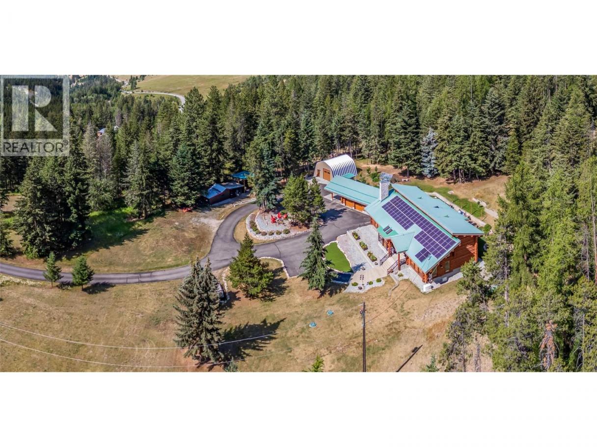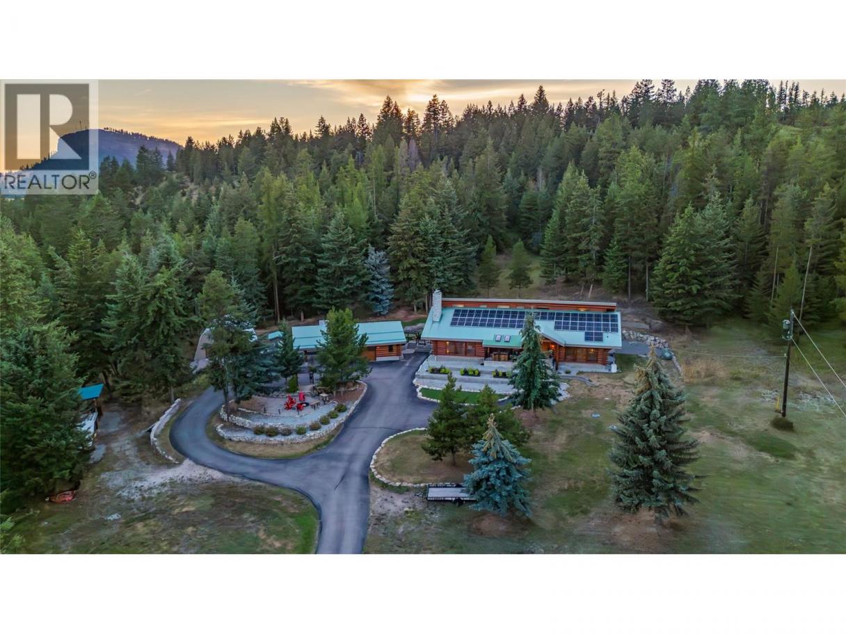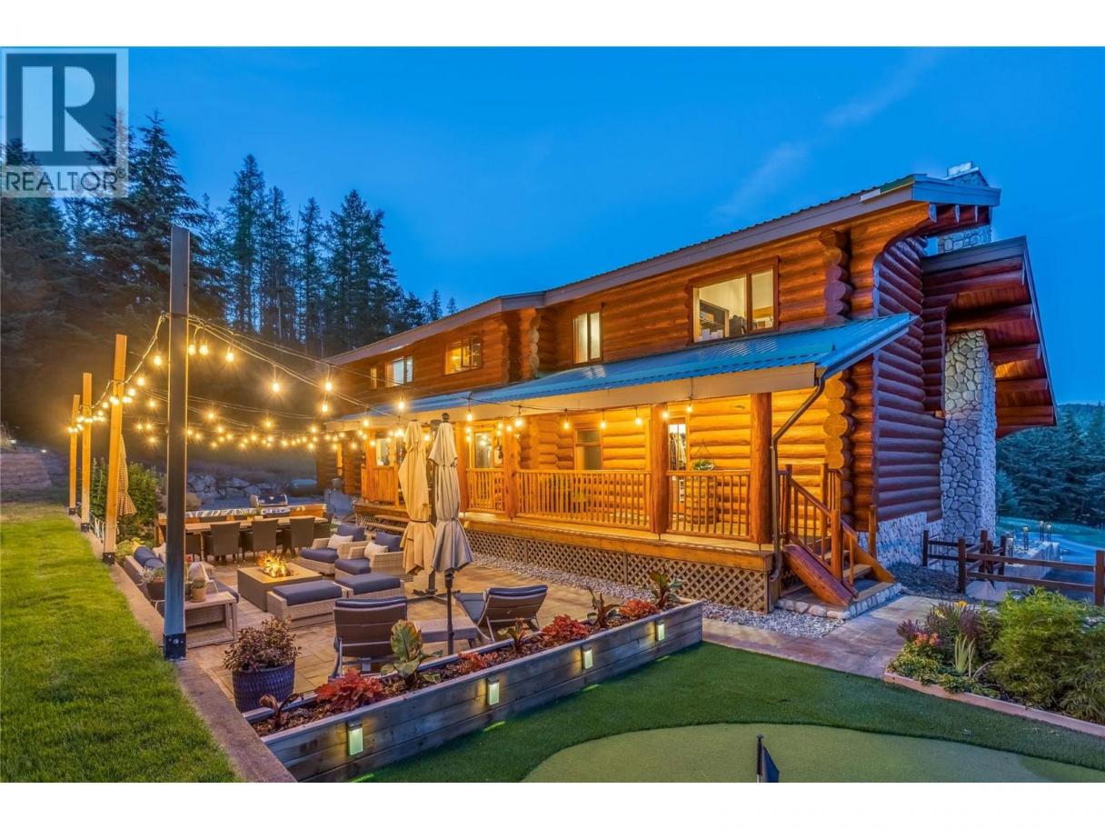 Rarely does a PRIVATE ESTATE of this scale, versatility, and craftsmanship come to market. Set on 20 BREATHTAKING ACRES, this CUSTOM CANADIAN BUILT LOG HOME blends timeless character with refined modern comfort. The 5 bedroom main residence is warm and inviting, featuring soaring vaulted ceilings, two cozy fireplaces, a gourmet kitchen w/ quartzite counters, gas range, walk-in pantry, and multiple gathering spaces designed for both everyday living and memorable entertaining. A SEPARATE 3 bed/2 bath LEGAL SECONDARY DWELLING offers exceptional flexibility w/ two self- contained suites—ideal for extended family, guests, or rental/Airbnb potential. With the OPTION TO SUBDIVIDE 10 ACRES and a NEW WELL already in place, future possibilities are equally compelling. More than 500k in thoughtful upgrades enhance both function and lifestyle - a paved driveway extension, solar panels, geothermal heating, updated electrical, new windows, appliances, and a detached 24x28 heated garage/workshop with 220V power. Outdoors, discover a true backyard sanctuary with manicured landscaping, greenhouse, tranquil water feature, hot tub, putting green, and acres of rolling lawns, forested trails, and open space perfect for horses or outdoor adventure. Private yet conveniently located mins to town, Blk Mtn Golf Course, elementary school, parks, hiking, Orchard Park, and Big White. A property that must be experienced to be fully appreciated. Flythrough: https://youtu.be/EfX4jZq-6rg (id:6769)