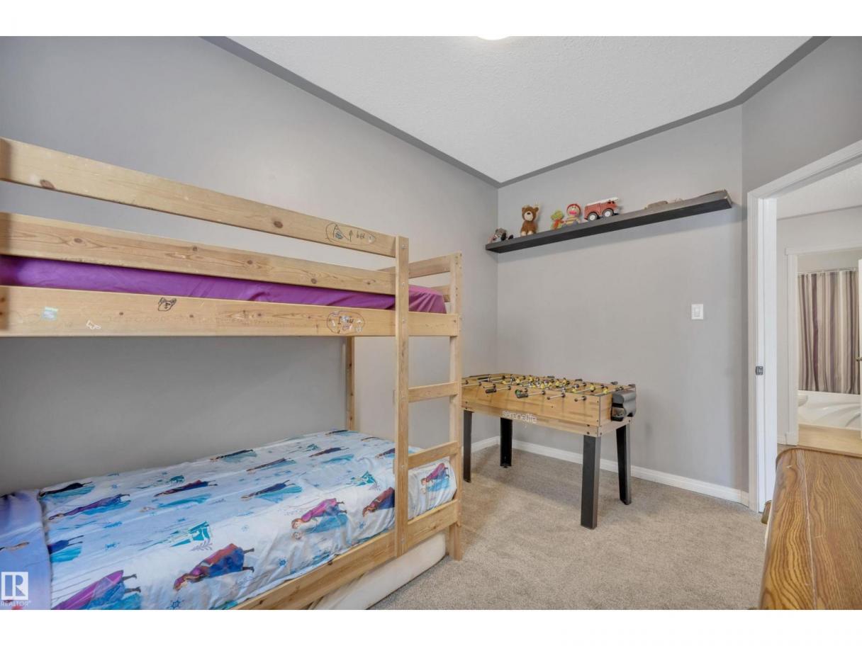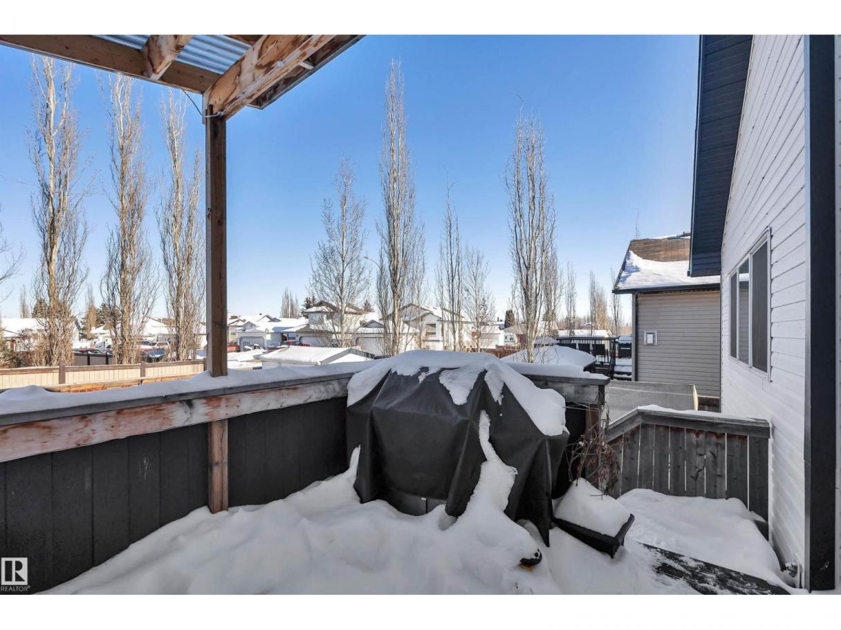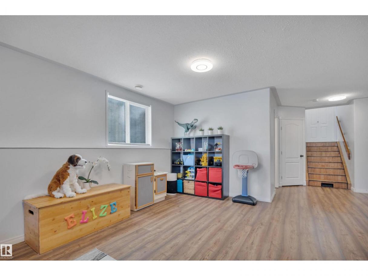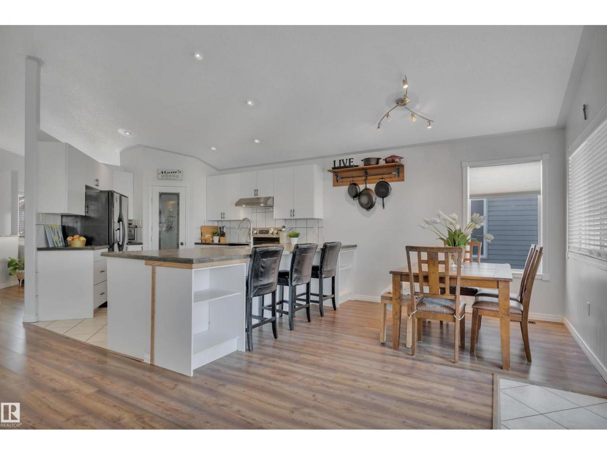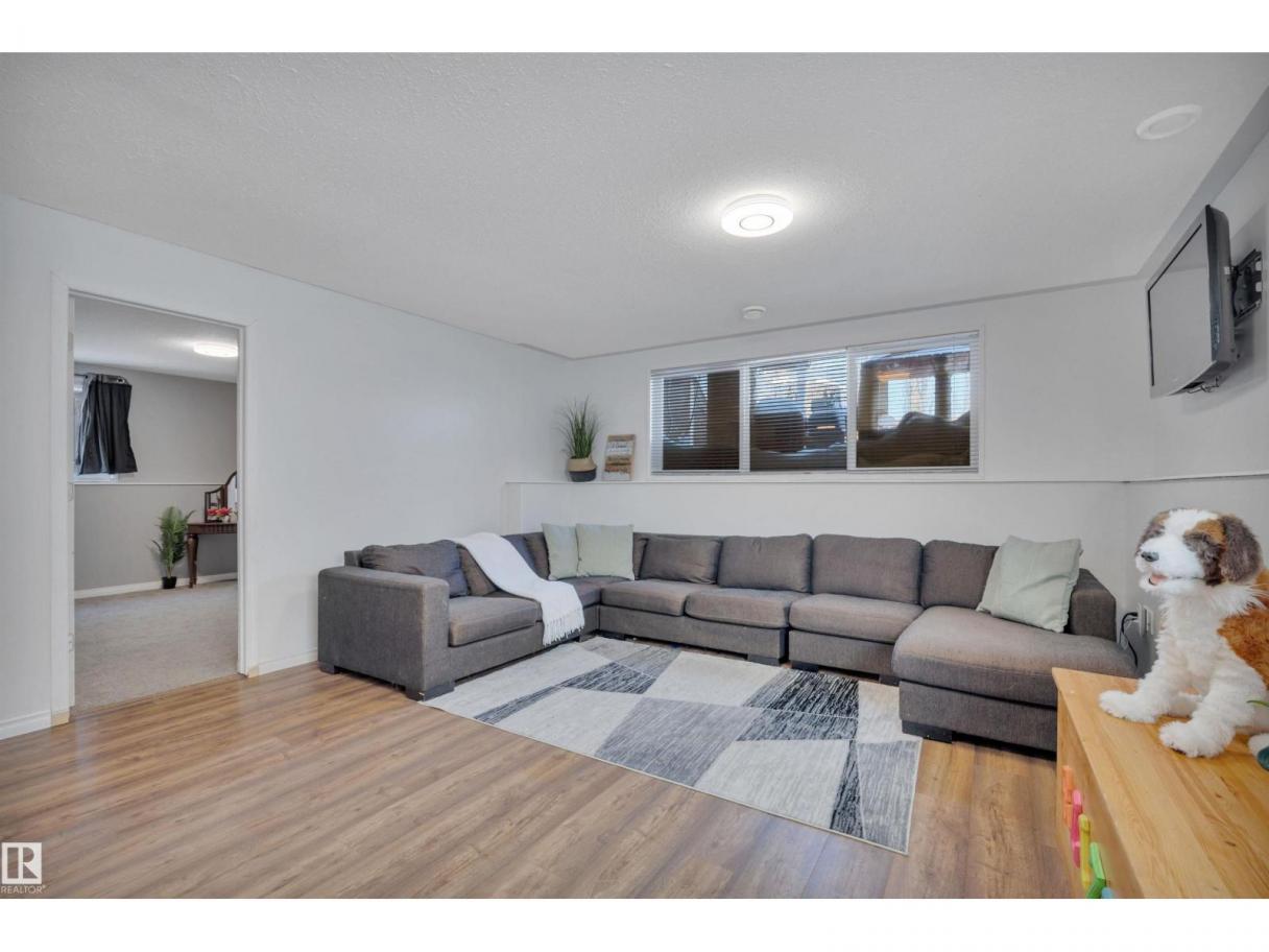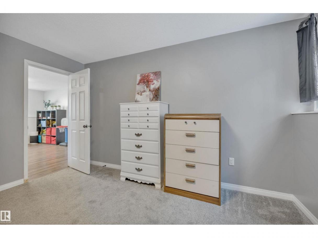 Featuring an open-concept layout, this bright & spacious bi-level is situated in Gibbons just N of Edm. Highlights include attached dbl garage, vaulted ceilings, fully finished basement w/lg windows & ample storage throughout. Perfect for a large or growing family, this home offers 2 bedrooms on upper level & 3 bedrooms downstairs. The generous primary suite—located above the garage—includes a 4pc ensuite w/soaker tub & walk-in closet. The kitchen is equipped with a corner pantry & plenty of counter space. From the dining area, double doors open onto a covered deck that overlooks a lg fenced backyard, complete with shed & addn'l storage under the deck. The living room features a gas fireplace & a 4pc bathroom serves the main level. The bright lower level includes 3 spacious bedrooms, lg family room, 4pc bathroom & addn'l storage. A den overlooks the front yard. A sizeable laundry room is conveniently located just off the foyer. This home boasts comfort, space & functionality for any family! (id:6769)