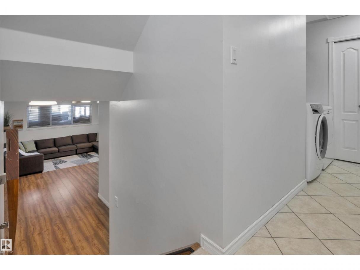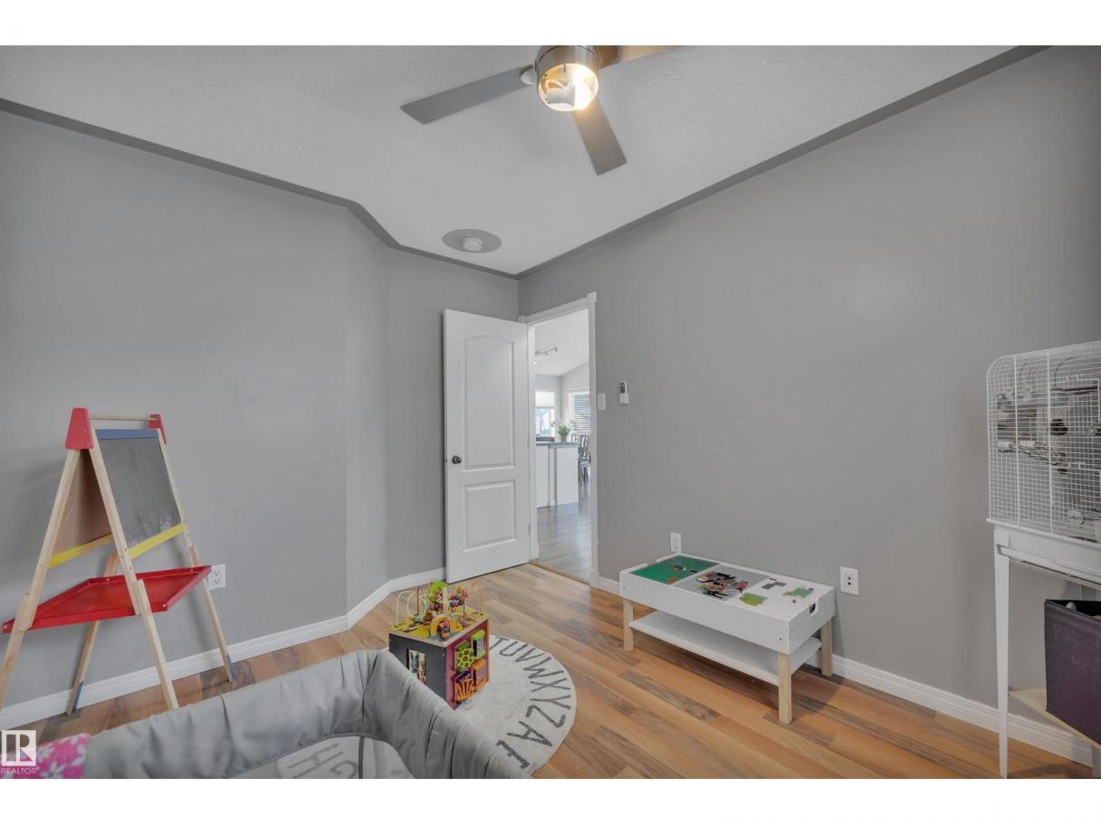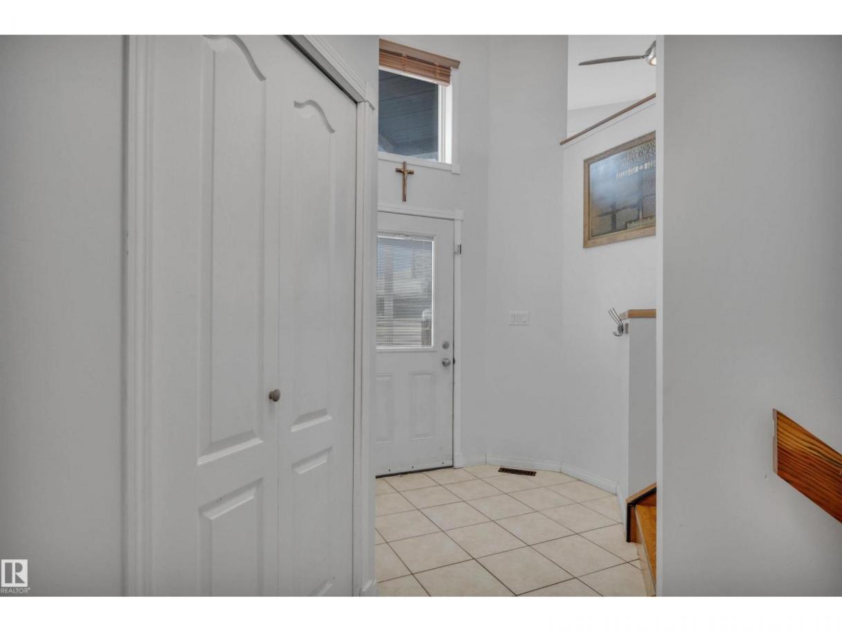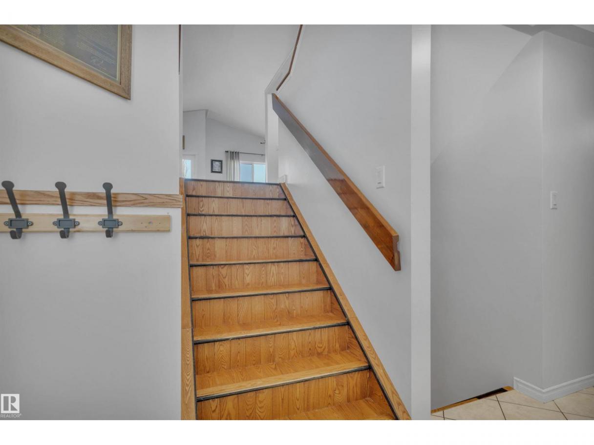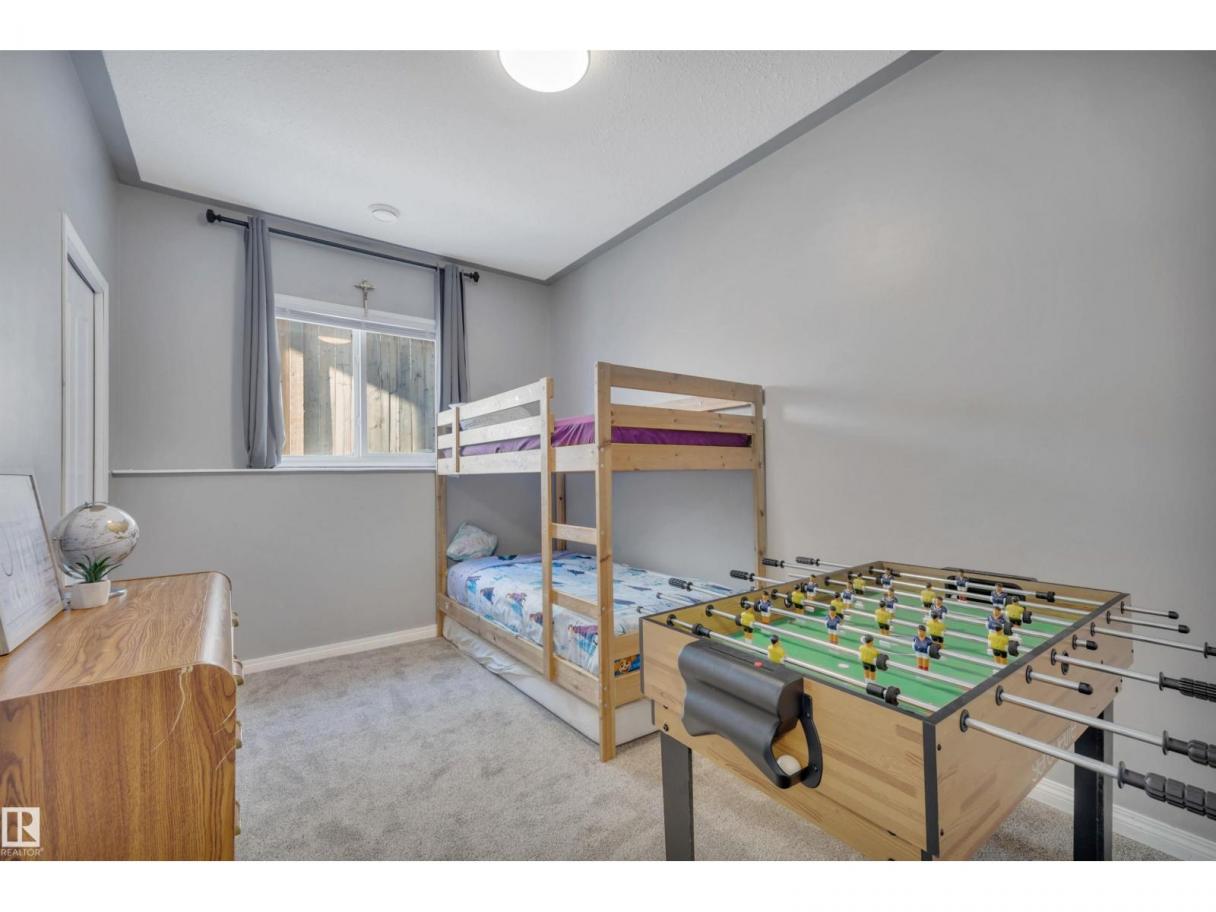 Featuring an open-concept layout, this bright & spacious bi-level is situated in Gibbons just N of Edm. Highlights include attached dbl garage, vaulted ceilings, fully finished basement w/lg windows & ample storage throughout. Perfect for a large or growing family, this home offers 2 bedrooms on upper level & 3 bedrooms downstairs. The generous primary suite—located above the garage—includes a 4pc ensuite w/soaker tub & walk-in closet. The kitchen is equipped with a corner pantry & plenty of counter space. From the dining area, double doors open onto a covered deck that overlooks a lg fenced backyard, complete with shed & addn'l storage under the deck. The living room features a gas fireplace & a 4pc bathroom serves the main level. The bright lower level includes 3 spacious bedrooms, lg family room, 4pc bathroom & addn'l storage. A den overlooks the front yard. A sizeable laundry room is conveniently located just off the foyer. This home boasts comfort, space & functionality for any family! (id:6769)