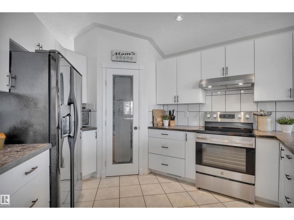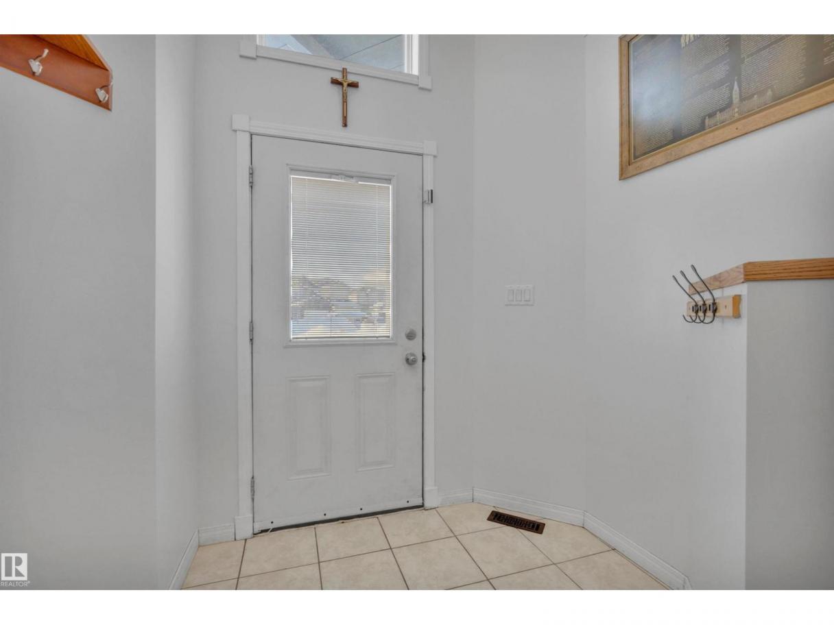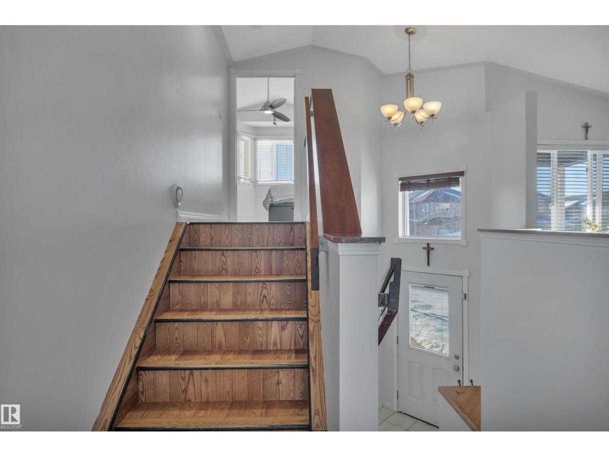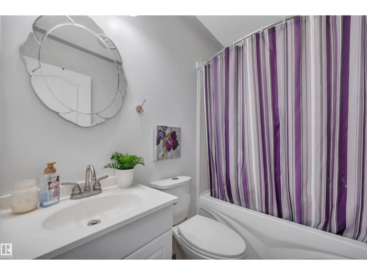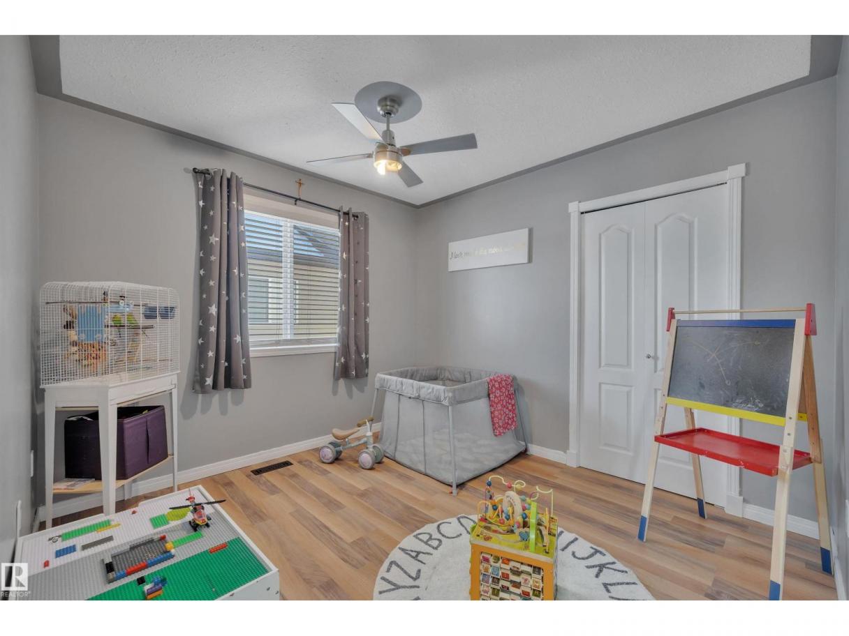 Featuring an open-concept layout, this bright & spacious bi-level is situated in Gibbons just N of Edm. Highlights include attached dbl garage, vaulted ceilings, fully finished basement w/lg windows & ample storage throughout. Perfect for a large or growing family, this home offers 2 bedrooms on upper level & 3 bedrooms downstairs. The generous primary suite—located above the garage—includes a 4pc ensuite w/soaker tub & walk-in closet. The kitchen is equipped with a corner pantry & plenty of counter space. From the dining area, double doors open onto a covered deck that overlooks a lg fenced backyard, complete with shed & addn'l storage under the deck. The living room features a gas fireplace & a 4pc bathroom serves the main level. The bright lower level includes 3 spacious bedrooms, lg family room, 4pc bathroom & addn'l storage. A den overlooks the front yard. A sizeable laundry room is conveniently located just off the foyer. This home boasts comfort, space & functionality for any family! (id:6769)