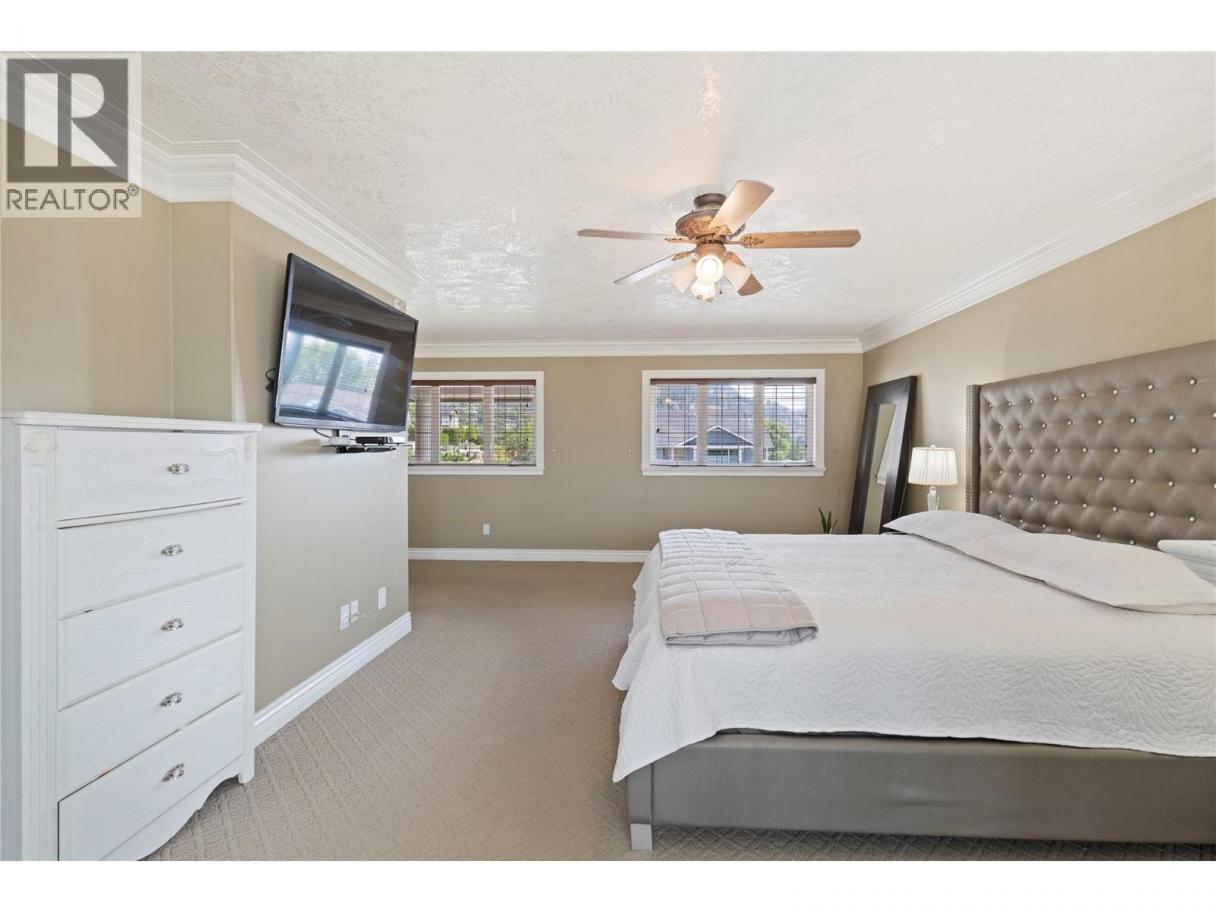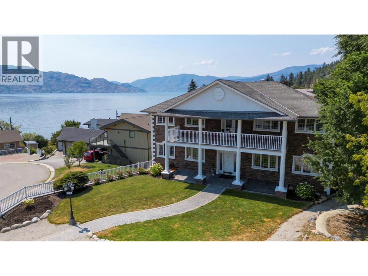 Stunning Neoclassical Estate with outdoor oasis. Experience the ultimate Okanagan lifestyle in this grand 5-bedroom Neoclassical residence, perfectly positioned in a quiet, established Peachland neighborhood. Offering a rare blend of timeless elegance and modern luxury, this home is located just a 5-minute stroll to the beach and minutes to the vibrant amenities of downtown Peachland.The interior is designed for hosting, featuring a gourmet kitchen, a private theatre room, and a sophisticated bar. The open layout flows effortlessly to your outdoor private oasis, complete with a covered deck, outdoor kitchen, and a sparkling in-ground saltwater pool—perfect for cooling off on hot summer days or hosting unforgettable gatherings. The oversized bedrooms offer maximum comfort and privacy for family and guests. The master suite is a true sanctuary, featuring a spa-inspired en-suite, a spacious walk-in closet, and a private balcony where you can enjoy breathtaking, views of Lake Okanagan. Situated on a beautifully landscaped lot with room for gardening and play, this home provides the ideal setting for a leisurely lakeside life. Enjoy world-class boating, swimming, and hiking just minutes from your front door. Key Features: 5 Spacious Bedrooms | Luxury Master Suite, Saltwater Pool & Outdoor Kitchen, Lake Views & Quiet Setting, 5-Minute Walk to Lake Okanagan. (id:6769)