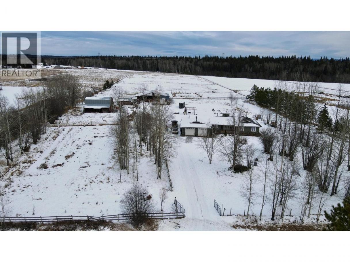 Beautiful rancher on 10 flat, peaceful acres in desirable Beaverly in Prince George only 8 minutes from Walmart. This well-designed home features custom woodwork throughout, three bedrooms on the main, including a primary with ensuite and french doors to the backyard and an attached two-car garage. Property is fully fenced and cross-fenced, ideal for horses. Outbuildings include a 4-stall barn (new wood floor) with power, chicken coop and hay loft; a large pole barn with mezzanine; a heated, powered 16’x28’ workshop; plus additional shed. The acreage also offers a playground, bunny and duck enclosure, beautiful garden spaces and 21 three-year-old haskap bushes. Plus an attached two-car garage! All measurements approximate; buyer to verify if important. (id:6769)