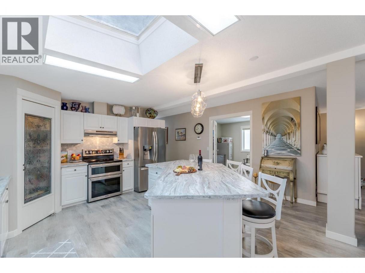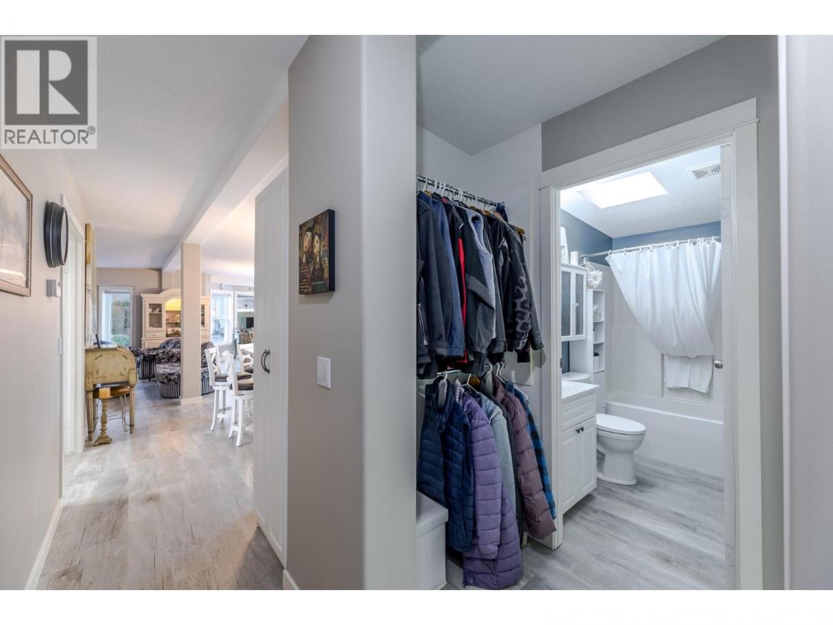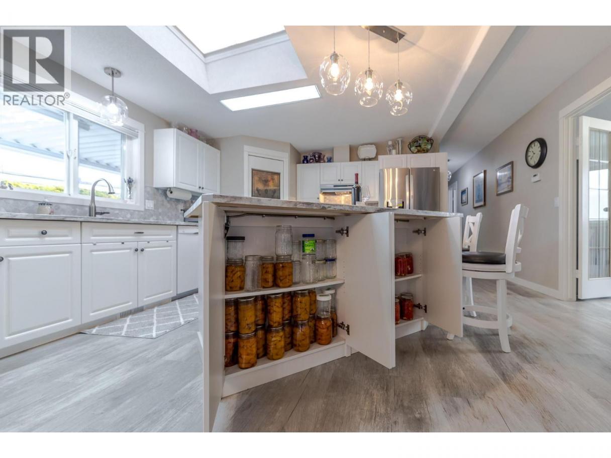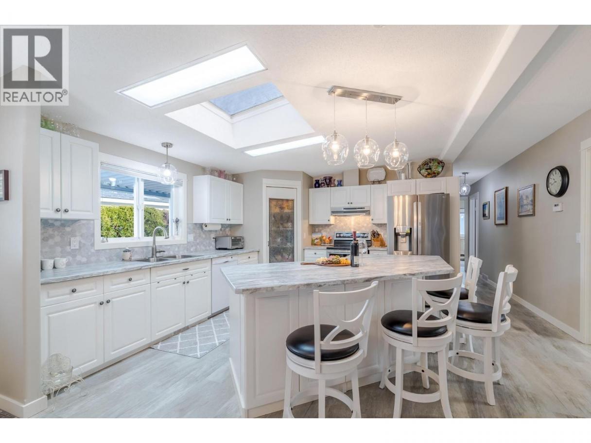 Wake up where the river whispers and the valley stretches wide. In Deer Park Estates, this rare double wide invites you to own the land beneath your feet and slow life down just enough to enjoy it. With 1,521 sq ft, this beautifully updated 3 bedroom, 2 bathroom home opens into a bright, open concept living space finished with new vinyl flooring and thoughtful hexagon details, from the marble kitchen and laundry backsplash to the patterned pavers in the backyard. Step outside and feel the calm of a quiet riverside neighborhood, where morning walks follow the trail to the dam and evenings are framed by views of the McIntyre Bluffs. This is bare land strata living at its best, with an exceptionally low $55 per month strata fee that includes common area maintenance and access to a welcoming clubhouse featuring pool tables, a meeting space, and a full kitchen with deck and BBQs, perfect for hosting friends and neighbors. RV or boat storage is available within the park, and a fenced dog park adds to the lifestyle appeal. Rarely does a double wide manufactured home on owned land come available in Deer Park Estates, especially one that blends space, updates, scenery, and quiet living so effortlessly. This is more than a home, it is a place to exhale, settle in, and enjoy the Okanagan way of life. LOTS OF STORAGE. (id:6769)