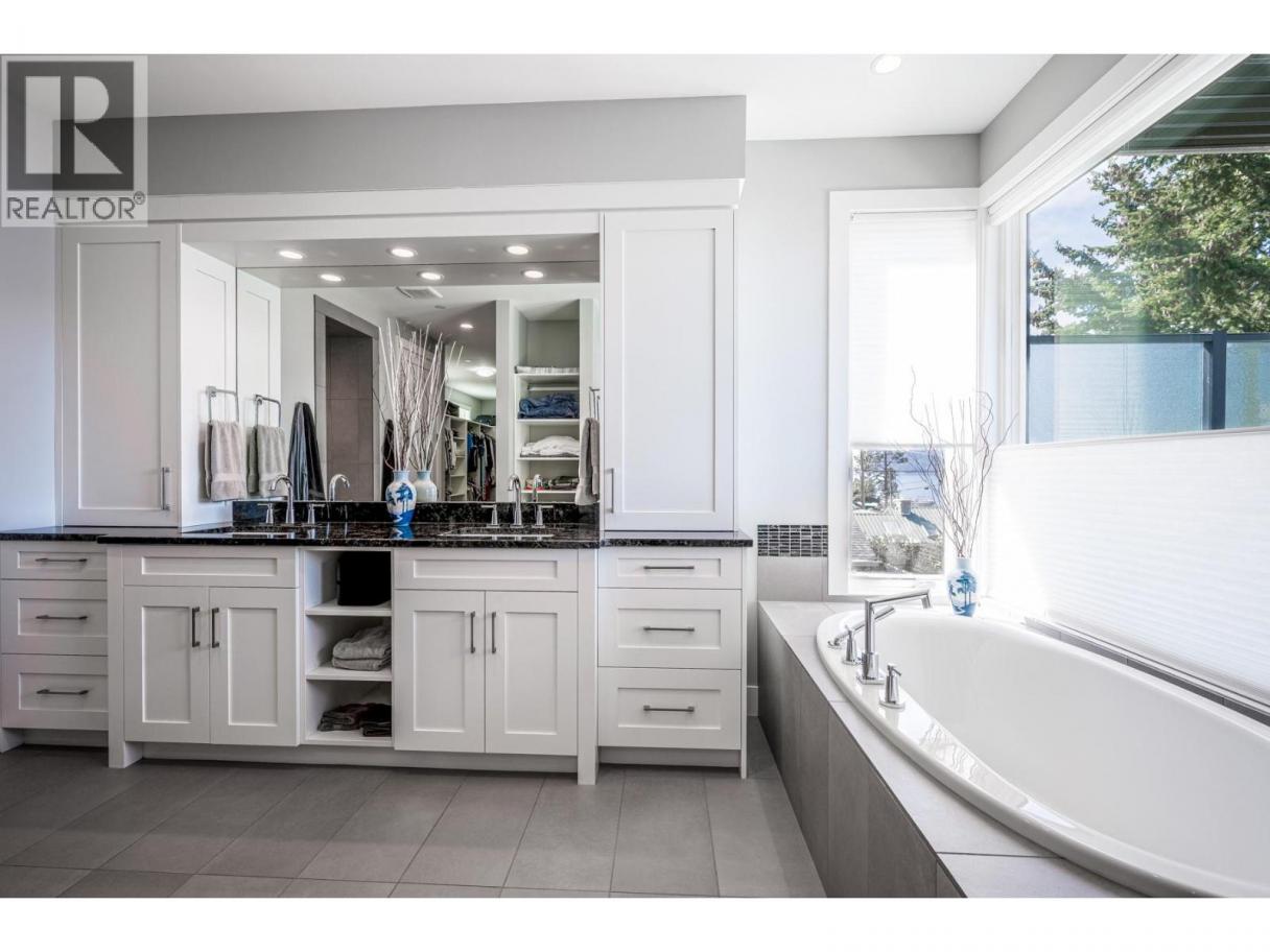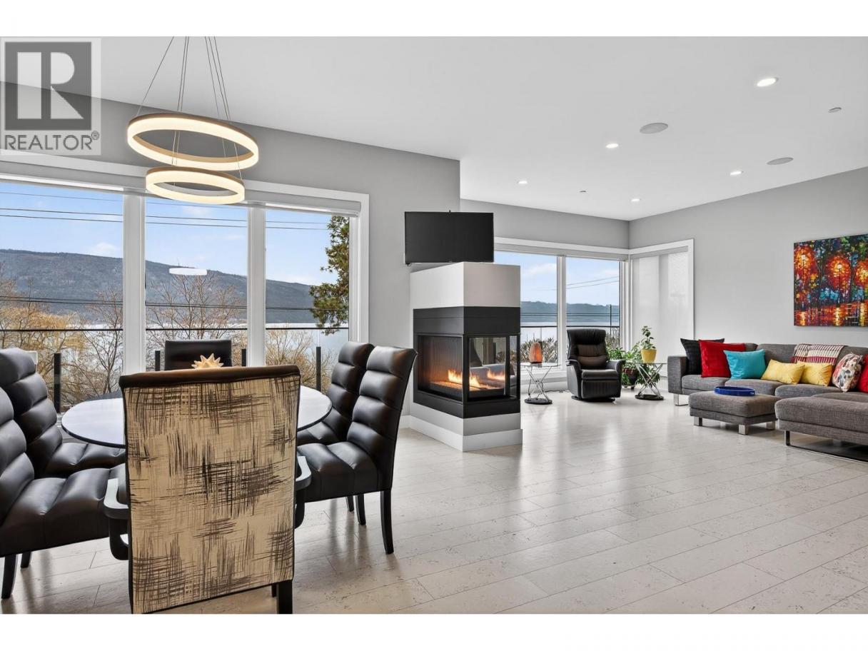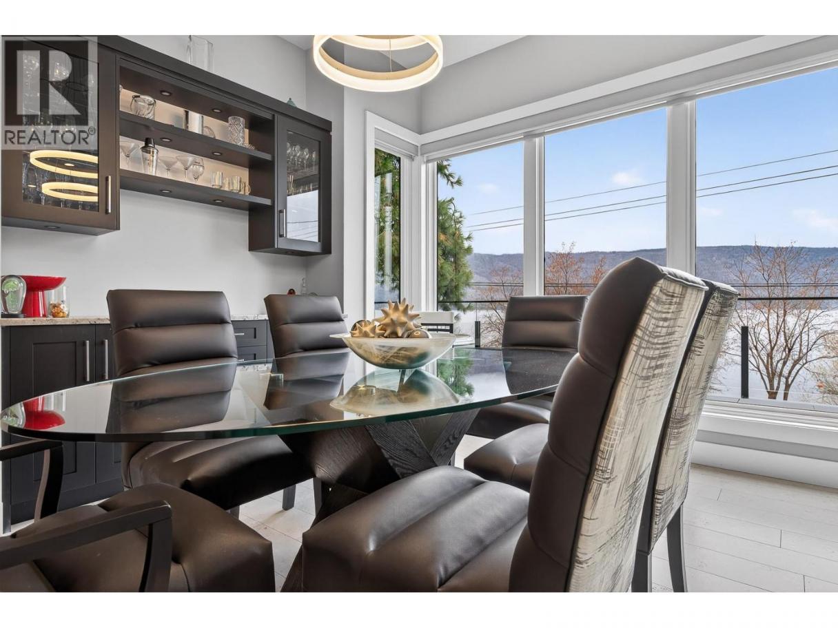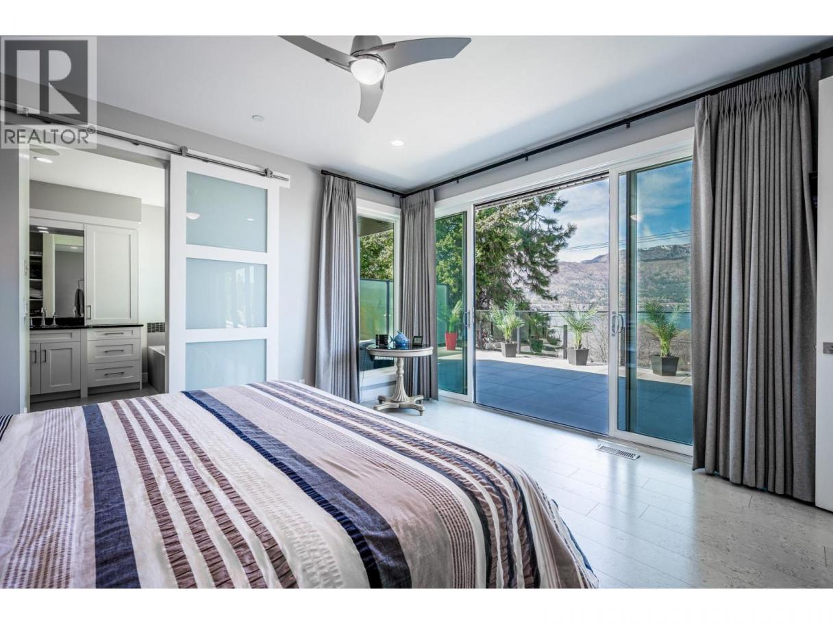 To truly embrace this home, you must step inside. From the moment you cross the threshold, the lake reveals itself - expansive, calming, ever-changing. Designed by a respected architect and built with exceptional attention to detail, this custom residence was intentionally positioned to capture Okanagan Lake from nearly every principal room. Clean modern lines, walls of glass, and expansive terraces create a seamless connection between indoors and out. Each level offers its own perspective of water and sky, whether you’re enjoying morning coffee on the covered patio or watching the sun set across the mountains from the upper terrace. The kitchen is both refined and functional, anchored by rich granite surfaces, premium appliances, and effortless flow to outdoor dining. A dramatic open staircase serves as an architectural statement while maintaining the home’s sense of openness and light. The primary suite is a private retreat, with direct terrace access, a spa-inspired ensuite, soaker tub, dual vanities, and a generous walk-in closet complete with secondary laundry. The lower level offers flexibility for guests, family, or entertaining, with walk-out access and easy connection to the beach just steps away. Paddleboard at sunrise, tie your boat to the buoy, stroll the shoreline path, or visit nearby wineries and cafés. This is lake living...... elevated, intentional, and designed to be experienced. Come view it. (id:6769)