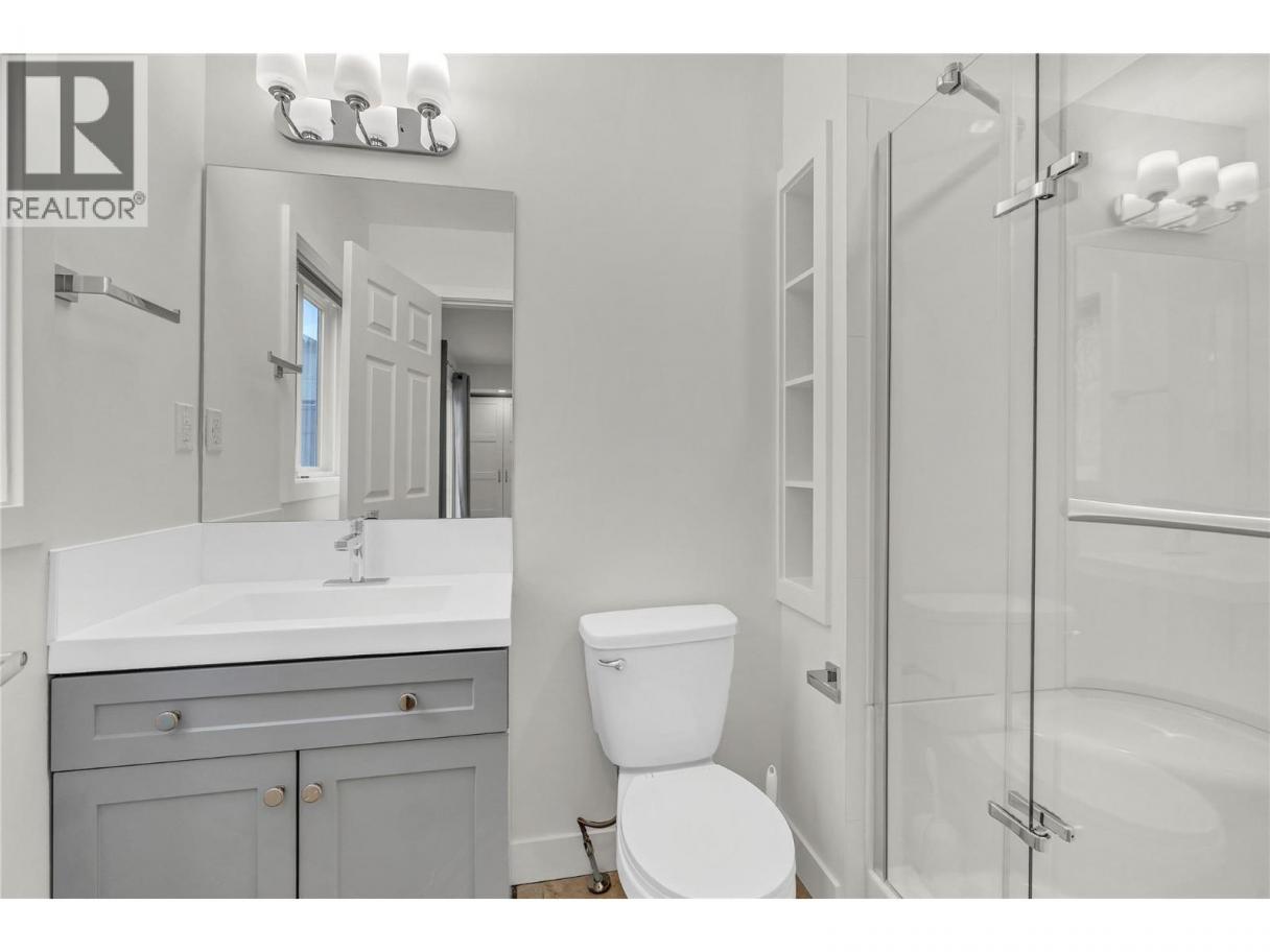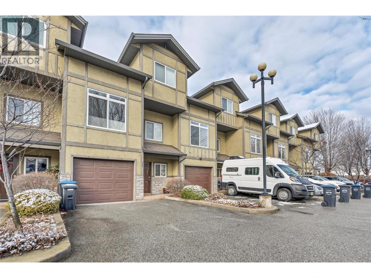 Bright and updated three level townhouse in a central Penticton location. The entry level offers a single car garage with driveway parking, a versatile third bedroom or rec room, a three piece bathroom, and access to a peaceful ground floor patio and landscaped sitting area, perfect for enjoying the morning sun. The main level features high ceilings and large windows that create an airy, light filled atmosphere rarely found in a townhouse. Newer vinyl plank flooring, quartz countertops, renovated bathrooms, and a functional kitchen layout complement the spacious dining area, which opens to a private deck ideal for BBQs and entertaining. In suite laundry, extra storage, and a convenient two piece bath complete this level. Upstairs includes a generous primary bedroom with walk in closet and ensuite access to a four piece Jack and Jill bathroom, plus a second well sized bedroom providing flexibility for children, guests, or a home office. All ages welcome, with one dog and one cat permitted. Conveniently located near shopping, schools, and Skaha Lake, this well maintained home is perfect for first time buyers, growing families, or anyone seeking a comfortable, manageable, and modern living space. Enjoy the combination of privacy, updates, and everyday convenience in a friendly, sought after community. Upgrades list available upon request. (id:6769)