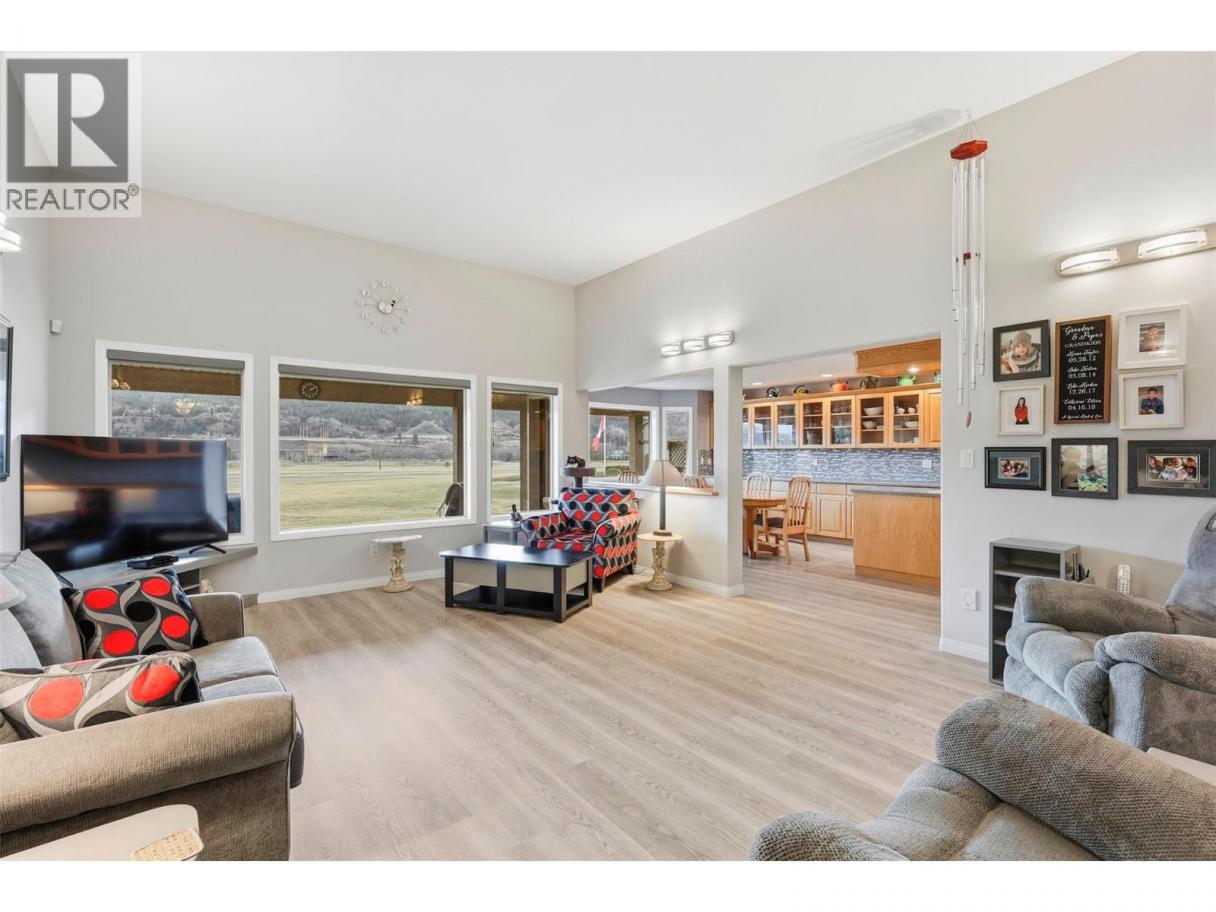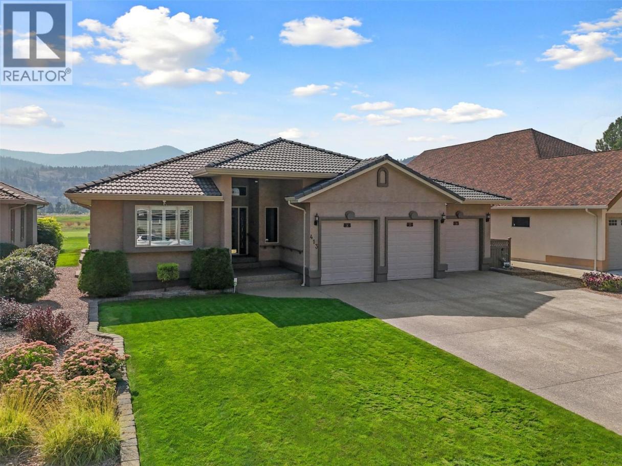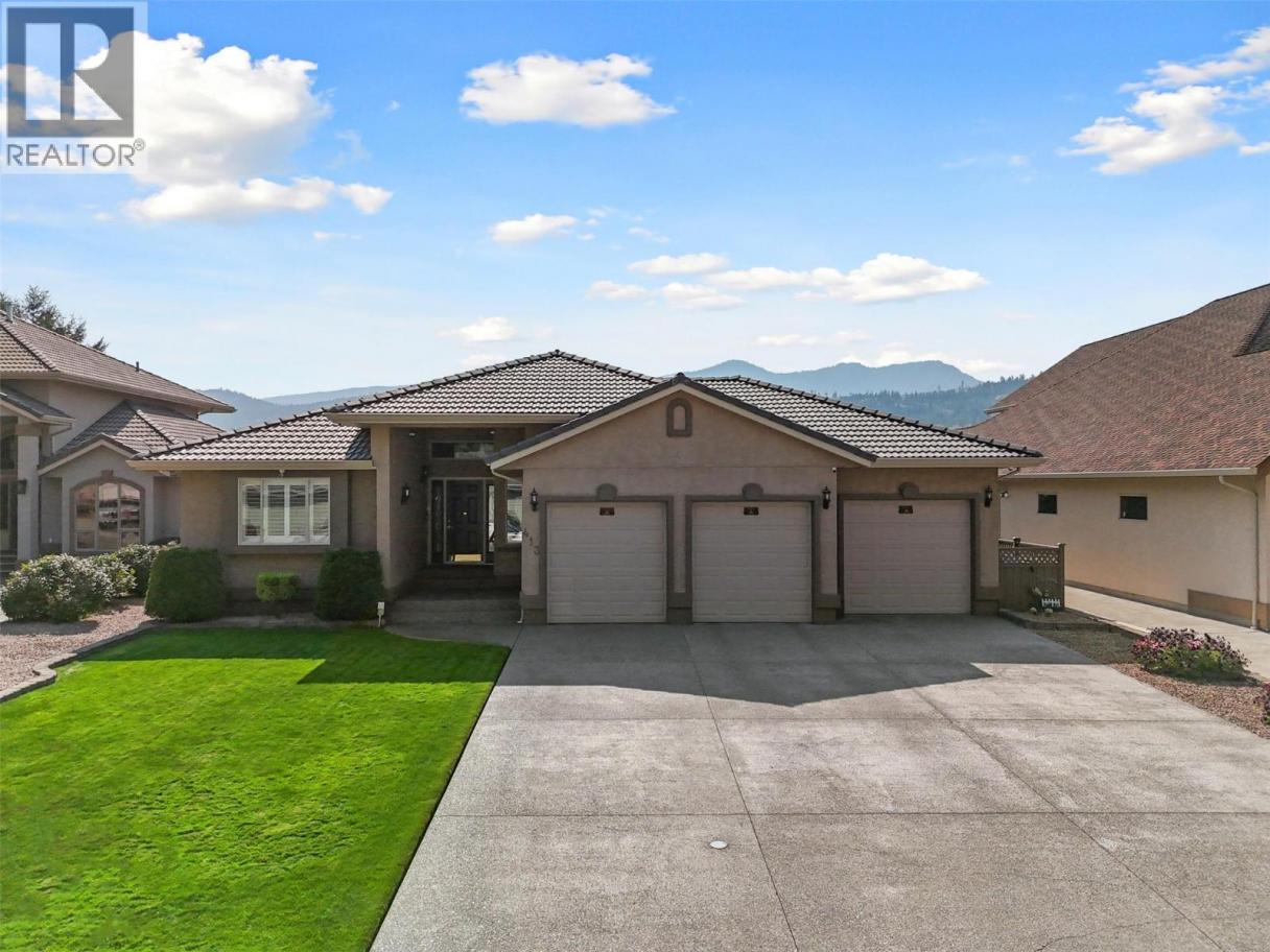 Set along a championship golf course, this custom executive home offers effortless one-level living with 2 bedrooms up and 1 down. Start your mornings on the expansive covered deck overlooking the 5th green and fairway, complete with misters for warm sunny days, and unwind in the evening with stunning sunsets. Take your golf cart to the clubhouse restaurant for dinner or social events and enjoy true resort-style living. The bright quartz kitchen is perfectly positioned to capture sweeping course views, which are shared by the spacious primary bedroom retreat. The lower level features a large bedroom, rec/media room, bonus room, wine maker’s room, and ample storage—ideal for guests and entertaining. The beautifully finished triple car garage includes an acrylic sealed floor, natural gas heat, electric winch, four new garage door motors, and a private staircase to the basement. A geothermal heating and cooling system (2018) provides low monthly costs. Also updated in recent years: hot water tank, fridge, dishwasher, and carpet in the primary bedroom. Five-camera security system included. Request the feature sheet for additional upgrades. All meas are approximate, buyer to confirm if important. Book your private viewing today! (id:6769)
