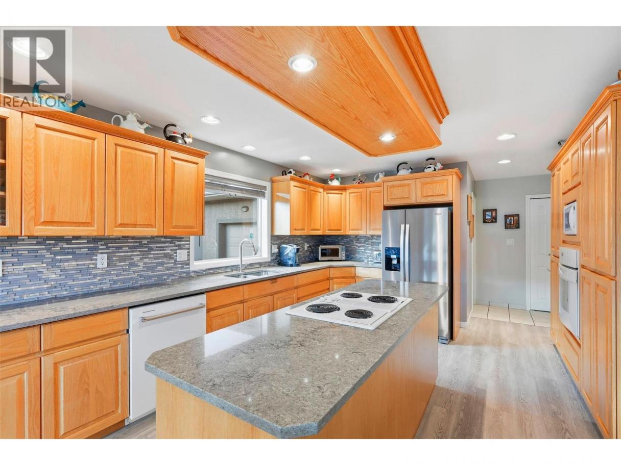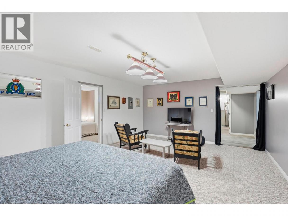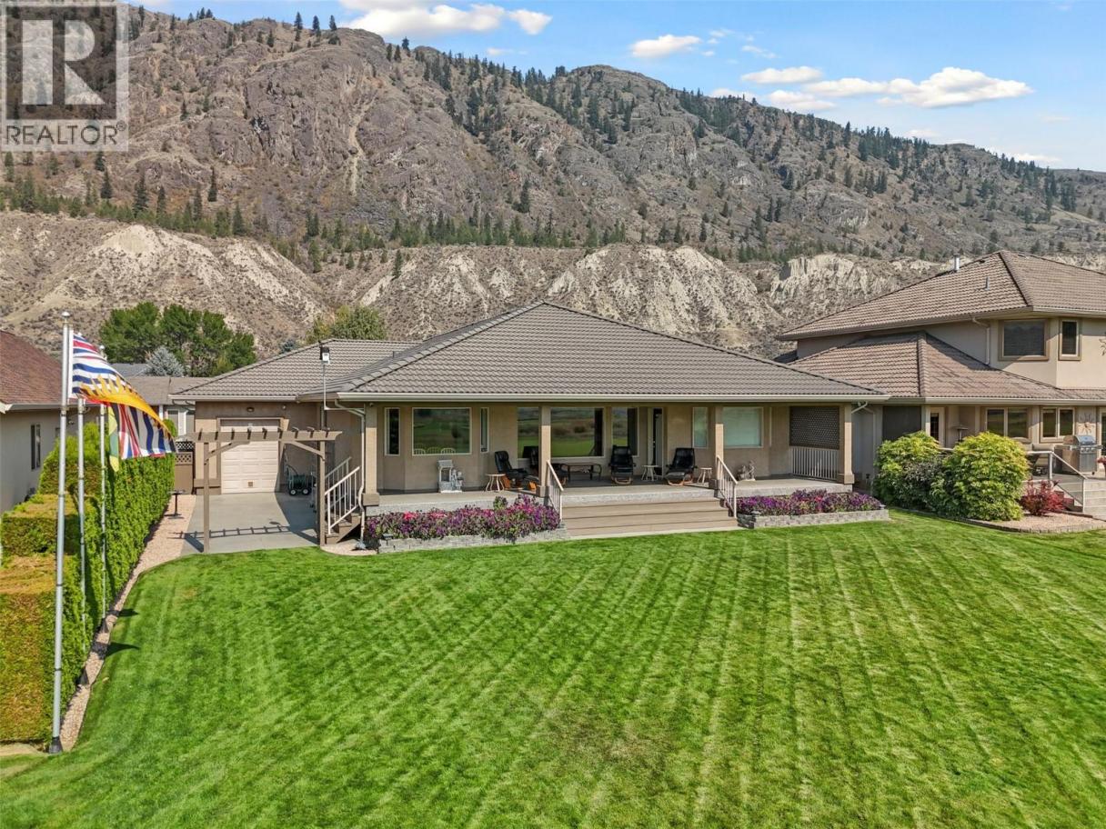 Set along a championship golf course, this custom executive home offers effortless one-level living with 2 bedrooms up and 1 down. Start your mornings on the expansive covered deck overlooking the 5th green and fairway, complete with misters for warm sunny days, and unwind in the evening with stunning sunsets. Take your golf cart to the clubhouse restaurant for dinner or social events and enjoy true resort-style living. The bright quartz kitchen is perfectly positioned to capture sweeping course views, which are shared by the spacious primary bedroom retreat. The lower level features a large bedroom, rec/media room, bonus room, wine maker’s room, and ample storage—ideal for guests and entertaining. The beautifully finished triple car garage includes an acrylic sealed floor, natural gas heat, electric winch, four new garage door motors, and a private staircase to the basement. A geothermal heating and cooling system (2018) provides low monthly costs. Also updated in recent years: hot water tank, fridge, dishwasher, and carpet in the primary bedroom. Five-camera security system included. Request the feature sheet for additional upgrades. All meas are approximate, buyer to confirm if important. Book your private viewing today! (id:6769)