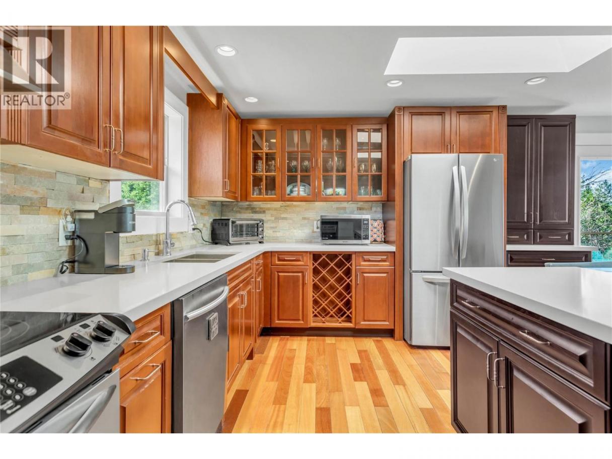 This amazing home set in the tranquility of Carrs Landing. 4-bed, 2-bath home offers breathtaking views in every direction, including stunning lake scenery. The home has a studio in-law suite with Murphy Bed, that was previously licensed for short term rentals. No through road leading to the Maki Coral Beach Trail right trail. The spacious property boasts ample parking for vehicles and recreational toys, an expansive front yard, fully fenced backyard, underground irrigation and a well-constructed storage building for added convenience. Step onto the inviting wrap-around deck and through the front door, where an open-concept living, kitchen and dining area welcomes you. The cozy gas fireplace, set within a stunning stone feature wall, compliments the custom-designed kitchen with quartz countertops and skylights that flood the space with natural light. Spanning over 1,900 sq. ft., this home has been thoughtfully upgraded with a 2019 A/C unit, furnace, and hot water tank, along with a 2016 kitchen renovation and a durable roof installed in 2008. The home is serviced by a treatment plant septic system which is a modern, regulated system designed to treat wastewater to a higher standard than conventional systems. Enjoy the ultimate Okanagan lifestyle with walking distance access to Gable Beach, Coral Beach and 50th Parallel Winery and all the amenities of Lake Country and Vernon. Don’t miss out, schedule your private viewing today! (id:6769)