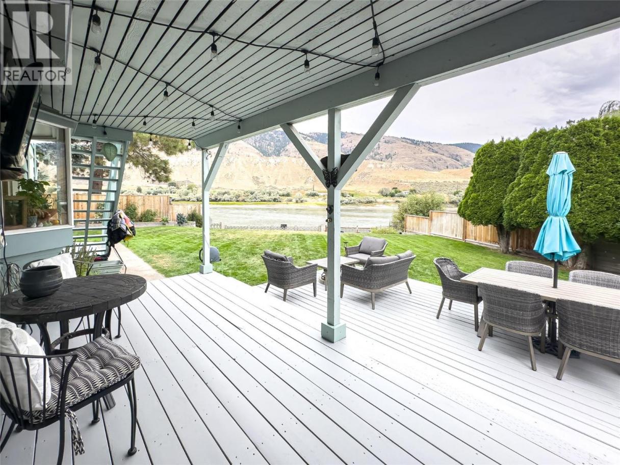 Riverfront living on the South Thompson in Valleyview — offering private dock access and an opportunity to secure waterfront at an approachable price point. Tucked into a cul-de-sac setting, this 2-storey cottage-style home has seen numerous updates over the years and offers a functional, family-friendly layout. The main floor includes all primary living areas, featuring a living room with natural gas fireplace, dedicated dining space, and a spacious kitchen with a large island and ample counter and storage space. Double French doors open to the covered deck and patio, extending the living space outdoors and overlooking the fully fenced backyard — ideal for entertaining or relaxing while enjoying the river setting. Upstairs you’ll find three bedrooms, including a generous primary bedroom with 3-piece ensuite and private 21x8 sundeck with river views. The former garage has been converted into a comfortable family room, adding flexible living space, with the option to convert back if desired. Additional features include central A/C, in-ground irrigation, a 12x12 storage shed, and RV parking. Conveniently located close to schools, shopping, and everyday amenities, this property offers a practical opportunity to enjoy riverfront living in Kamloops. Buyer to verify all measurements and listing details if deemed important. (id:6769)
