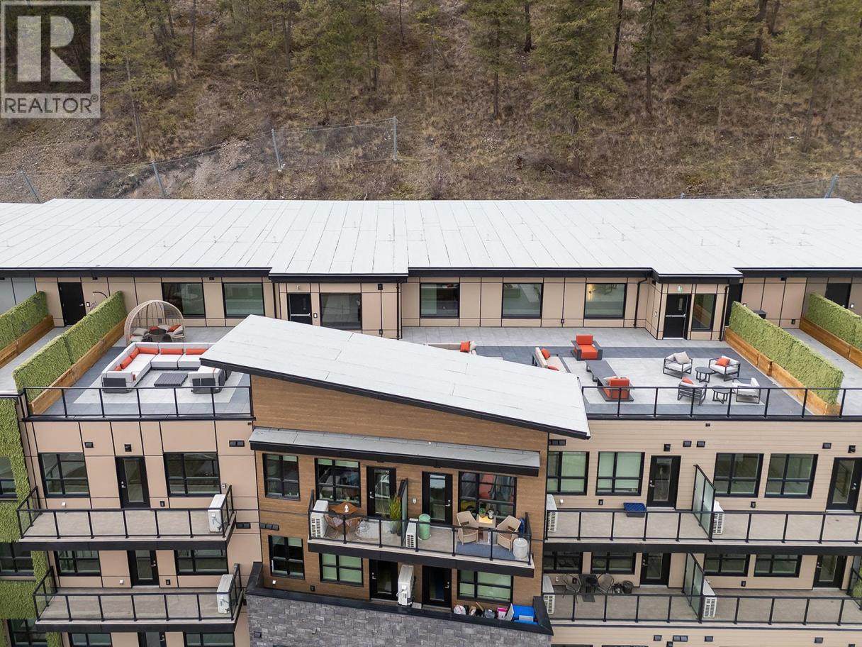 Private huge rooftop patio. New. Stylish. Move-In Ready. Spacious 2-Bed + Den corner top home at Eminence at Knox Mountain offers approx 1,152 sqft of beautifully finished living space with an abundance of light, a smart split-bedroom floorplan, a versatile den & laundry room. The kitchen is a designer focal point, complete with a large island, premium 2-tone cabinetry, quartz countertops, stainless steel appliances & a gas stove. Thoughtful details carry throughout, from 9-ft ceilings & expansive windows to warm wood tones, bold black accents & glass elements that echo the surrounding views. Designer LED lighting, a statement entry door, solid-core interior doors & custom closet & shelving solutions. 2 underground parking stalls plus 2 private bike cages. 2 spacious outdoor decks provide approx. 1,352 sqft of outdoor living. The building’s common rooftop viewing terrace gives all new meaning to Kelowna’s Patio Season. Pet-friendly & nature is at your doorstep with direct access to Knox Mountain’s hiking & biking trails. Downtown Kelowna & Glenmore are minutes away. Buy new & save. Eligible buyers may qualify for the Property Transfer Tax exemption & the upcoming 1st time home buyer GST exemption & remaining homes include up to $100k in built-in savings from original pricing. If you want a designer condo you’ll love coming home to, this one checks all the boxes. Move-In Ready 1-Bed to 2-Bed + Den homes available. Sales Centre open Sat & Sun 12-4pm or by appointment. (id:6769)