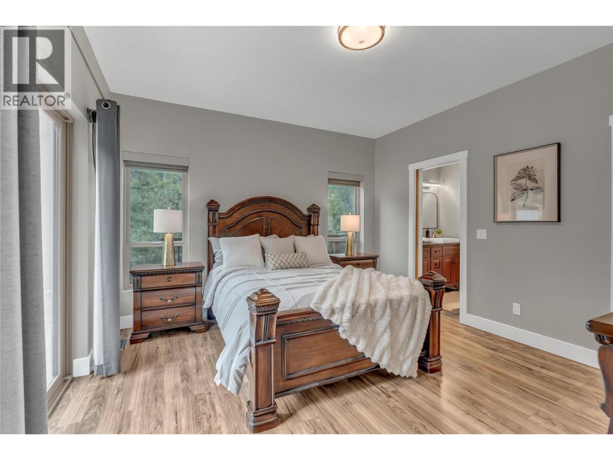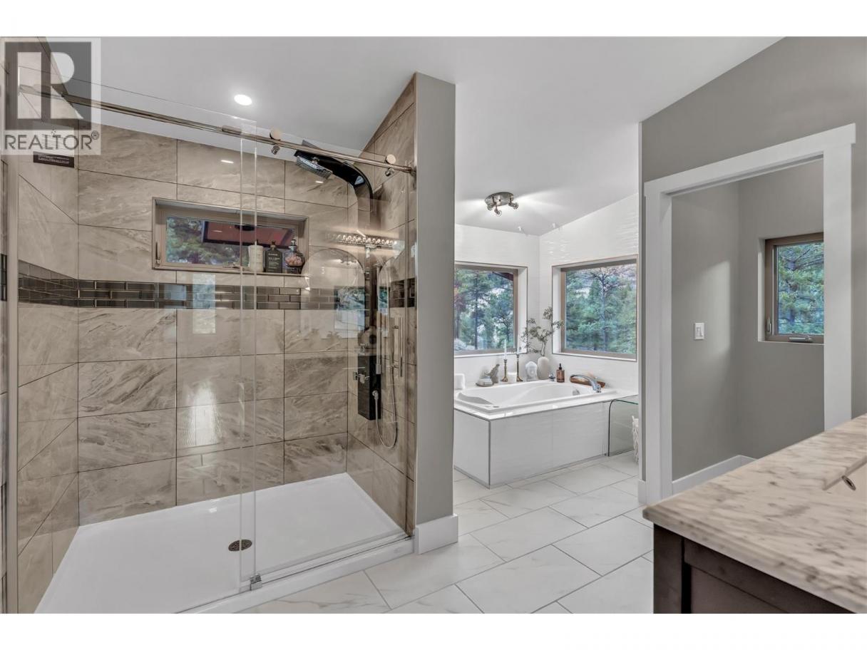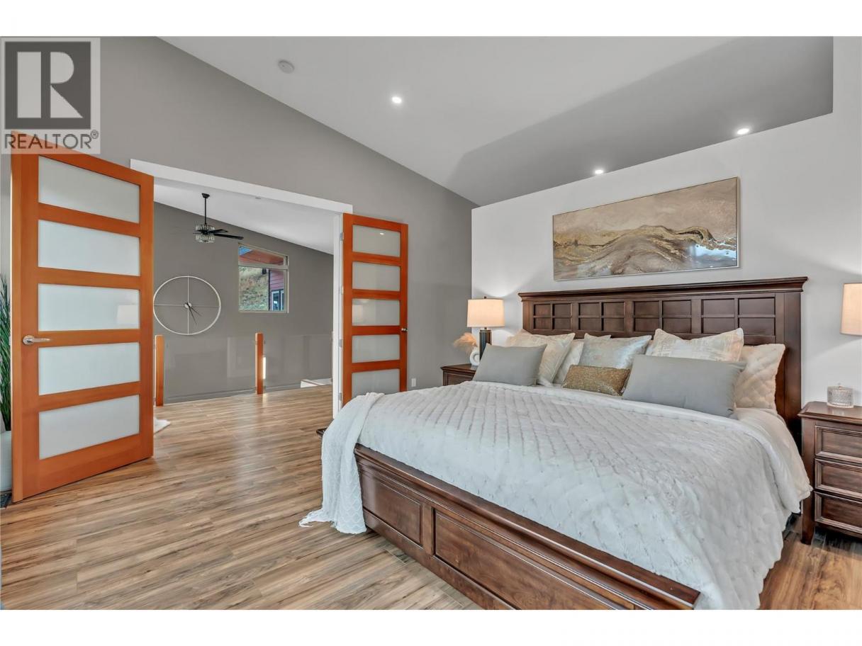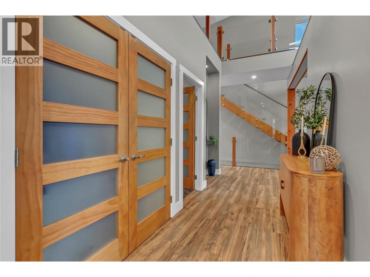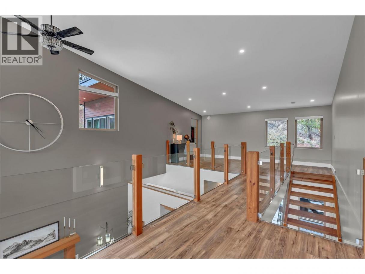 Welcome to 109 Fairway Drive in St. Andrews By The Lake. This architecturally stunning home, 15 minutes from Penticton, features unparalleled views of nature, 3,675 sqft of living space, 2 stories with a walk-out lower level. Impeccably built in 2018 with contemporary design to maximize views, style, sunlight, privacy and efficiency. Featuring glass/stainless steel railings, floating upper-level catwalk and soaring 20ft ceilings. 3 huge primary suites on the upper & main levels with 5, 4 & 3 pc ensuites, jetted tub, luxury showers, walk-in closet & private patio/deck spaces for each with the main level patio featuring its own hot tub. Granite kitchen countertop, stainless appliances, walk-in pantry, custom cabinetry and natural light make this a dream kitchen. Many finer details: reverse osmosis, central vac, 4 decks, no-maintenance landscaping, 150ft concrete driveway: parking for 10+ vehicles and the foresight to have the home wired to function with a generator for potential power outages. Enjoy the spacious dream garage: (35.2’x24’): epoxy floors, workshop area & storage cabinetry. Walkout lower level has drywall, roughed-in plumbing & separate 100A panel—suite potential and 220V wiring on lower deck. St. Andrew’s offers some of the finest amenities: free golf for owners AND their children, heated swimming pool, tennis/pickleball courts, clubhouse, gym and secure RV storage. This is truly one of the finest and most unique homes in St. Andrews. Book a private showing today. (id:6769)