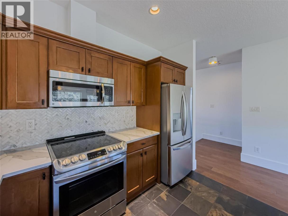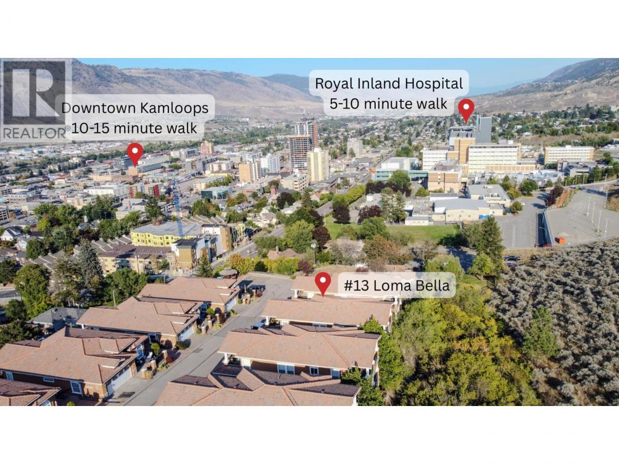 Just minutes from Royal Inland Hospital and the heart of Downtown Kamloops, this executive-style basement-entry townhouse sits in the small, sought-after Loma Bella complex. Enjoy panoramic city views from your private north-facing patio, or relax on one of two south-facing patios overlooking a quiet ravine. Updates include refreshed bathrooms, new interior paint & flooring, lighting and a waterfall-edge quartz kitchen countertop. The main floor is bright and surrounded by windows, filling the home with natural light. A semi-open layout connects the kitchen and casual dining area to the south patio, while the living room and formal dining space—with a 2-piece powder room—open onto the north patio. The spacious primary bedroom also connects to the south patio and features a walk-through closet leading to an updated 4-piece ensuite with a stand-up shower and separate soaker tub. The lower level offers a second living room with patio access, two additional bedrooms (one with a cheater ensuite and patio access), a generous foyer, laundry area, and direct entry to the double garage. Extras include central A/C, ample storage, and garage upgrades with slat wall and extra shelving. Located within walking distance of Downtown shops, restaurants, and Riverside Park. A rare opportunity for professionals, downsizers, or anyone seeking low-maintenance living with incredible views & convenient access. Strata: $411.05. Pets allowed (cats & dogs). Buyer to confirm all details & measurements. (id:6769)