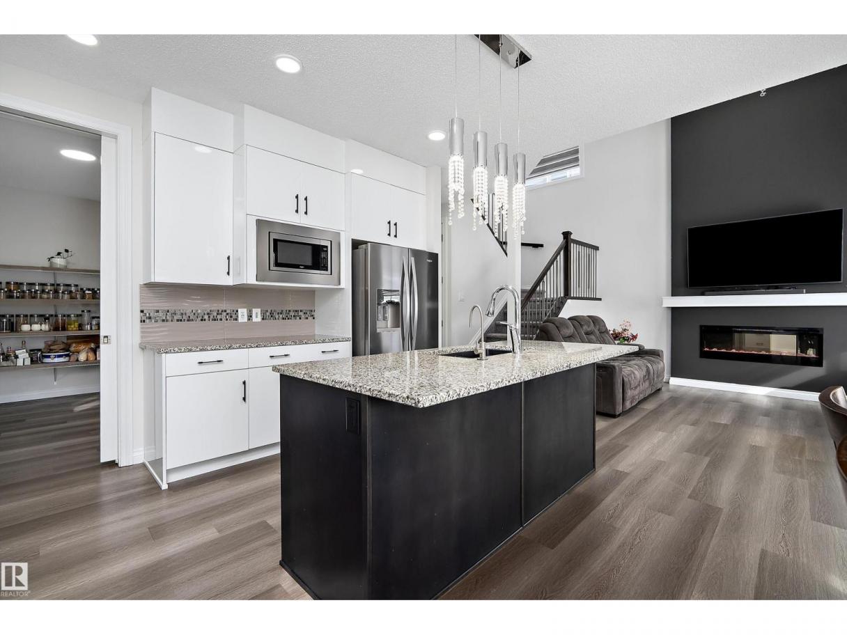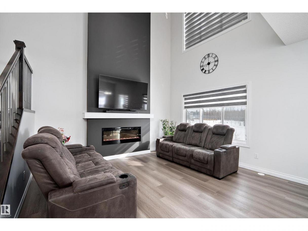 Amazing LOCATION in a CUL DE SAC on a PIE LOT & backing the NATURAL TREES, LAKE, TRAILS & just steps from the SCHOOL! This LANDMARK 2 STOREY features an 'OPEN TO BELOW' great room with TRAY CEILINGS, FIREPLACE, iron & wood railings, LVP FLOORING, GRANITE COUNTERS, 9' CEILINGS on 3 levels & large windows to take in the SOUTH VIEWS! The contemporary ISLAND KITCHEN features a iSPRING WATER SYSTEM, stainless appliances & overlooks the spacious dining area & PATIO DOORS will provide access to the yard & future deck. Just off the kitchen is a large WALK THRU PANTRY complete with roughed in gas & direct vent for range hood ready for appliances & cabinets! A two pc. bath & access to the 20'x21 garage with 8' OH door. Up the stairs to a BONUS ROOM overlooking the yard & VIEW, 2 bedrooms with a 4 pc. bath, laundry plus a SPACIOUS PRIMARY with walk in closet & lovely ensuite including OVER SIZED SHOWER & TUB! Side entrance to the open basement! Custom blinds, RI security, HI VELOCITY HEAT, TANKLESS HWT. IT'S LOVELY! (id:6769)