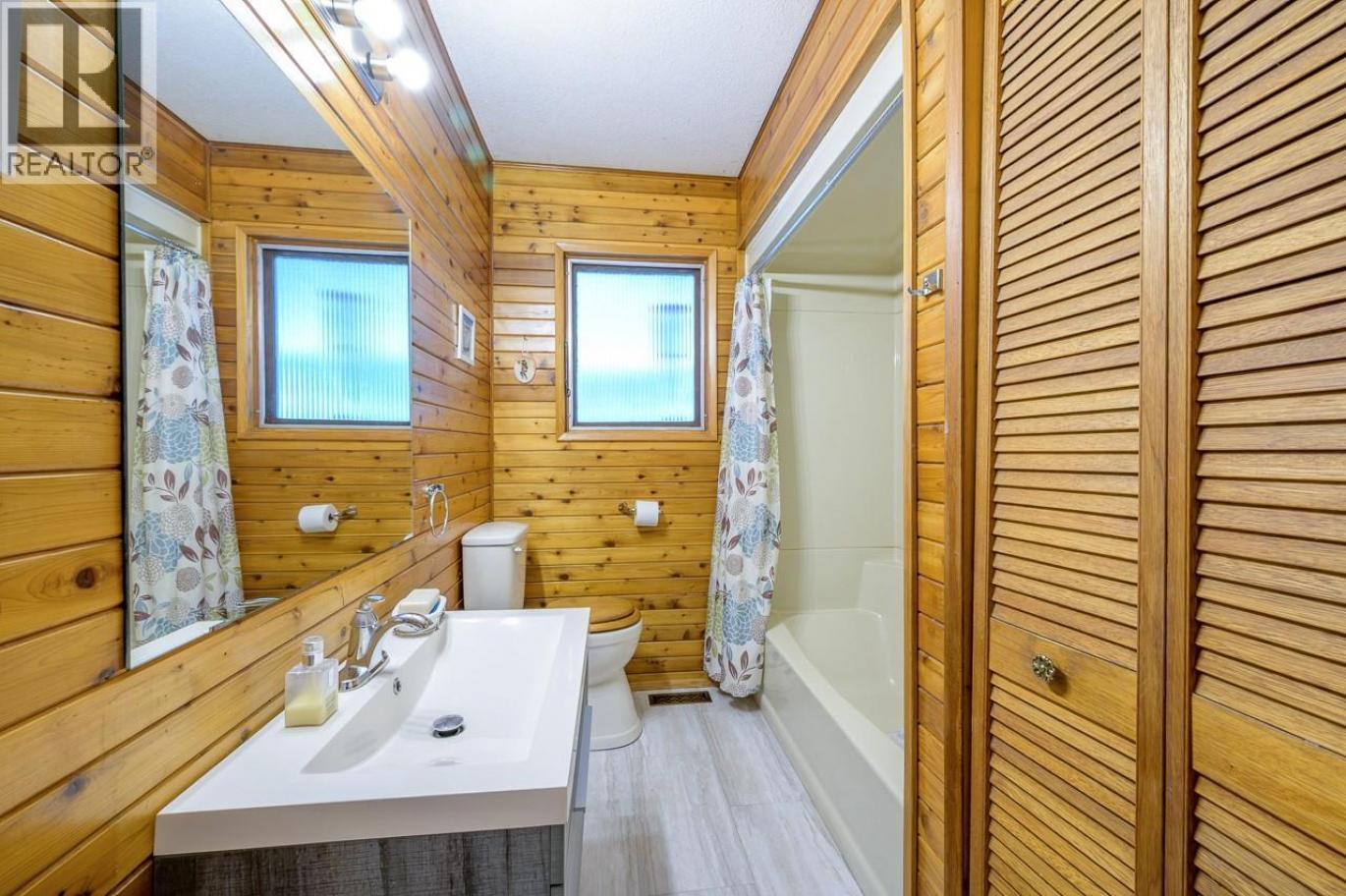 Solid Westmount single owner home with a number of upgrades and separate entry with suite potential. This home has seen a number of upgrades over the years, there is hardwood flooring throughout the main living space, one of the bedrooms has been converted to a large dining room which leads to the large covered back patio. The main floor has a large living room with bay window, the kitchen is open to the nook area and it is a functional space with side access door to the parking area. The main floor has a full 4 piece bathroom and 2 additional bedrooms. Descend down the funky spiral staircase to the basement where you will find a cozy family room, 2 additional bedrooms, a laundry room, mud room space, 4 piece bathroom, a cold room and large workshop. Other features of this home include: central vacuum, furnace 2012, hot water tank 2018, nice sized yard with garden bed area, large covered deck with stair access to the yard, good parking with room for multiple vehicles and an RV. Located on a nice street in Westmount with little traffic. Only a few minutes walk to the local elementary school, transportation and the rivers trail. There is a lot of local shopping nearby and tons of hiking and biking trails. Great home with tons of potential to put your own touches on it! (id:6769)