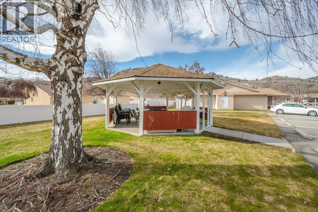 Welcome to this charming one-level townhome in a peaceful neighbourhood along the Okanagan River, with direct access to hike and bike trails for easy strolls, runs or rides to nearby amenities. Freshly updated and bright throughout, this home offers an open, sun-filled layout that’s perfect for all ages. The beautiful, renovated kitchen offers quartz countertops, gleaming tile backsplash, plenty of cupboard space with soft-close cabinetry and a new refrigerator. The open concept dining and living area feels inviting and light, enhanced by a solar tube that brings in extra natural brightness. Primary suite has a large window with updated blinds, walk-in closet & 2-pce ensuite with newer fixtures. Spacious main bathroom is illuminated with a large skylight and conveniently located next to the second bedroom. New stacked washer & dryer are tucked away. Large crawl space area offers tons of extra storage space. When you want to spend time outdoors, step out onto your private patio complete with a storage shed. Relax, unwind, enjoy some green space & beautiful views. Recent mechanical updates include a heat pump (2014), hot water tank (2021), updated plumbing, water softener & reverse osmosis system. Covered parking is right at your front door and RV parking is available. NO AGE RESTRICTIONS and up to 2 pets permitted. Strata fees of $363/month include maintenance & landscaping. Don’t miss this great opportunity in a fantastic location, book your private showing today! (id:6769)