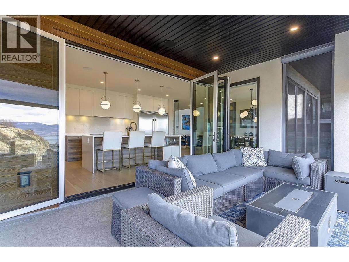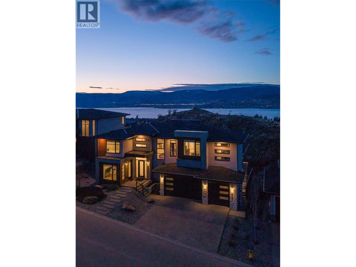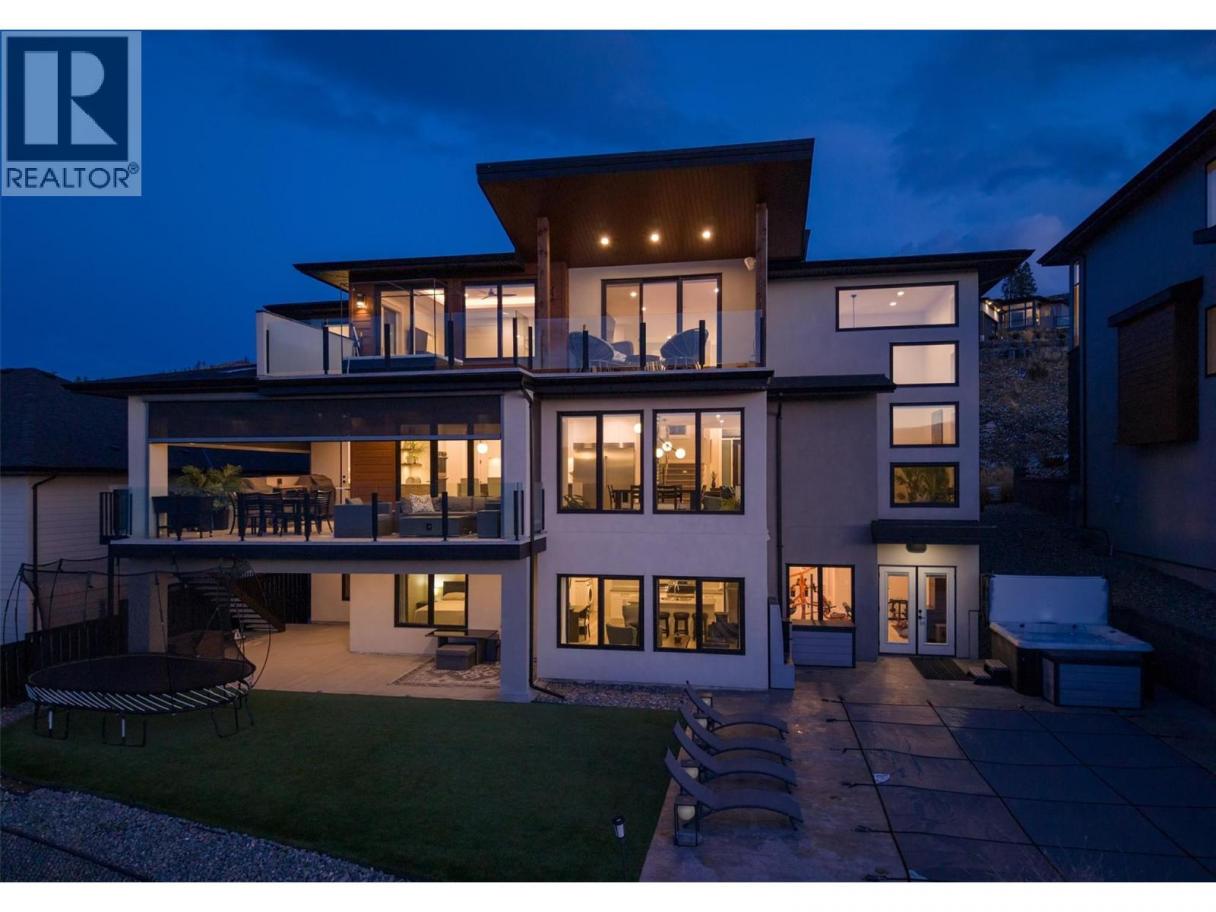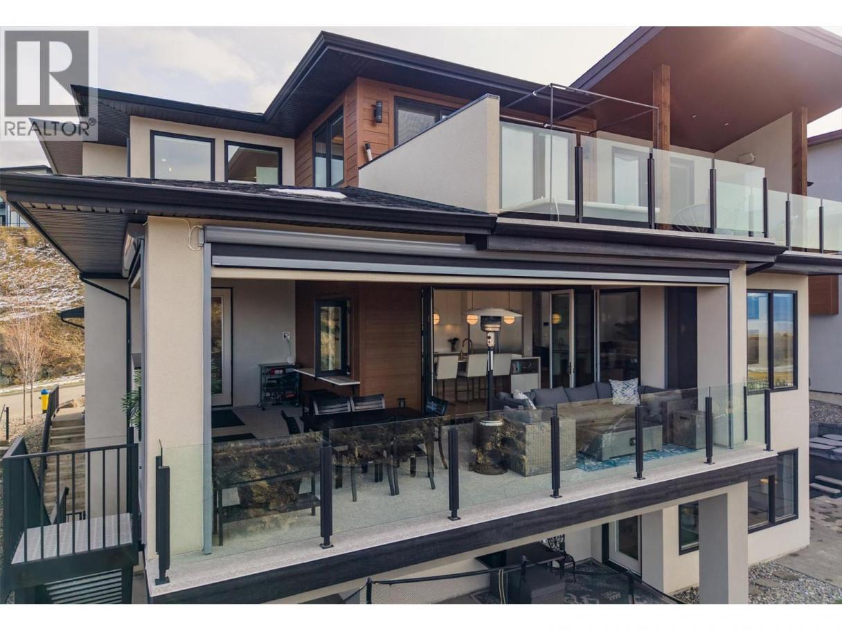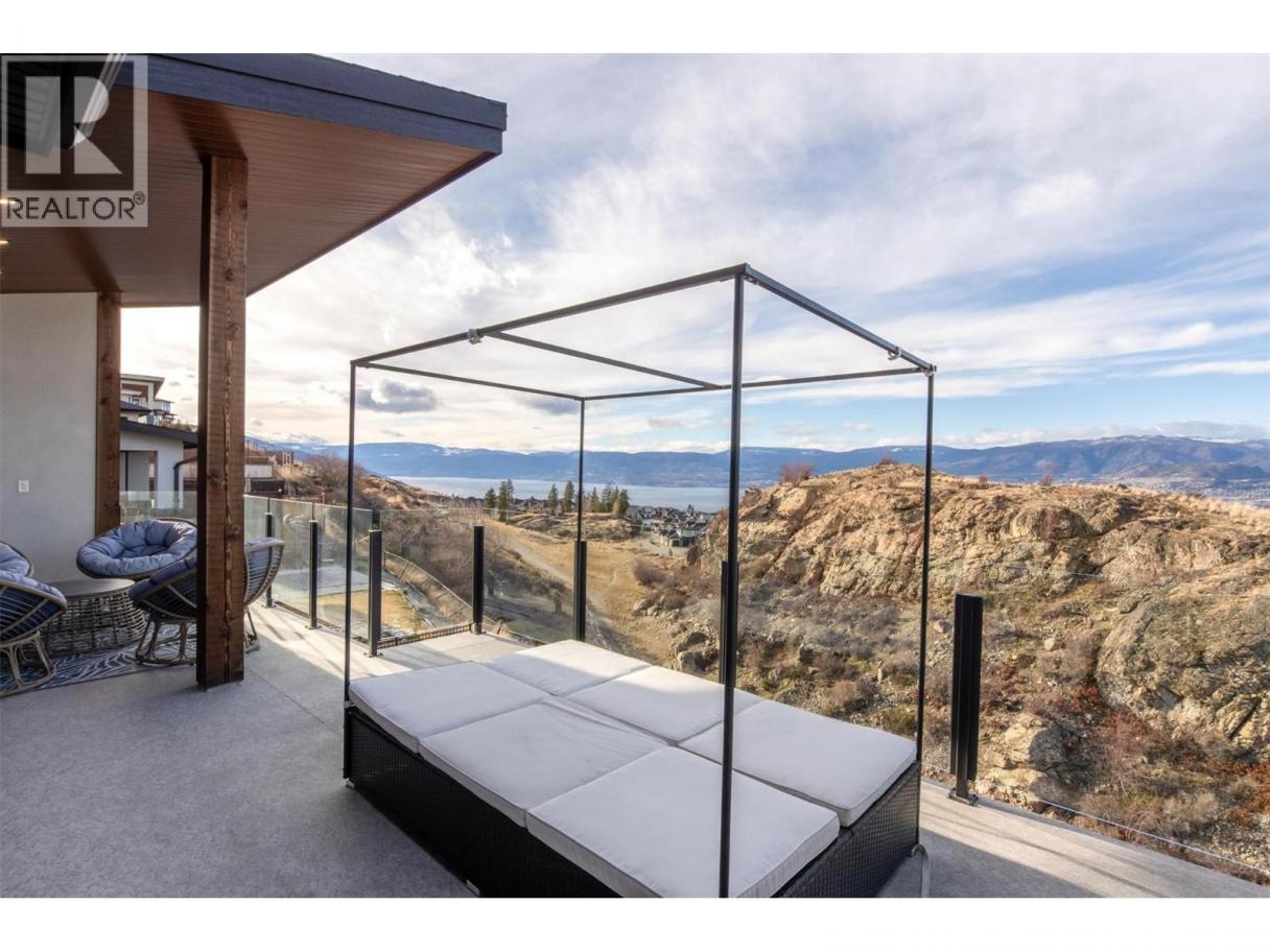 Framed by dramatic walls of glass that command sweeping panoramic views, this exceptional Upper Mission residence rises above Okanagan Lake with striking architectural presence and refined luxury. Perfectly positioned above a bold natural stone overlook, the home captures the lake from a vantage point that feels both powerful and private, providing a rare sense of an enduring natural view. The open concept main level features soaring ceilings, a dedicated office space and effortless indoor-outdoor flow via Nano doors. The chef’s kitchen is beautifully appointed with built-in high end appliances, a quartz waterfall island, and a full butler’s pantry that connects to a custom mudroom with exceptional integrated storage. The sprawling main deck is an entertainer's dream, featuring motorized sun shades, a BBQ area, and a convenient pass-through window to the kitchen and direct access to the pantry. The mezzanine-style upper family room is a true retreat, featuring a fireplace, wine bar, and private deck with stunning views. This level also hosts the primary suite, a spa-inspired ensuite and an expansive walk-in closet. Below, enjoy the resort-style gym, pool, and hot tub. With a bright 2-bedroom legal suite, the floorplan offers incredible flexibility. Every detail is considered: a smart home system, central audio, and a triple garage with extra-high ceilings. This is luxury without compromise, an inspired home minutes from schools, hiking, award-winning wineries and amenities (id:6769)