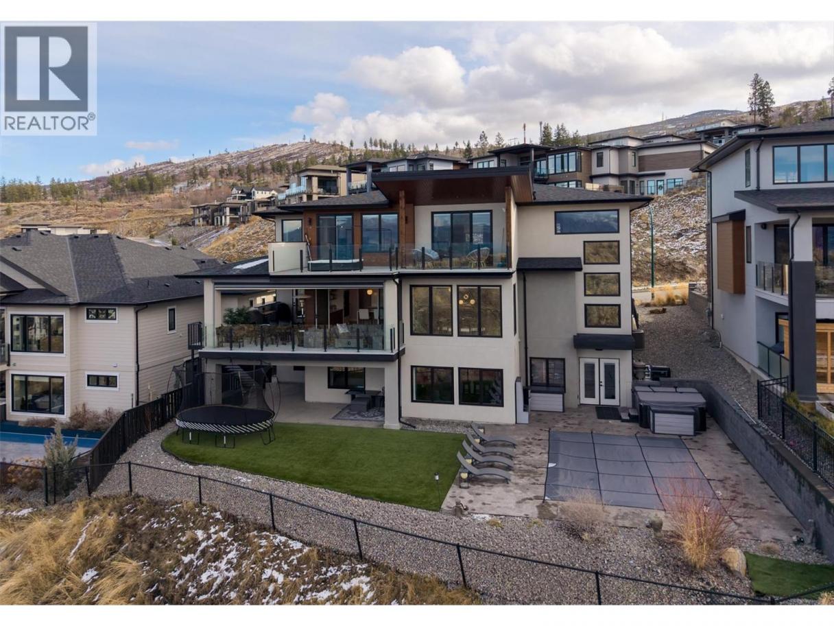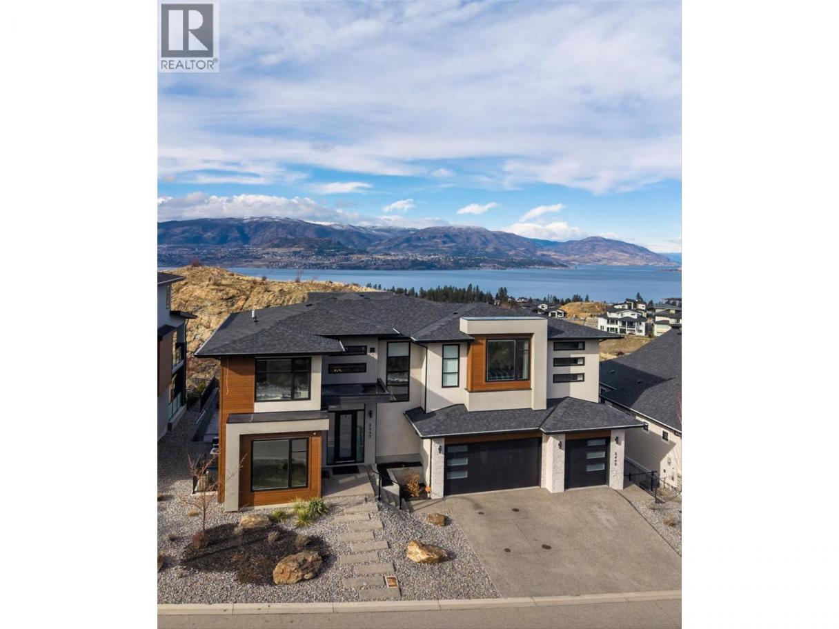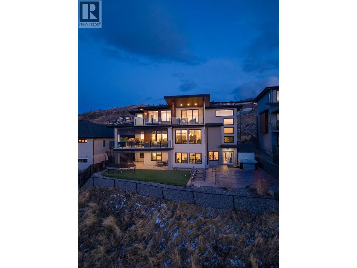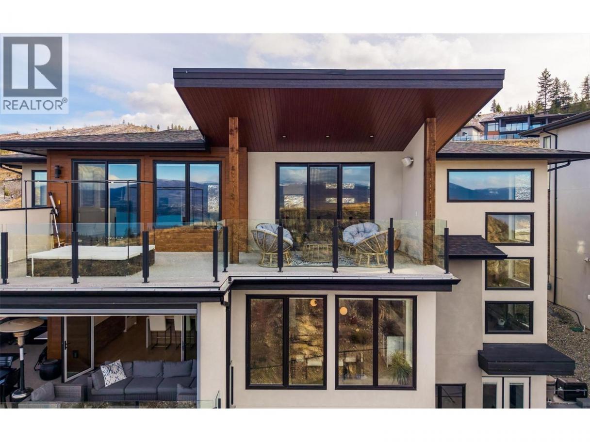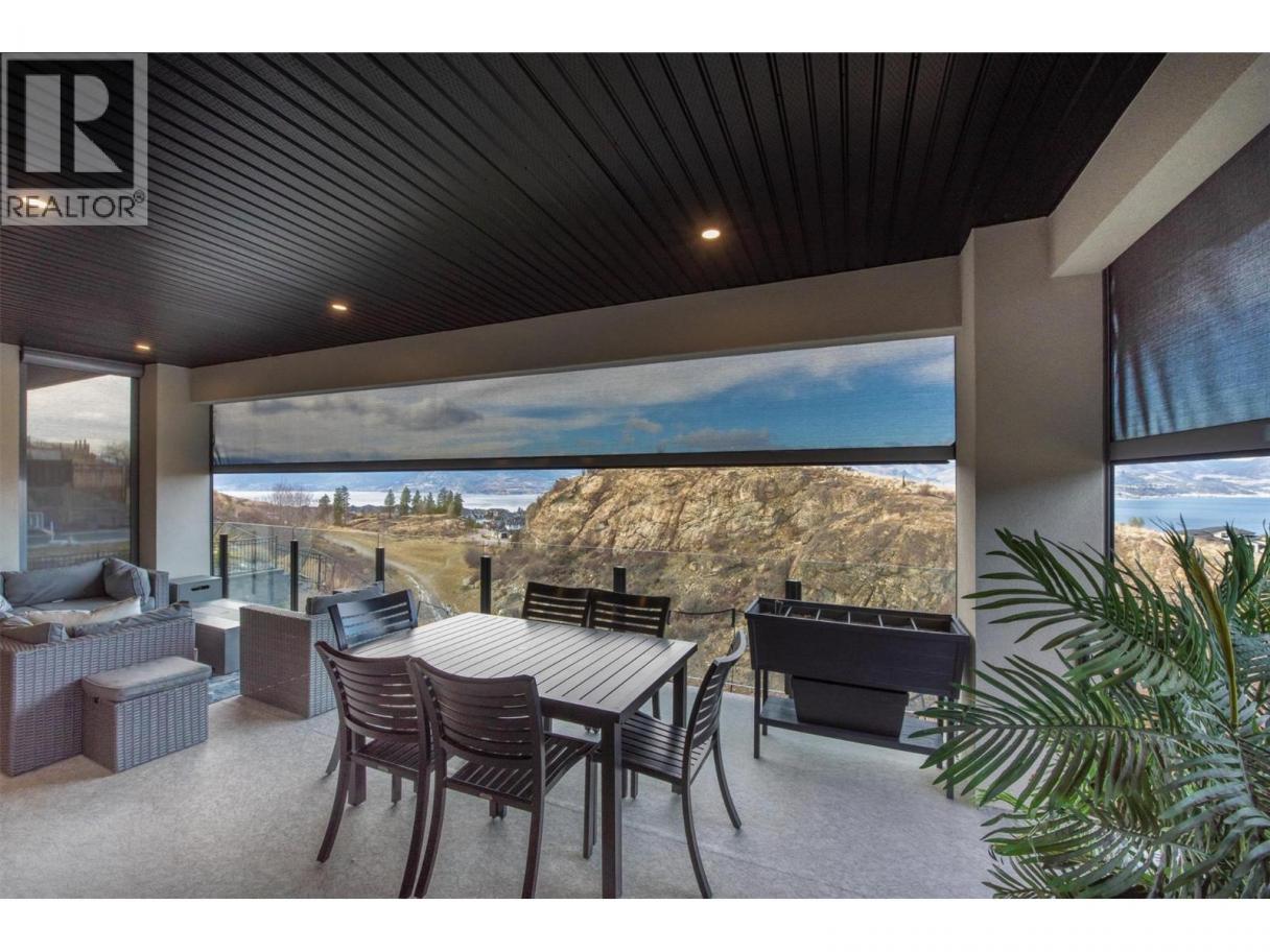 Framed by dramatic walls of glass that command sweeping panoramic views, this exceptional Upper Mission residence rises above Okanagan Lake with striking architectural presence and refined luxury. Perfectly positioned above a bold natural stone overlook, the home captures the lake from a vantage point that feels both powerful and private, providing a rare sense of an enduring natural view. The open concept main level features soaring ceilings, a dedicated office space and effortless indoor-outdoor flow via Nano doors. The chef’s kitchen is beautifully appointed with built-in high end appliances, a quartz waterfall island, and a full butler’s pantry that connects to a custom mudroom with exceptional integrated storage. The sprawling main deck is an entertainer's dream, featuring motorized sun shades, a BBQ area, and a convenient pass-through window to the kitchen and direct access to the pantry. The mezzanine-style upper family room is a true retreat, featuring a fireplace, wine bar, and private deck with stunning views. This level also hosts the primary suite, a spa-inspired ensuite and an expansive walk-in closet. Below, enjoy the resort-style gym, pool, and hot tub. With a bright 2-bedroom legal suite, the floorplan offers incredible flexibility. Every detail is considered: a smart home system, central audio, and a triple garage with extra-high ceilings. This is luxury without compromise, an inspired home minutes from schools, hiking, award-winning wineries and amenities (id:6769)
