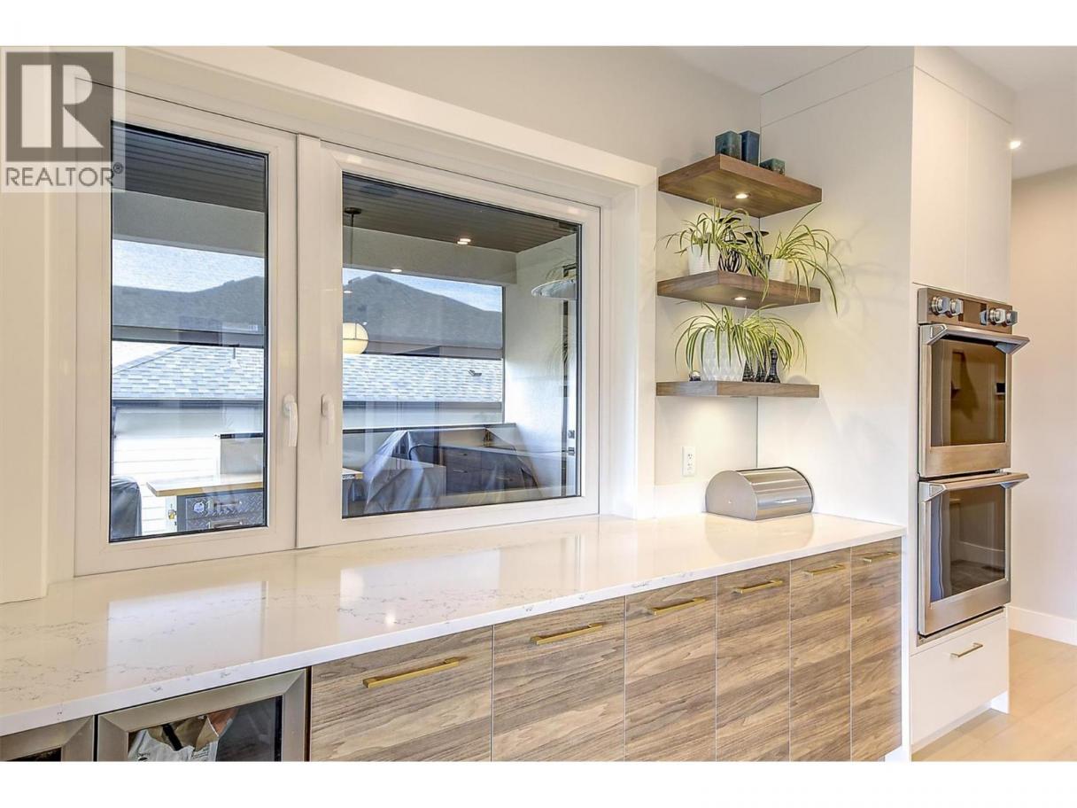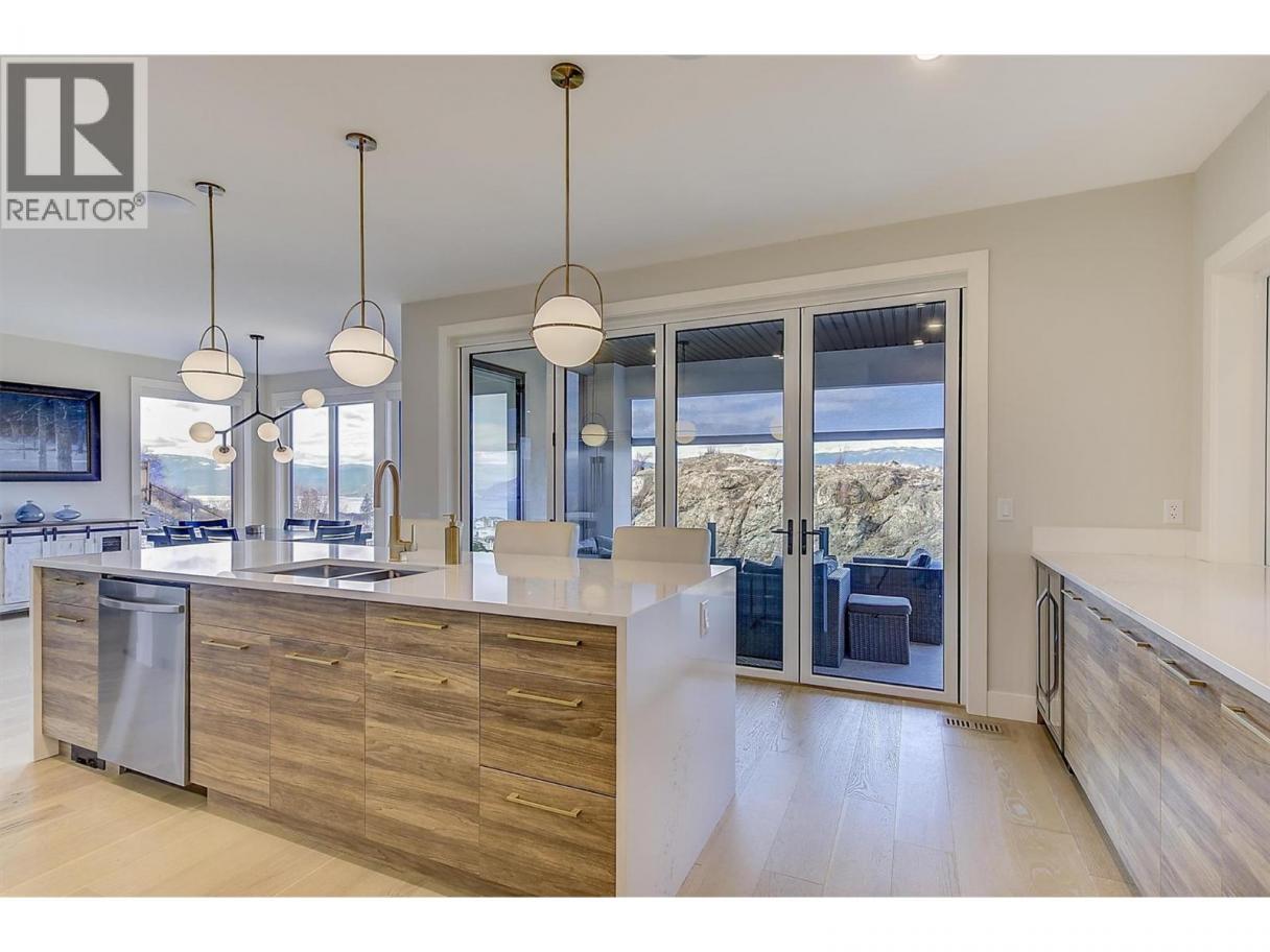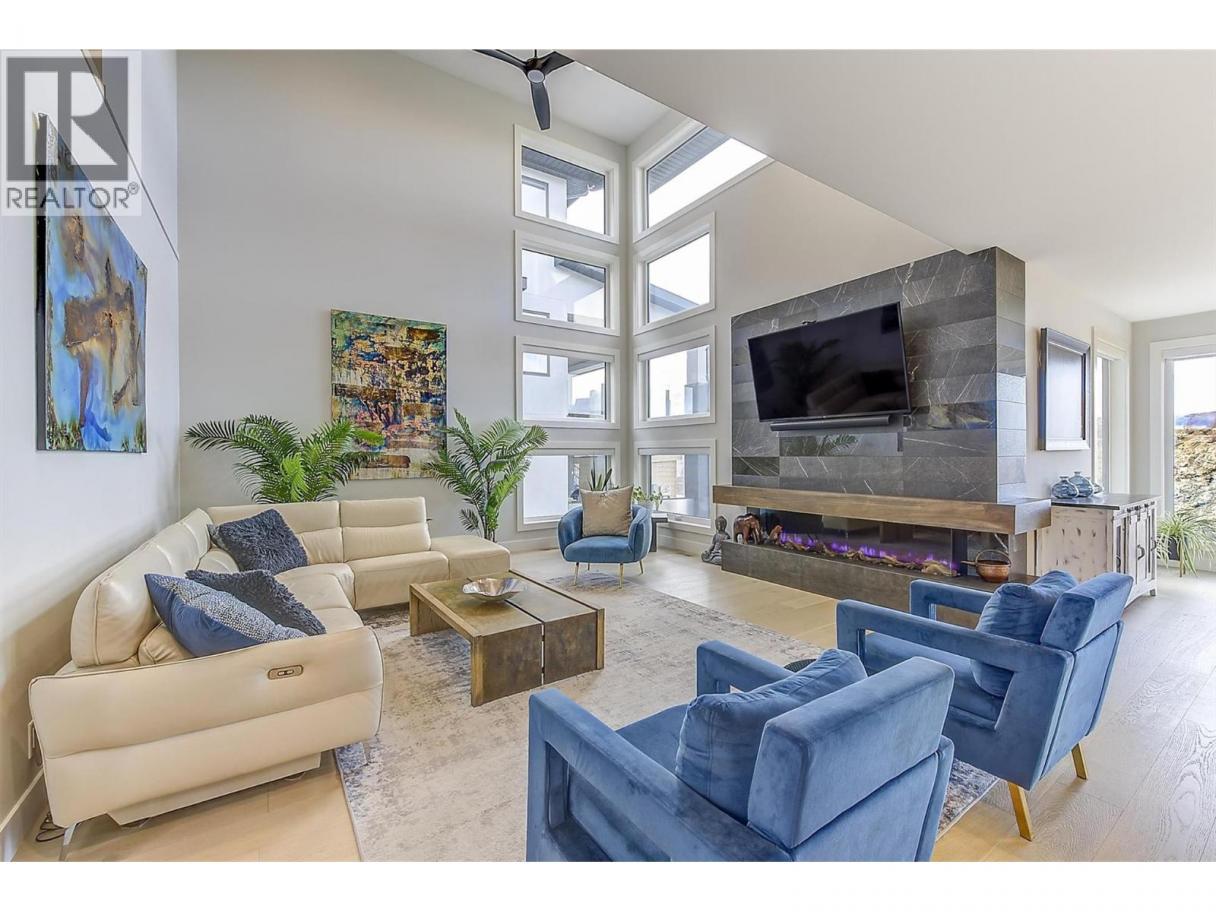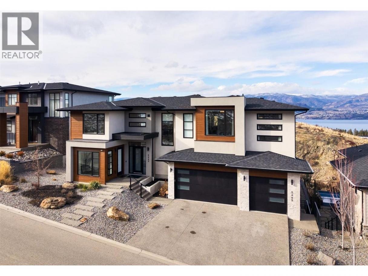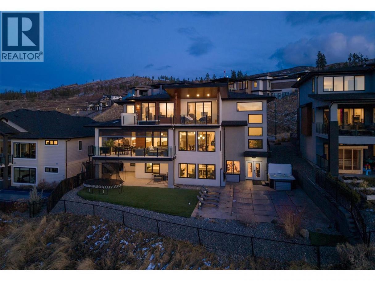 Framed by dramatic walls of glass that command sweeping panoramic views, this exceptional Upper Mission residence rises above Okanagan Lake with striking architectural presence and refined luxury. Perfectly positioned above a bold natural stone overlook, the home captures the lake from a vantage point that feels both powerful and private, providing a rare sense of an enduring natural view. The open concept main level features soaring ceilings, a dedicated office space and effortless indoor-outdoor flow via Nano doors. The chef’s kitchen is beautifully appointed with built-in high end appliances, a quartz waterfall island, and a full butler’s pantry that connects to a custom mudroom with exceptional integrated storage. The sprawling main deck is an entertainer's dream, featuring motorized sun shades, a BBQ area, and a convenient pass-through window to the kitchen and direct access to the pantry. The mezzanine-style upper family room is a true retreat, featuring a fireplace, wine bar, and private deck with stunning views. This level also hosts the primary suite, a spa-inspired ensuite and an expansive walk-in closet. Below, enjoy the resort-style gym, pool, and hot tub. With a bright 2-bedroom legal suite, the floorplan offers incredible flexibility. Every detail is considered: a smart home system, central audio, and a triple garage with extra-high ceilings. This is luxury without compromise, an inspired home minutes from schools, hiking, award-winning wineries and amenities (id:6769)