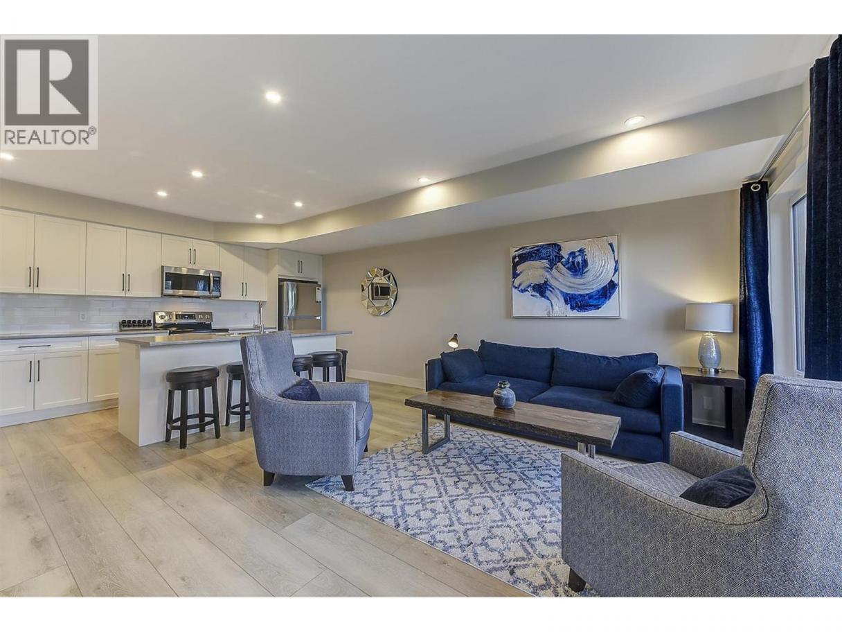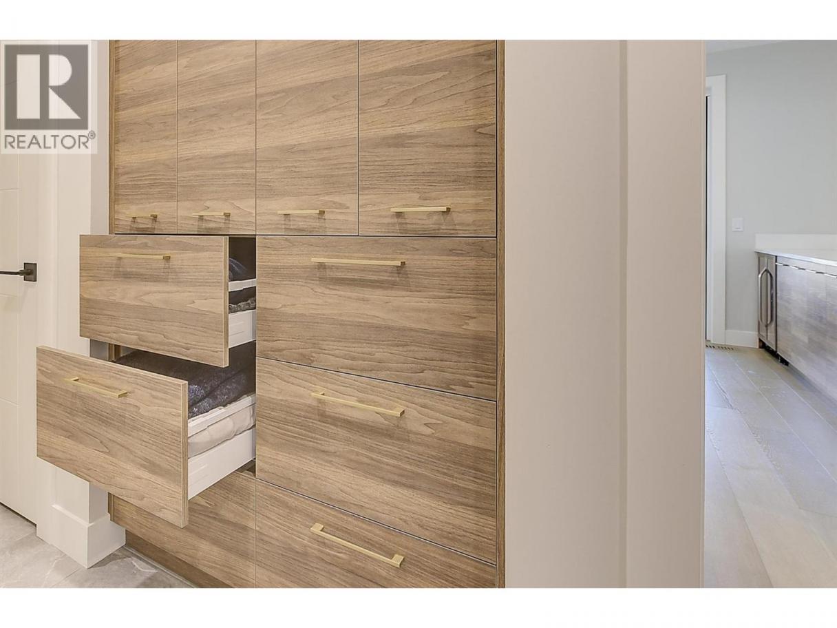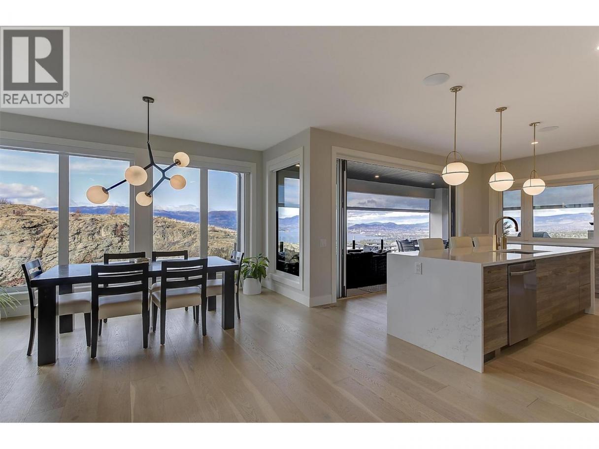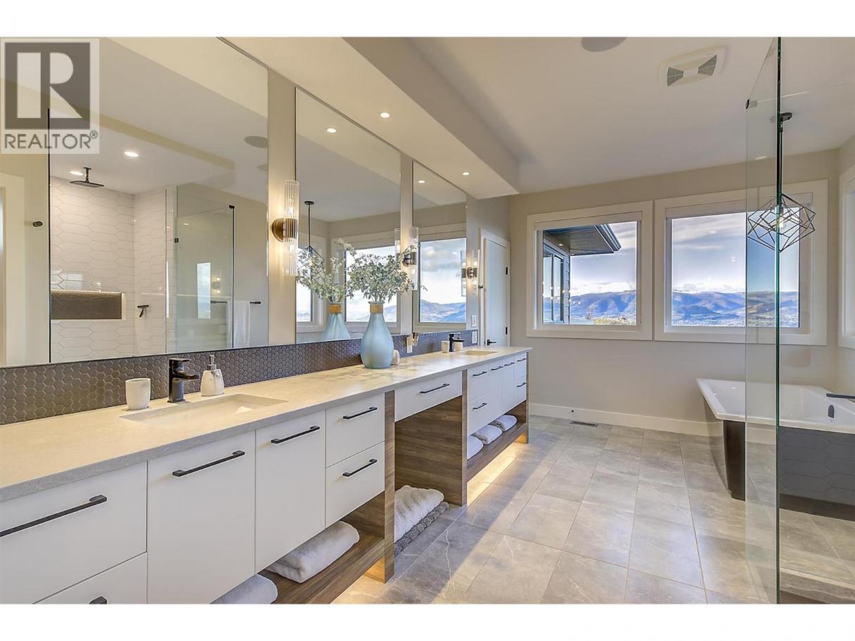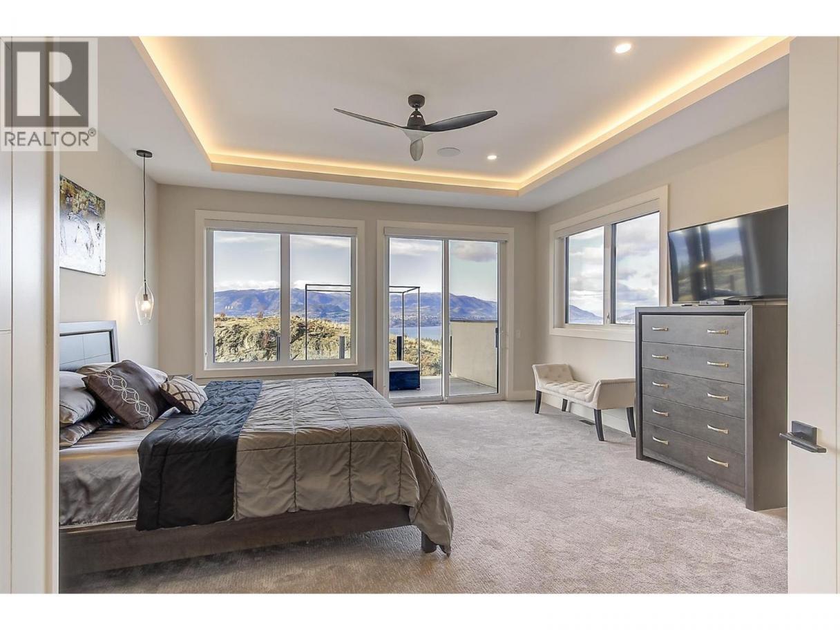 Framed by dramatic walls of glass that command sweeping panoramic views, this exceptional Upper Mission residence rises above Okanagan Lake with striking architectural presence and refined luxury. Perfectly positioned above a bold natural stone overlook, the home captures the lake from a vantage point that feels both powerful and private, providing a rare sense of an enduring natural view. The open concept main level features soaring ceilings, a dedicated office space and effortless indoor-outdoor flow via Nano doors. The chef’s kitchen is beautifully appointed with built-in high end appliances, a quartz waterfall island, and a full butler’s pantry that connects to a custom mudroom with exceptional integrated storage. The sprawling main deck is an entertainer's dream, featuring motorized sun shades, a BBQ area, and a convenient pass-through window to the kitchen and direct access to the pantry. The mezzanine-style upper family room is a true retreat, featuring a fireplace, wine bar, and private deck with stunning views. This level also hosts the primary suite, a spa-inspired ensuite and an expansive walk-in closet. Below, enjoy the resort-style gym, pool, and hot tub. With a bright 2-bedroom legal suite, the floorplan offers incredible flexibility. Every detail is considered: a smart home system, central audio, and a triple garage with extra-high ceilings. This is luxury without compromise, an inspired home minutes from schools, hiking, award-winning wineries and amenities (id:6769)