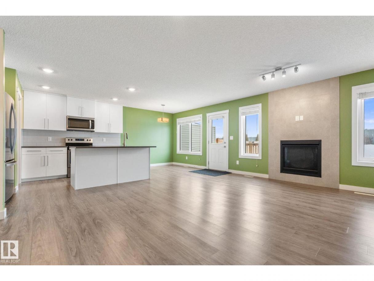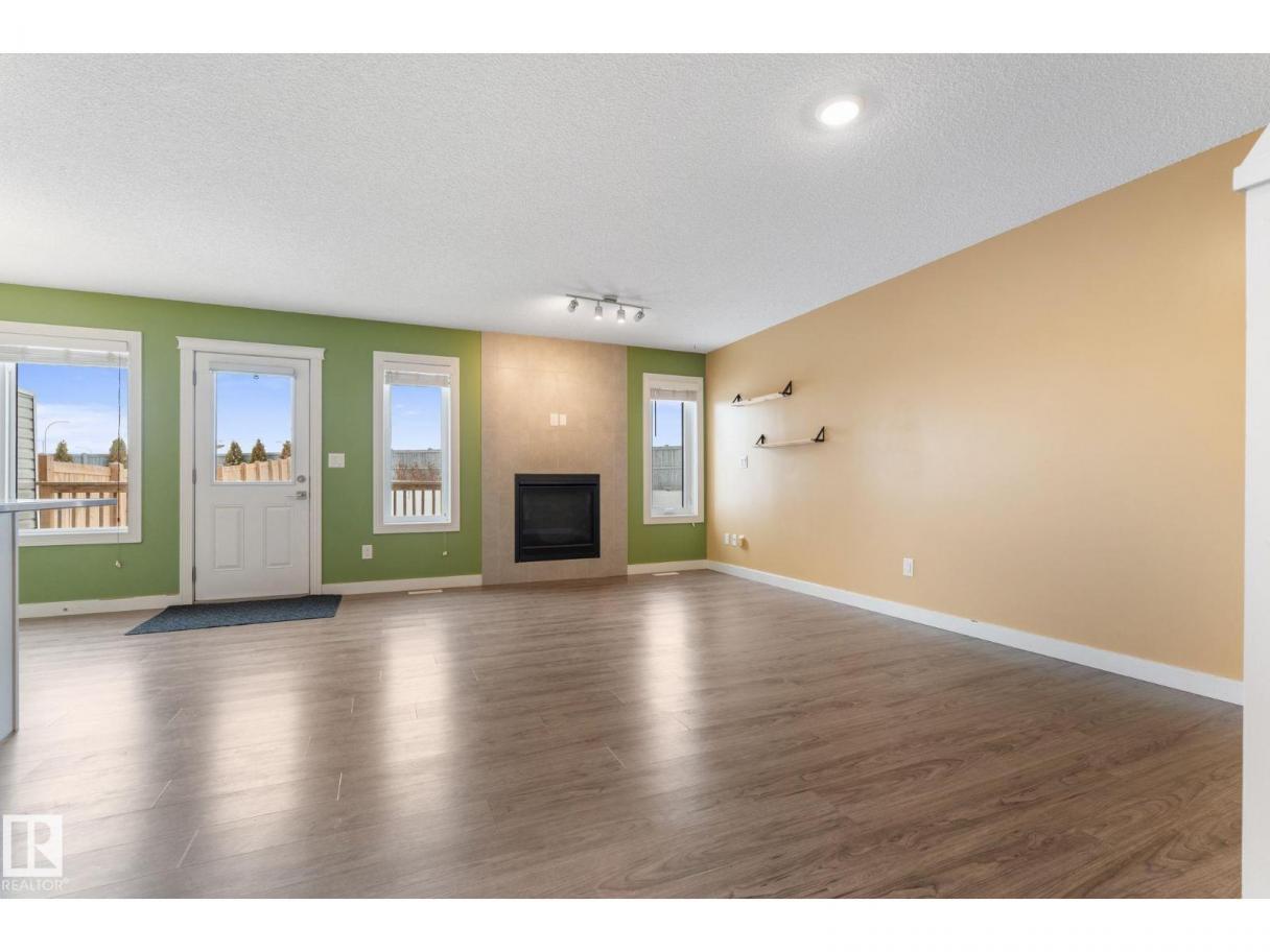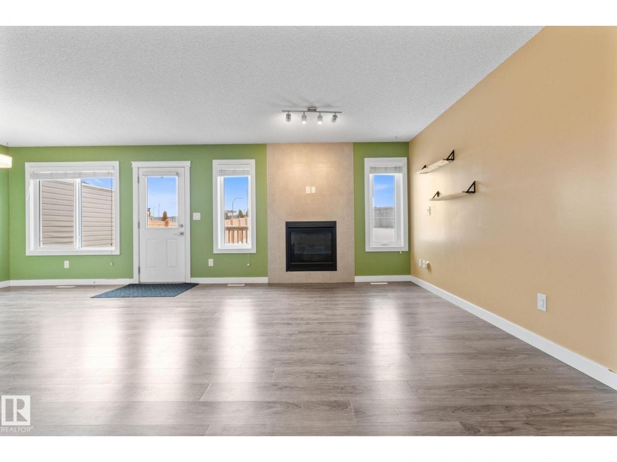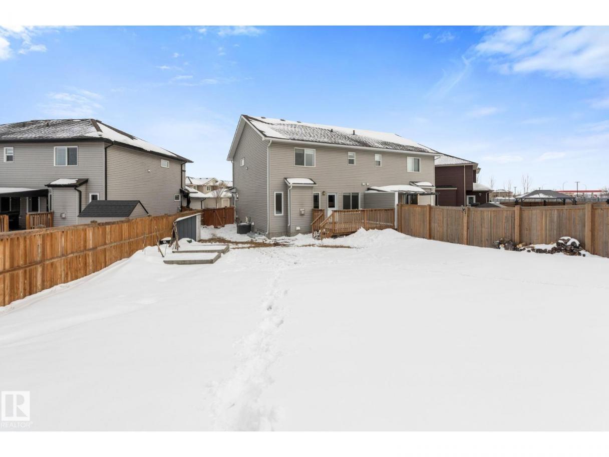 Welcome to this beautifully maintained half duplex sitting on a rare pie shaped lot with an absolutely massive backyard, which is rare for this neighbourhood! Inside offers over 1600 square feet of well designed living space. The open concept main floor connects the living room and kitchen seamlessly, highlighted by a tile gas fireplace that anchors the space. The kitchen features quartz countertops, soft close white cabinetry, and a convenient walkthrough pantry that connects directly to the garage for easy grocery drop offs. A two piece bathroom completes the main level.Upstairs you will find three bedrooms including a spacious primary suite with a four piece ensuite. The added bonus of upstairs laundry makes everyday living that much easier. Additional features include central air conditioning, a double attached garage, and a walking path directly behind the home. Located close to shopping and dining, this property offers both space and convenience in one smart package. (id:6769)