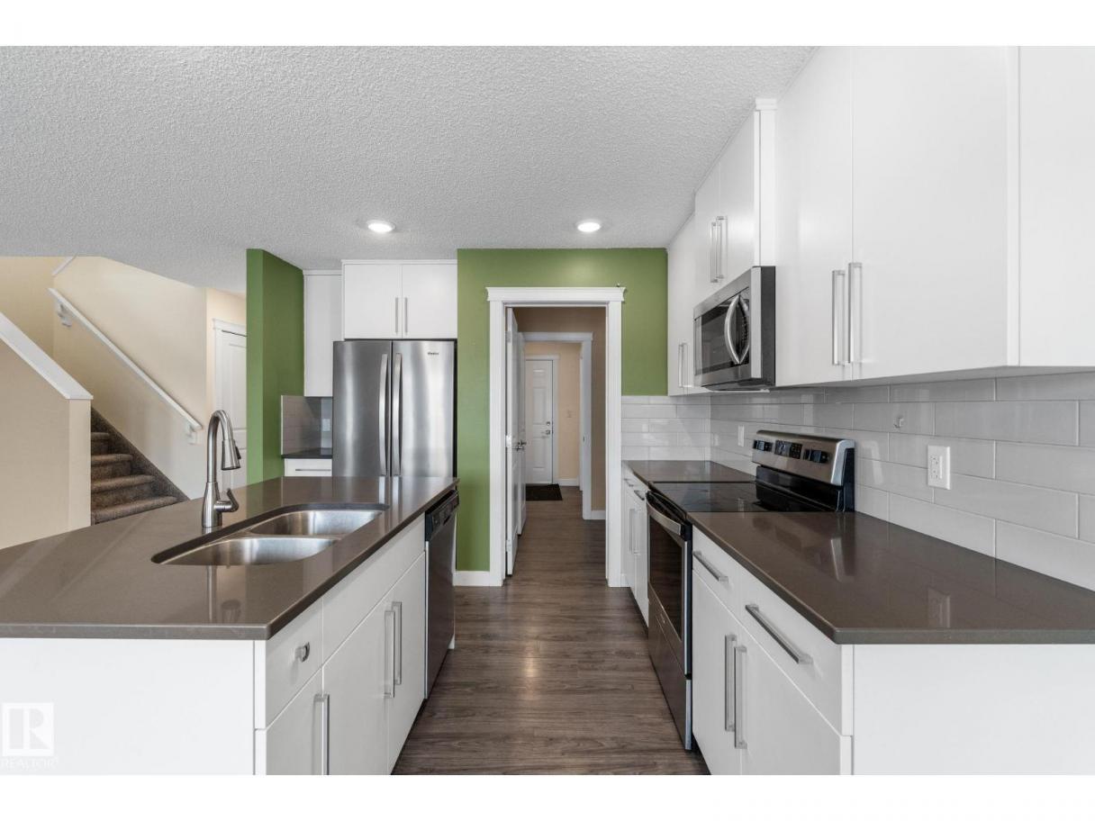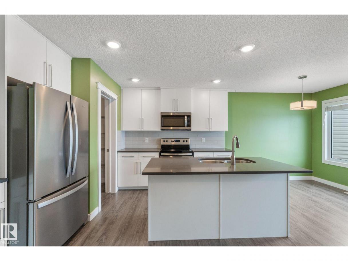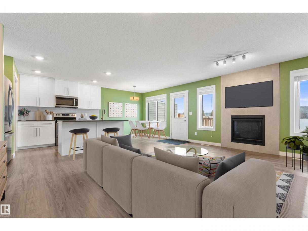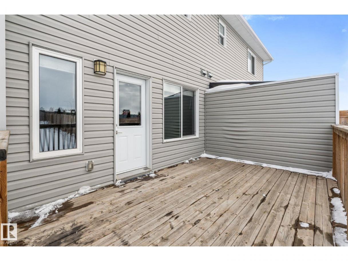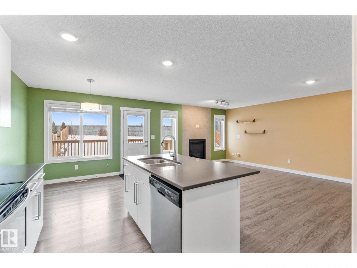 Welcome to this beautifully maintained half duplex sitting on a rare pie shaped lot with an absolutely massive backyard, which is rare for this neighbourhood! Inside offers over 1600 square feet of well designed living space. The open concept main floor connects the living room and kitchen seamlessly, highlighted by a tile gas fireplace that anchors the space. The kitchen features quartz countertops, soft close white cabinetry, and a convenient walkthrough pantry that connects directly to the garage for easy grocery drop offs. A two piece bathroom completes the main level.Upstairs you will find three bedrooms including a spacious primary suite with a four piece ensuite. The added bonus of upstairs laundry makes everyday living that much easier. Additional features include central air conditioning, a double attached garage, and a walking path directly behind the home. Located close to shopping and dining, this property offers both space and convenience in one smart package. (id:6769)