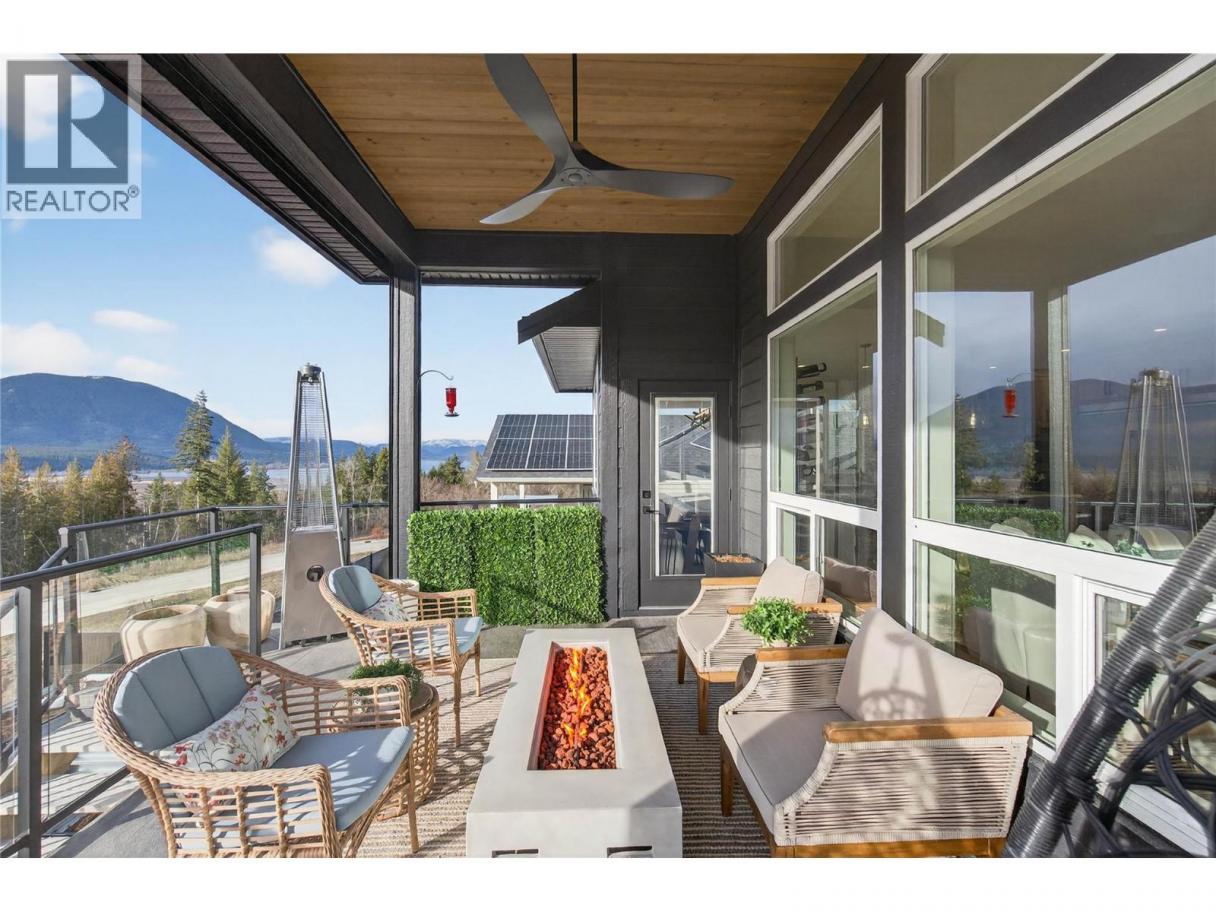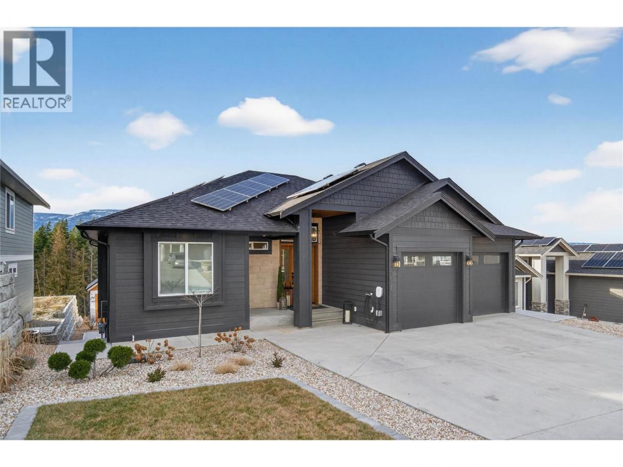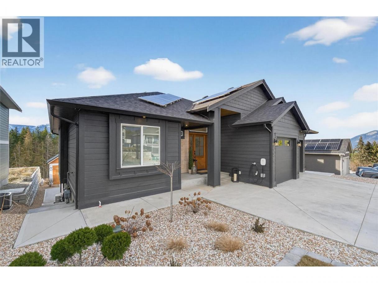 Elevated in one of Salmon Arm’s most desirable neighbourhoods, this custom five bedroom, four bathroom residence blends refined design with sweeping lake and mountain views. Fully landscaped and irrigated grounds, concrete pads with drainage, raised garden beds, a greenhouse, and a heated finished garage reflect thoughtful planning throughout. Inside, 11-foot ceilings and expansive windows frame panoramic views of Shuswap Lake. The Great Room flows into a gourmet kitchen anchored by a nine foot quartz island, professional appliances, and upgraded lighting. Open living and dining areas extend to upper and lower decks with natural gas outlets and an electronic patio screen, creating seamless indoor-outdoor living. The primary suite offers heated ensuite floors and direct deck access. On-demand hot water recirculation, three stage water filtration (interior and garden), enhanced sound separation, and upgraded lighting ensure comfort and efficiency. The walkout lower level includes a legal income suite netting $2,500 per month, with separate heat pump and quality appliances, abundant storage, and a custom 10 foot x 10 foot shed with nine foot ceilings and a black metal roof. A 12KW solar system (24 & 500W panels with Enphase micro-inverters), 8500W backup generator, 50-amp EV charging, dual high-efficiency climate systems, and smart controls deliver energy independence. Spa/pool infrastructure and a galvanized powder-coated metal fence complete this as move-in-ready. (id:6769)