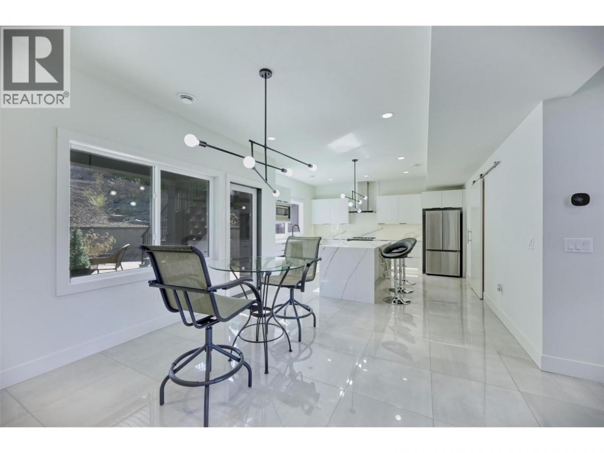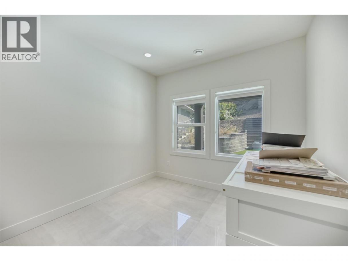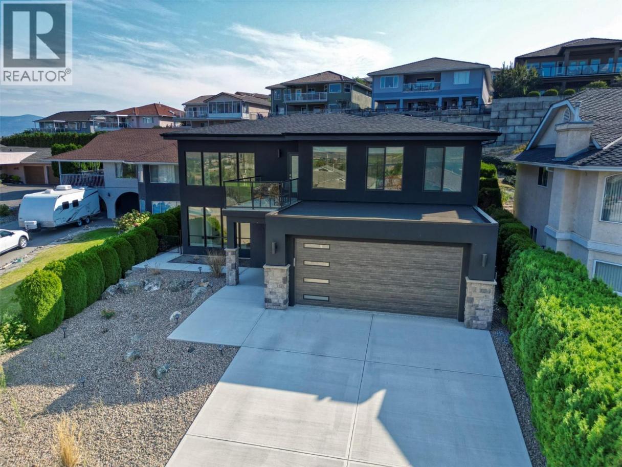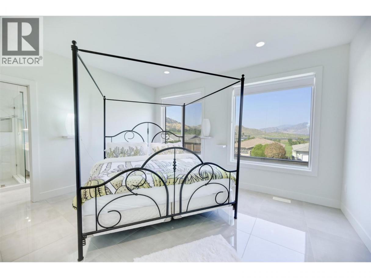 MODERN, NEWLY BUILT HOME STEPS TO THE LARGEST GOLF COURSE IN SUNNY OSOYOOS. Like brand new, still under the New Home Warranty, this beautiful contemporary home offers a low-maintenance yard and thoughtful design throughout. The open-concept gourmet kitchen is ideal for any cooking enthusiast, featuring a large island and direct views of the covered back patio, perfect for outdoor dining and entertaining. The central livingroom impresses with its soaring ceiling and striking floating staircase, filling the space with natural light from expansive windows that frame picturesque views of the mountains. Durable tile flooring extends throughout the home, enhancing its clean and contemporary feel. The upper level showcases the luxurious primary suite, complete with a spa-inspired ensuite offering a spacious walk-in shower and a separate soaking tub—perfect for relaxation after a round of golf or a day at the lake. This floor also includes a second bedroom, a convenient laundry area, and a versatile loft space that makes an ideal movie room, gym or a cozy lounge. Step out onto the upper front deck to enjoy the views and the sunrise. A third bedroom is located on the main floor, providing flexible options for guests or a home office. With very little use since new, this pristine home is move-in ready and waiting for you! (id:6769)
