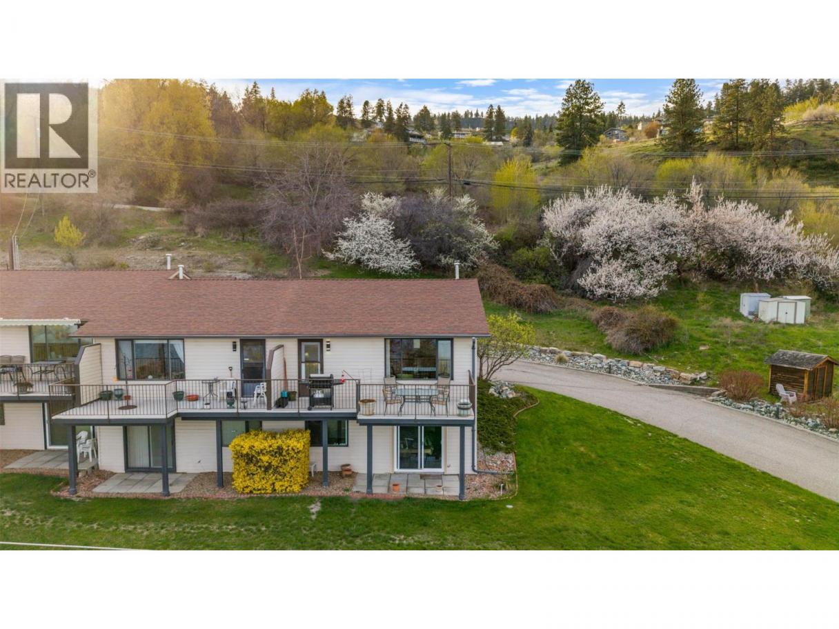 Welcome to easy living in this beautifully updated 2-bedroom, 2-bathroom end-unit townhome in the desirable 55+ community of Okanagan Ridge. Perfectly situated just a short walk from Beach Avenue, Okanagan Lake, restaurants, and scenic walking paths—this is the lifestyle you’ve been waiting for. The main level offers a bright, open-concept layout featuring a cozy gas fireplace in the living room, a spacious dining area, and a stylishly updated kitchen. Durable laminate flooring flows throughout the main floor, adding warmth and continuity. Downstairs, you’ll find the primary bedroom and second bedroom—both offering gorgeous lake views—along with an updated full bathroom and a convenient laundry room. Step out onto your private deck and enjoy sweeping views of Okanagan Lake and the surrounding mountains—an ideal spot to relax or entertain. Additional features include a covered carport, a peaceful, and well-maintained community setting, and strata consideration for a small support dog or indoor cat. If available, there is also an option to rent a second parking spot for a monthly fee. Enjoy the best of Peachland living in this move-in-ready home that combines comfort, convenience, and spectacular scenery. (id:6769)