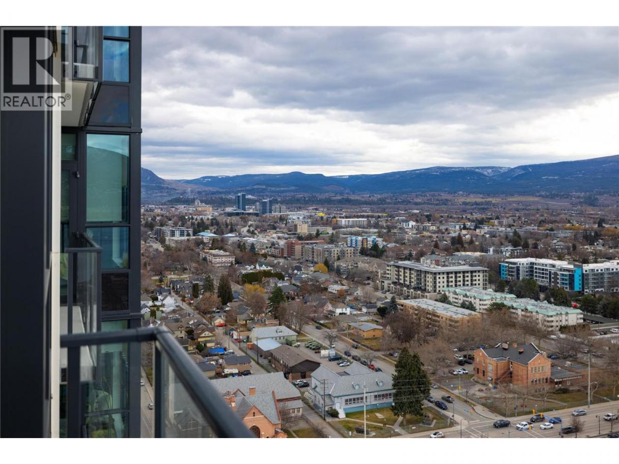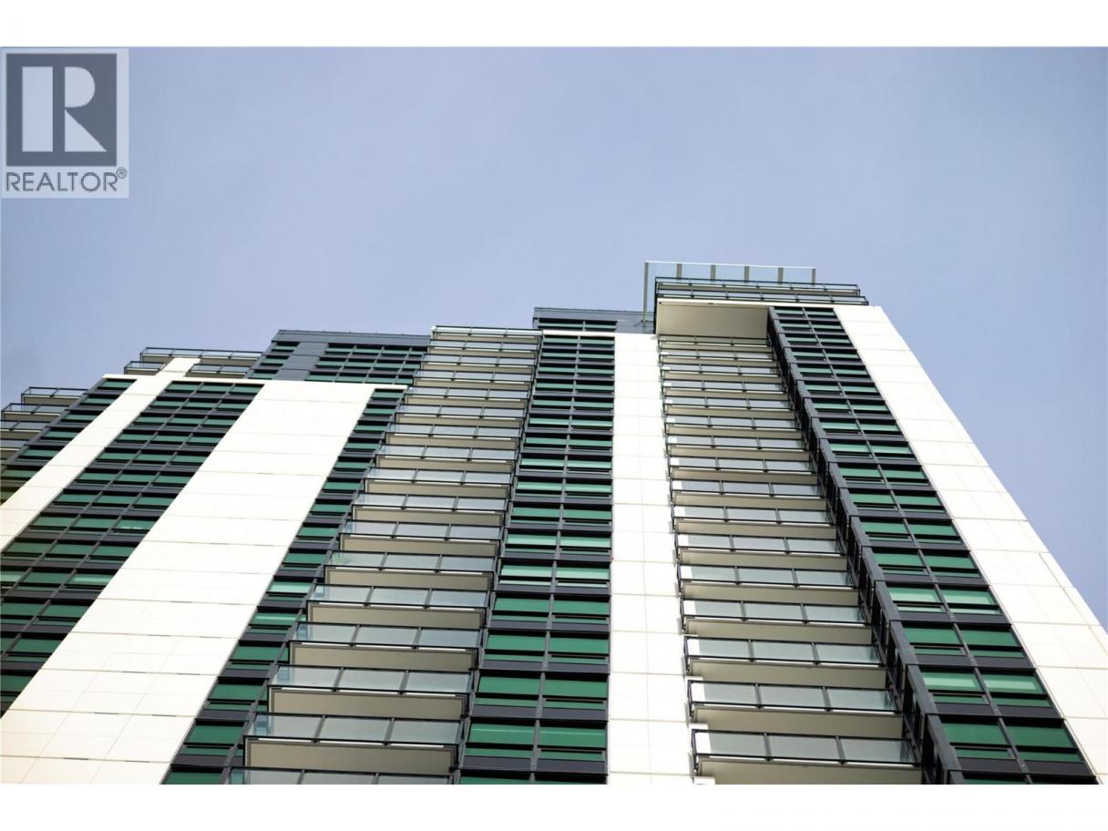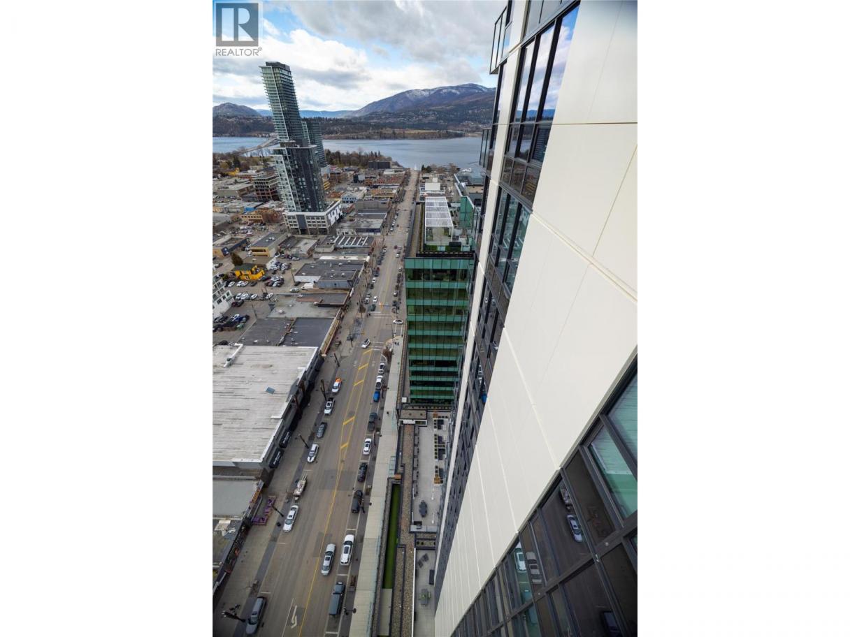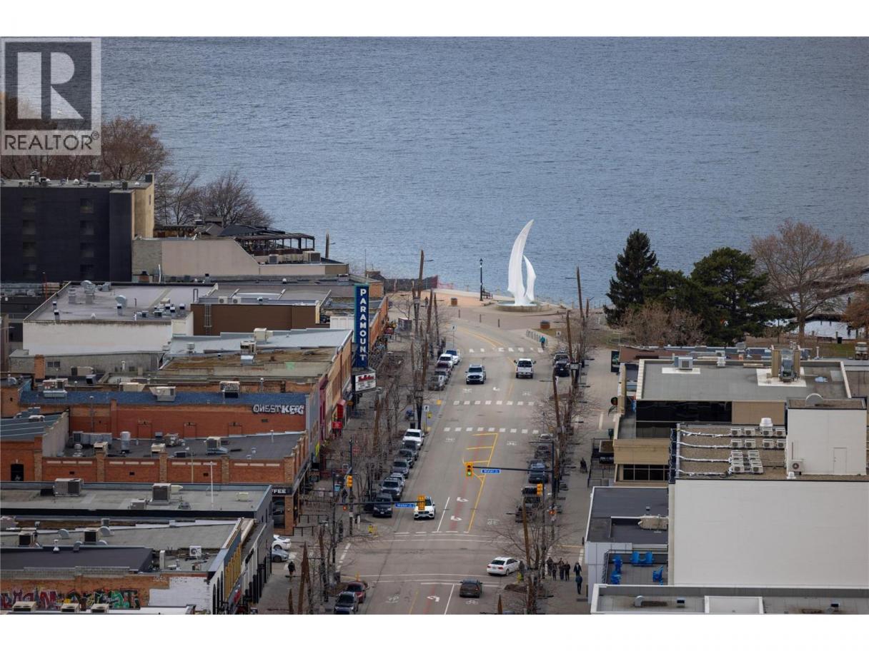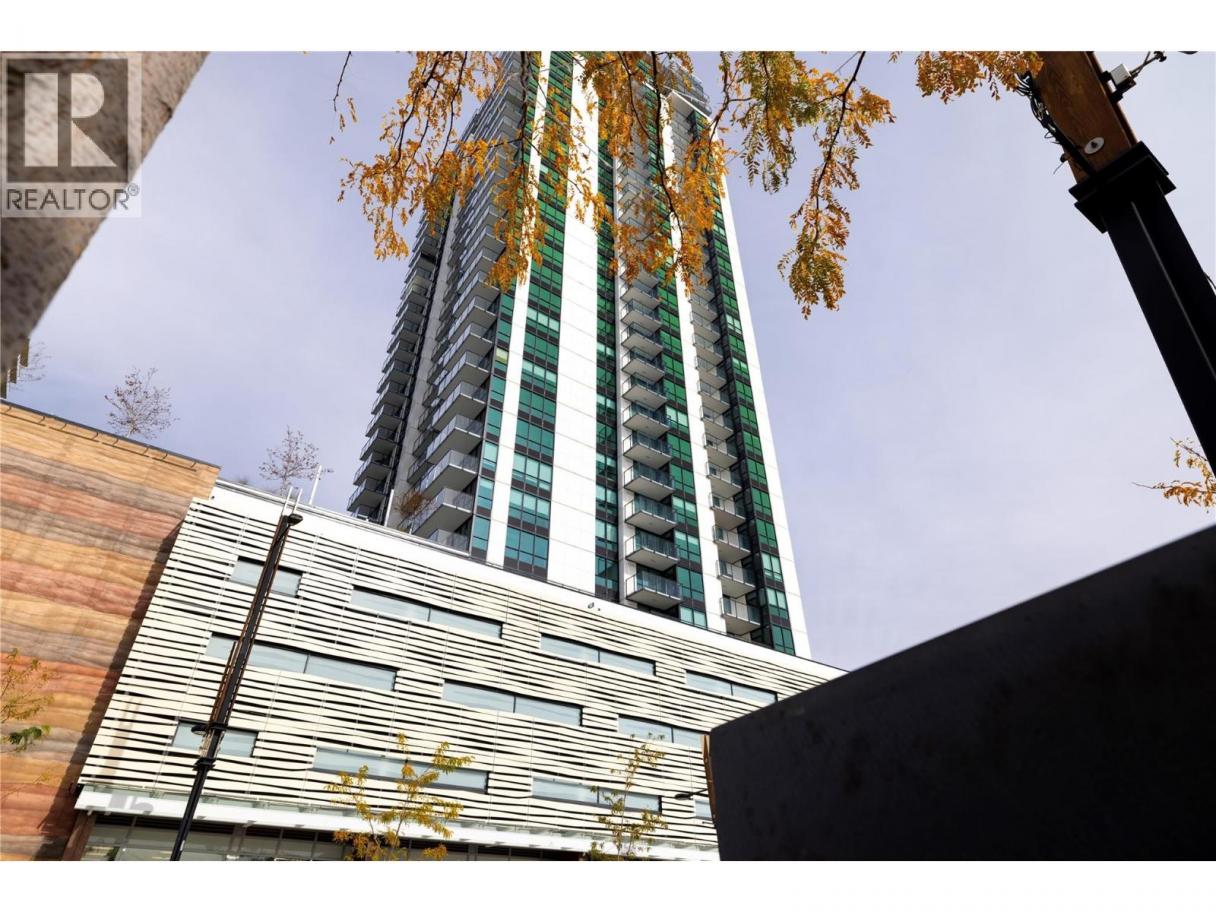 Experience elevated urban living from the 25th floor of The Bertram in downtown Kelowna. This one-bedroom plus den residence offers a bright, open-concept layout with large windows, built-in roller blinds, and a glass-railed balcony. Enjoy south and southwest views of Okanagan Lake, the mountains and the city. The kitchen features a tile backsplash, stainless steel appliances, and a dedicated coffee station with floor-to-ceiling storage and an outlet for your favourite brewer. The versatile floor plan includes a den for a home office, dual bathroom access from the hallway and primary bedroom, and in-unit laundry. This unit comes with one parking space and a flexible pet policy allowing up to two pets with no size or height restrictions. Beyond the suite, The Bertram provides a comprehensive lifestyle through its diverse building amenities. Relax at the rooftop pool and hot tub or stay active in the modern fitness center. For those working from home, the building features dedicated co-working spaces on both the top and ground levels. Outdoor enthusiasts will appreciate the 6,000-square-foot sixth-floor podium, which includes a dog run, community gardens, and space for BBQing and bocce. Situated in a prime downtown location, this concrete tower is surrounded by local dining, retail, and transit. With quick possession possible, you can move into this amenity-rich community immediately. GST paid. Furnishings are not included but are available for separate purchase. (id:6769)