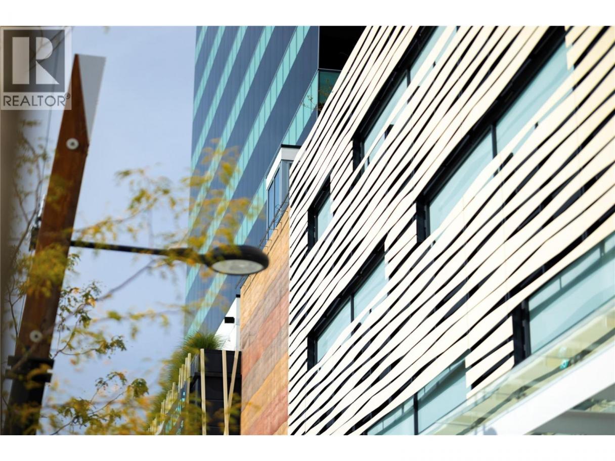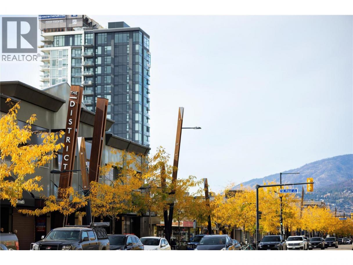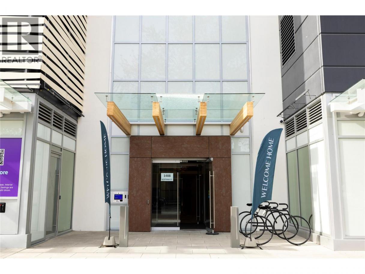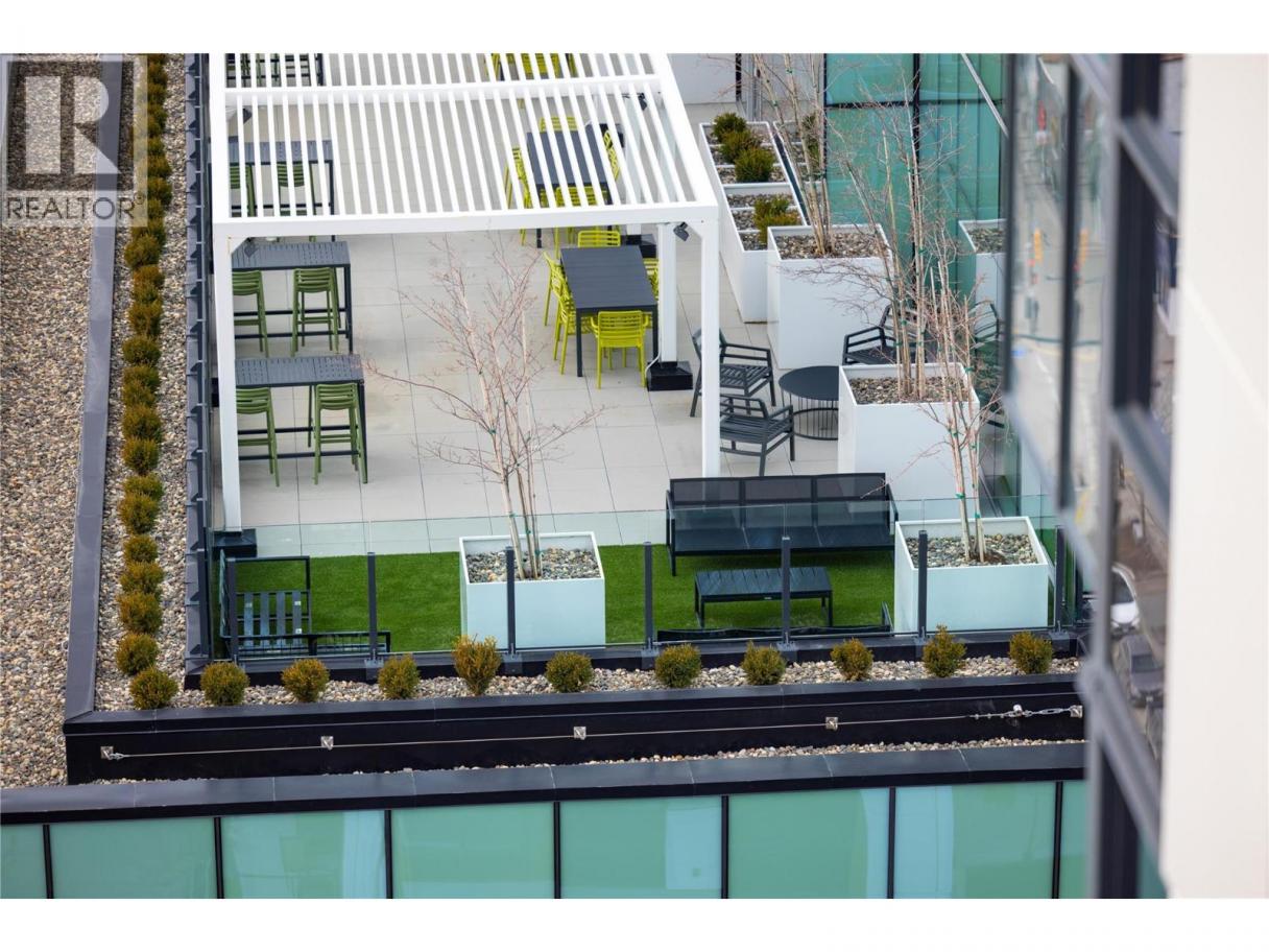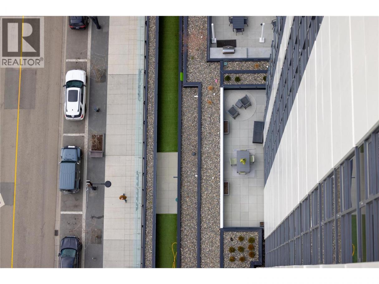 Experience elevated urban living from the 25th floor of The Bertram in downtown Kelowna. This one-bedroom plus den residence offers a bright, open-concept layout with large windows, built-in roller blinds, and a glass-railed balcony. Enjoy south and southwest views of Okanagan Lake, the mountains and the city. The kitchen features a tile backsplash, stainless steel appliances, and a dedicated coffee station with floor-to-ceiling storage and an outlet for your favourite brewer. The versatile floor plan includes a den for a home office, dual bathroom access from the hallway and primary bedroom, and in-unit laundry. This unit comes with one parking space and a flexible pet policy allowing up to two pets with no size or height restrictions. Beyond the suite, The Bertram provides a comprehensive lifestyle through its diverse building amenities. Relax at the rooftop pool and hot tub or stay active in the modern fitness center. For those working from home, the building features dedicated co-working spaces on both the top and ground levels. Outdoor enthusiasts will appreciate the 6,000-square-foot sixth-floor podium, which includes a dog run, community gardens, and space for BBQing and bocce. Situated in a prime downtown location, this concrete tower is surrounded by local dining, retail, and transit. With quick possession possible, you can move into this amenity-rich community immediately. GST paid. Furnishings are not included but are available for separate purchase. (id:6769)