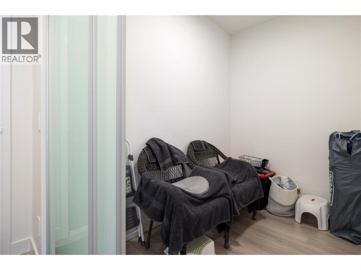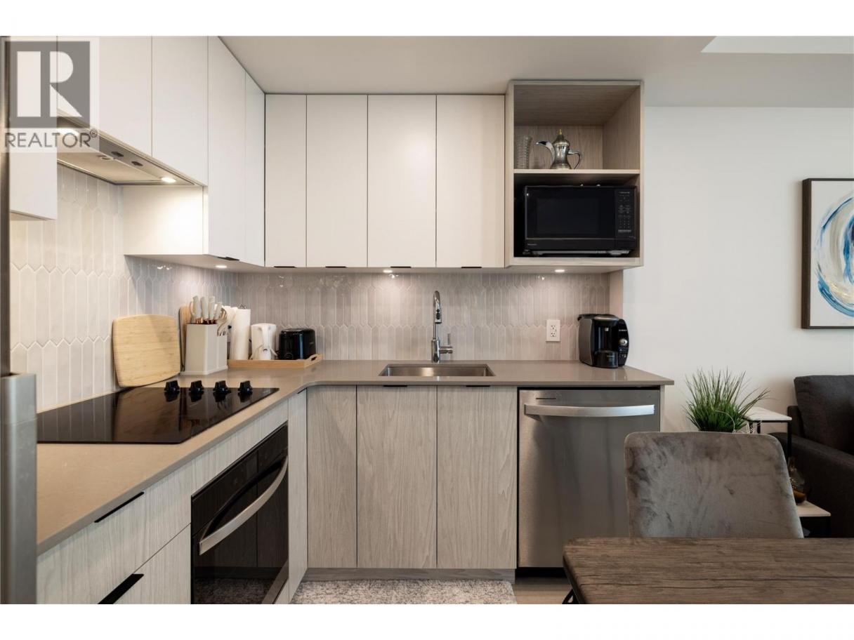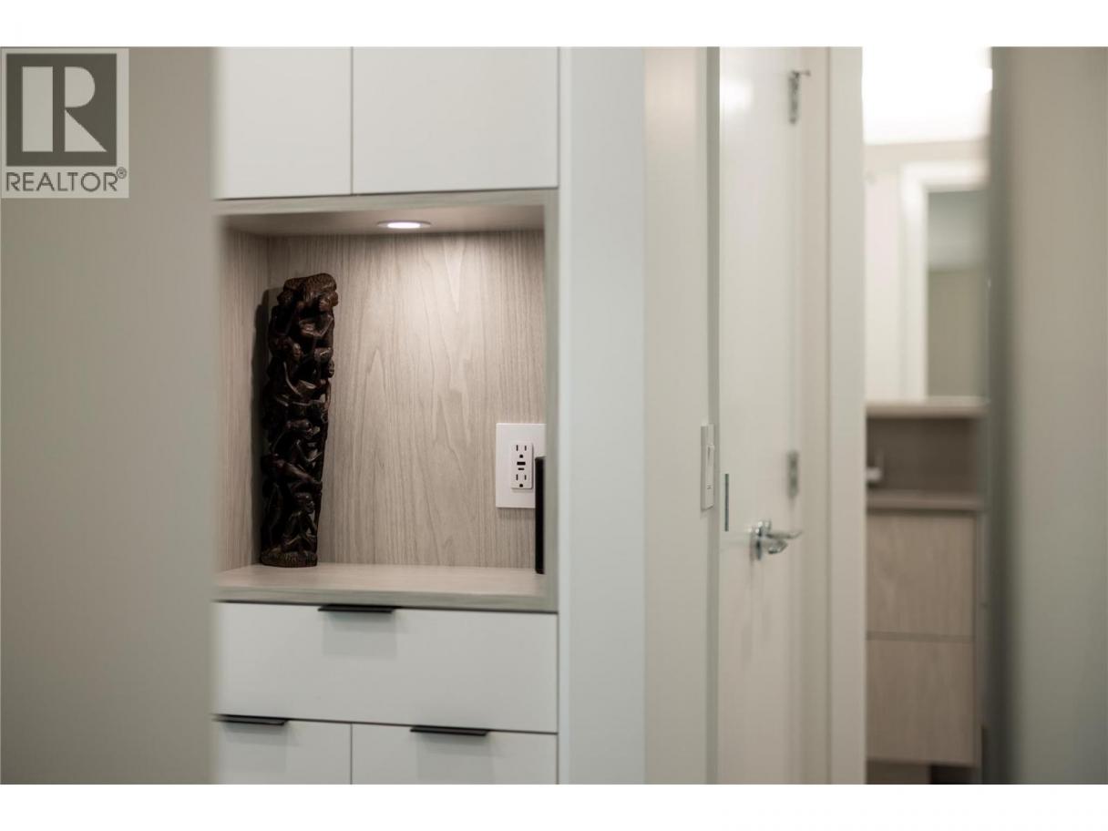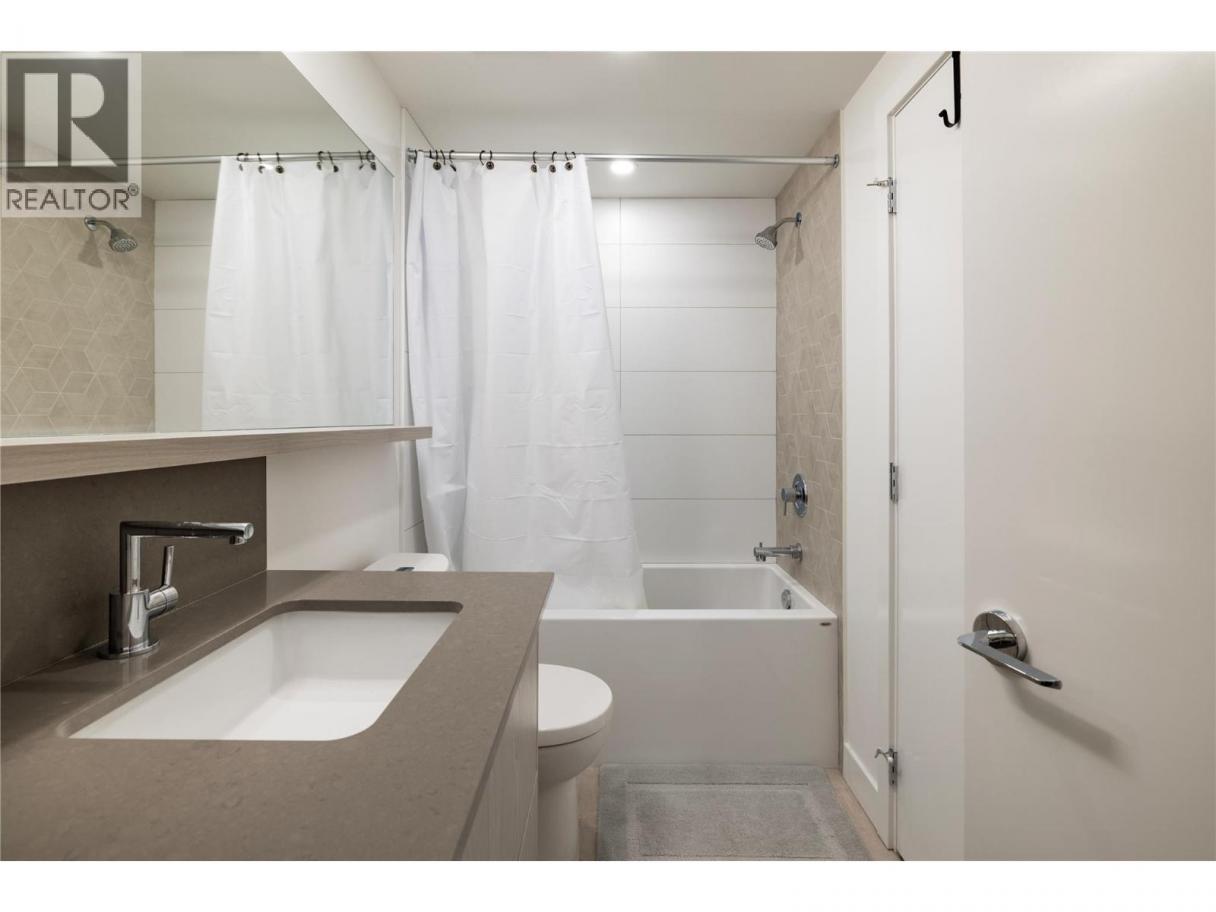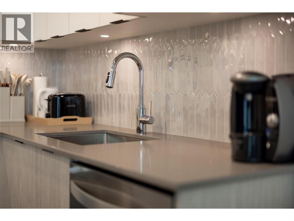 Experience elevated urban living from the 25th floor of The Bertram in downtown Kelowna. This one-bedroom plus den residence offers a bright, open-concept layout with large windows, built-in roller blinds, and a glass-railed balcony. Enjoy south and southwest views of Okanagan Lake, the mountains and the city. The kitchen features a tile backsplash, stainless steel appliances, and a dedicated coffee station with floor-to-ceiling storage and an outlet for your favourite brewer. The versatile floor plan includes a den for a home office, dual bathroom access from the hallway and primary bedroom, and in-unit laundry. This unit comes with one parking space and a flexible pet policy allowing up to two pets with no size or height restrictions. Beyond the suite, The Bertram provides a comprehensive lifestyle through its diverse building amenities. Relax at the rooftop pool and hot tub or stay active in the modern fitness center. For those working from home, the building features dedicated co-working spaces on both the top and ground levels. Outdoor enthusiasts will appreciate the 6,000-square-foot sixth-floor podium, which includes a dog run, community gardens, and space for BBQing and bocce. Situated in a prime downtown location, this concrete tower is surrounded by local dining, retail, and transit. With quick possession possible, you can move into this amenity-rich community immediately. GST paid. Furnishings are not included but are available for separate purchase. (id:6769)