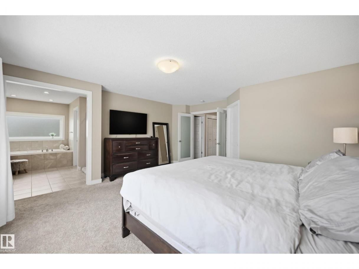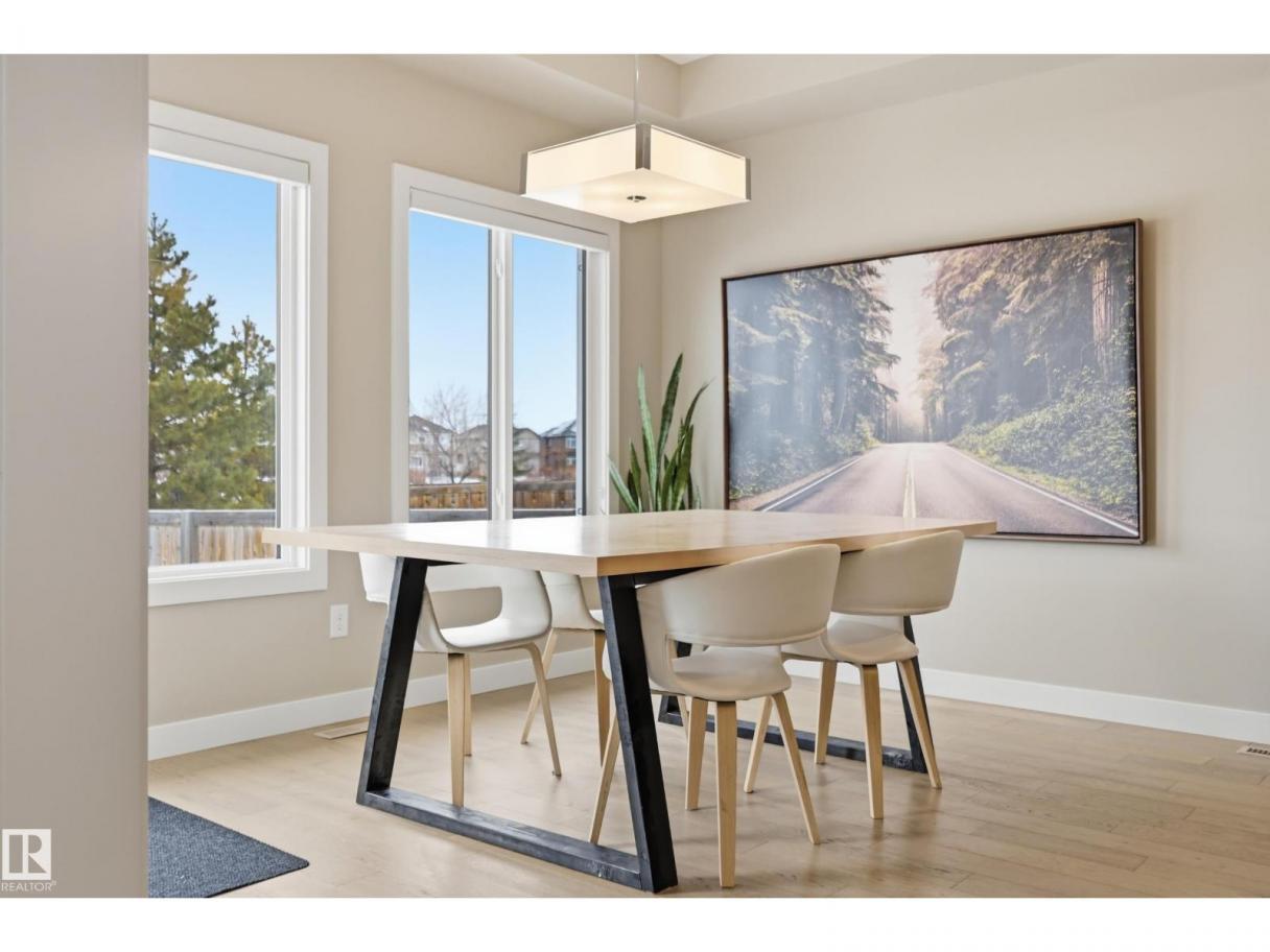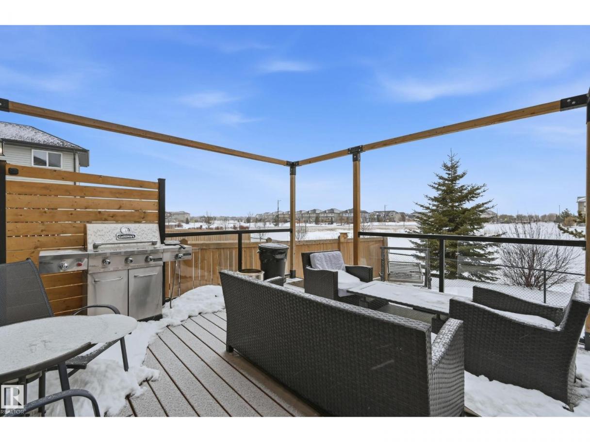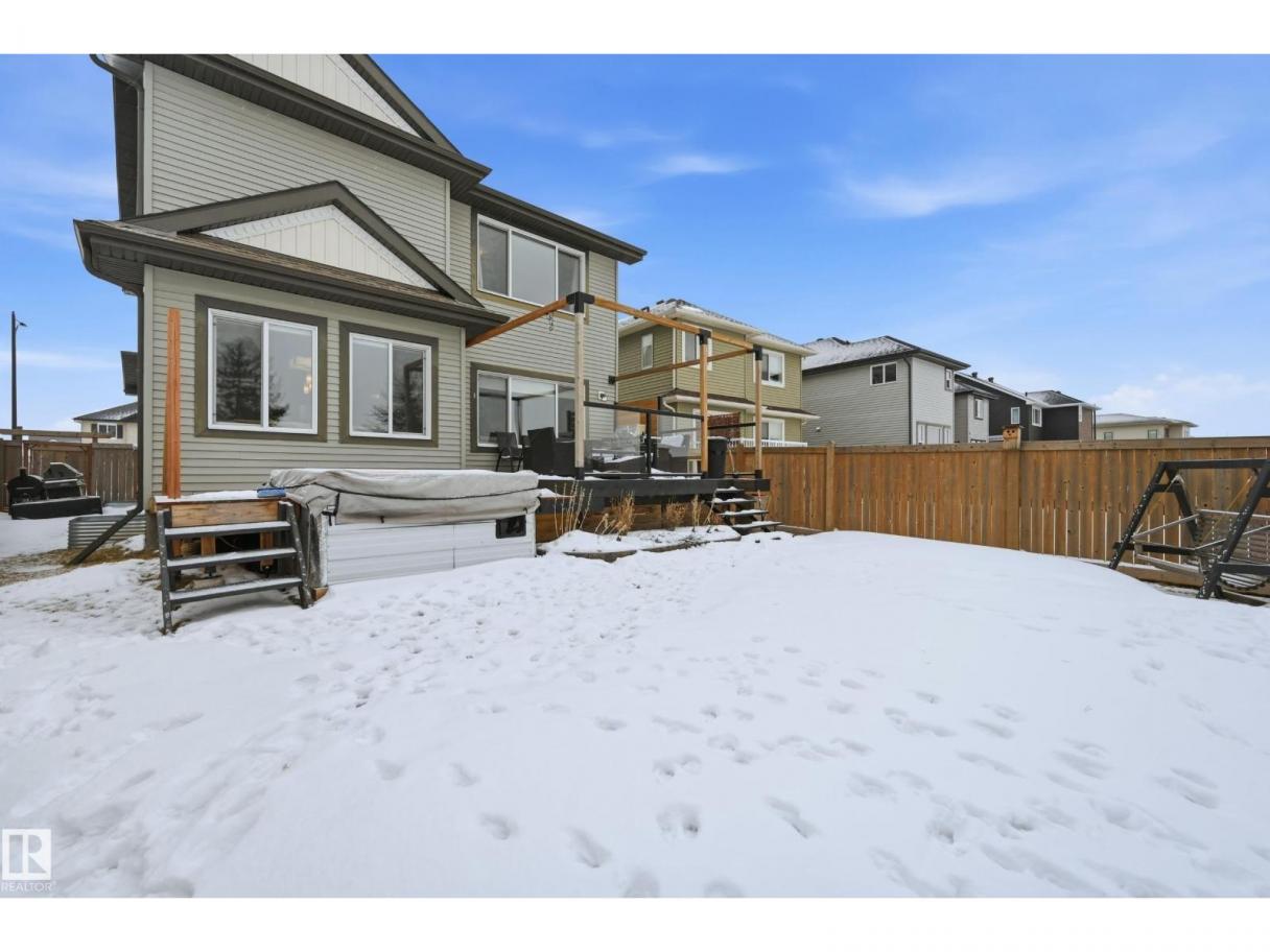 POND-BACKING 2,350 SQ FT HOME IN DESIRABLE DANSEREAU MEADOWS, BEAUMONT. This beautiful Pacesetter-built home offers a well-designed layout with a double attached garage. The main floor features engineered hardwood throughout, a bright open dining area with large windows—ideal as a formal dining space or home office/den, and convenient main floor laundry. The kitchen includes granite countertops, a pantry, and an elegant coffered ceiling, flowing into the eating area at the back of the home. Relax in the inviting living room with a cozy gas fireplace. Upstairs, enjoy a spacious bonus room with vaulted ceilings, a wide hallway, and a huge primary retreat with French doors, walk-in closet, and spa-like 5-piece ensuite featuring a soaker tub, stand-up shower, dual sinks, and built-in storage. Two additional generous bedrooms and a 4-piece bath complete the upper level. Step outside to a large backyard backing the pond, complete with a glass-railed deck for enjoying the view. (id:6769)