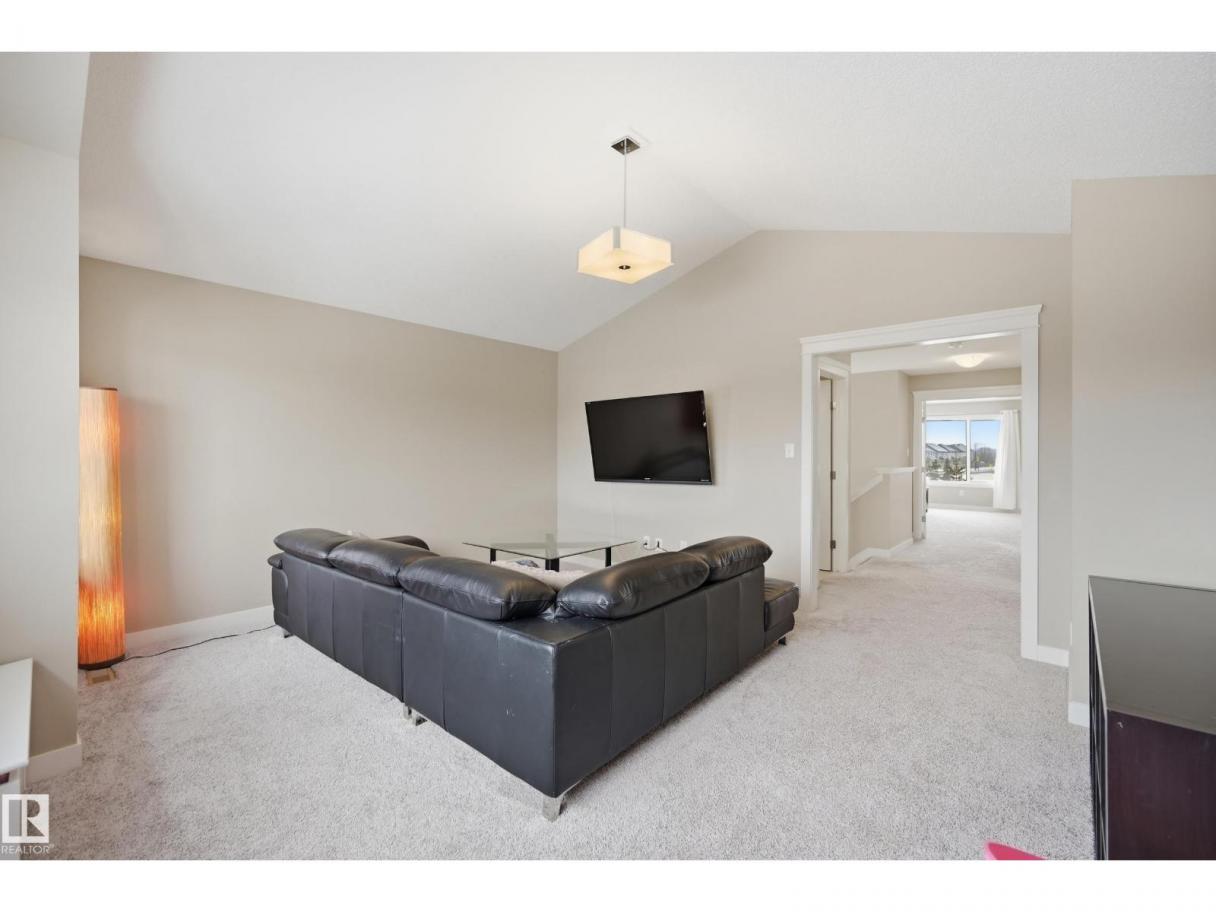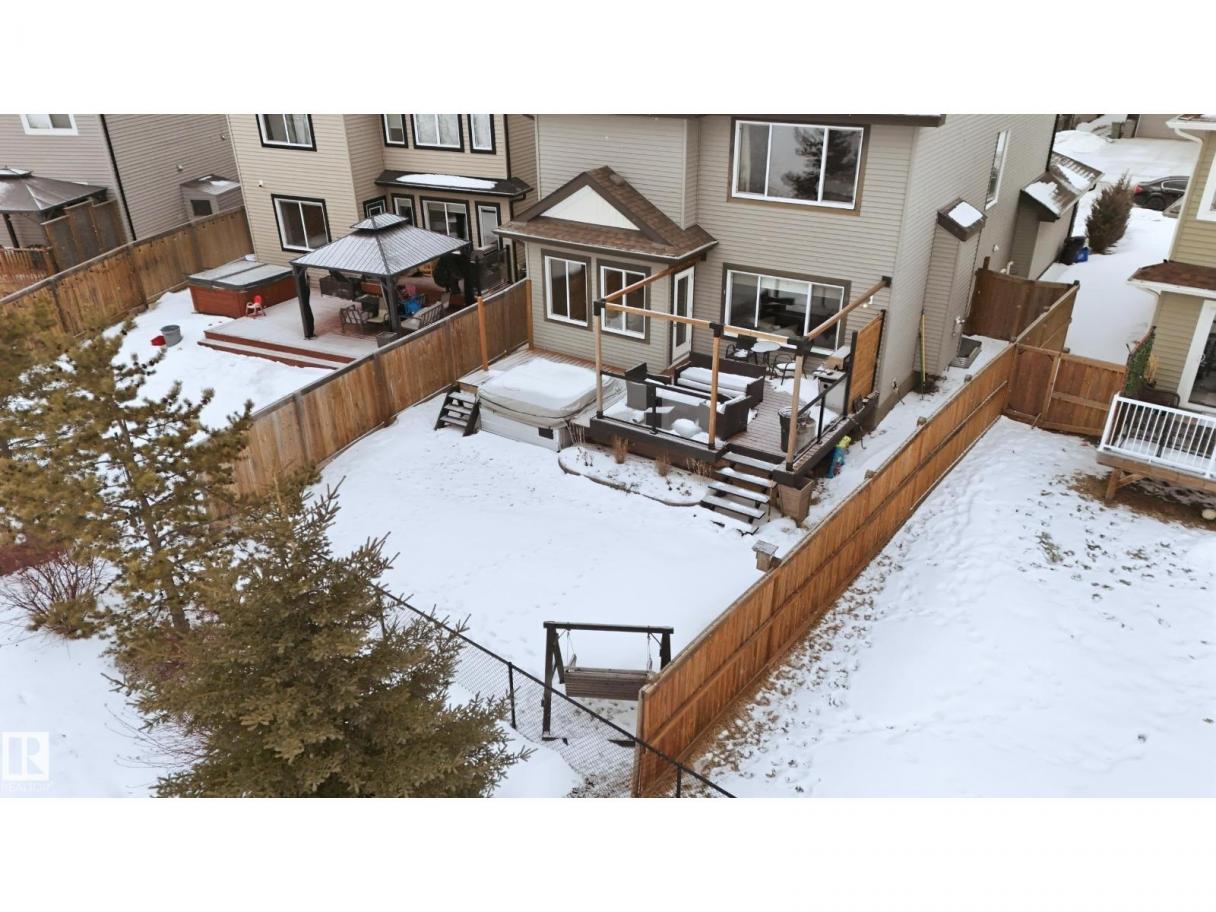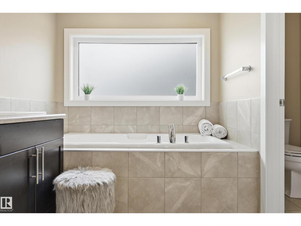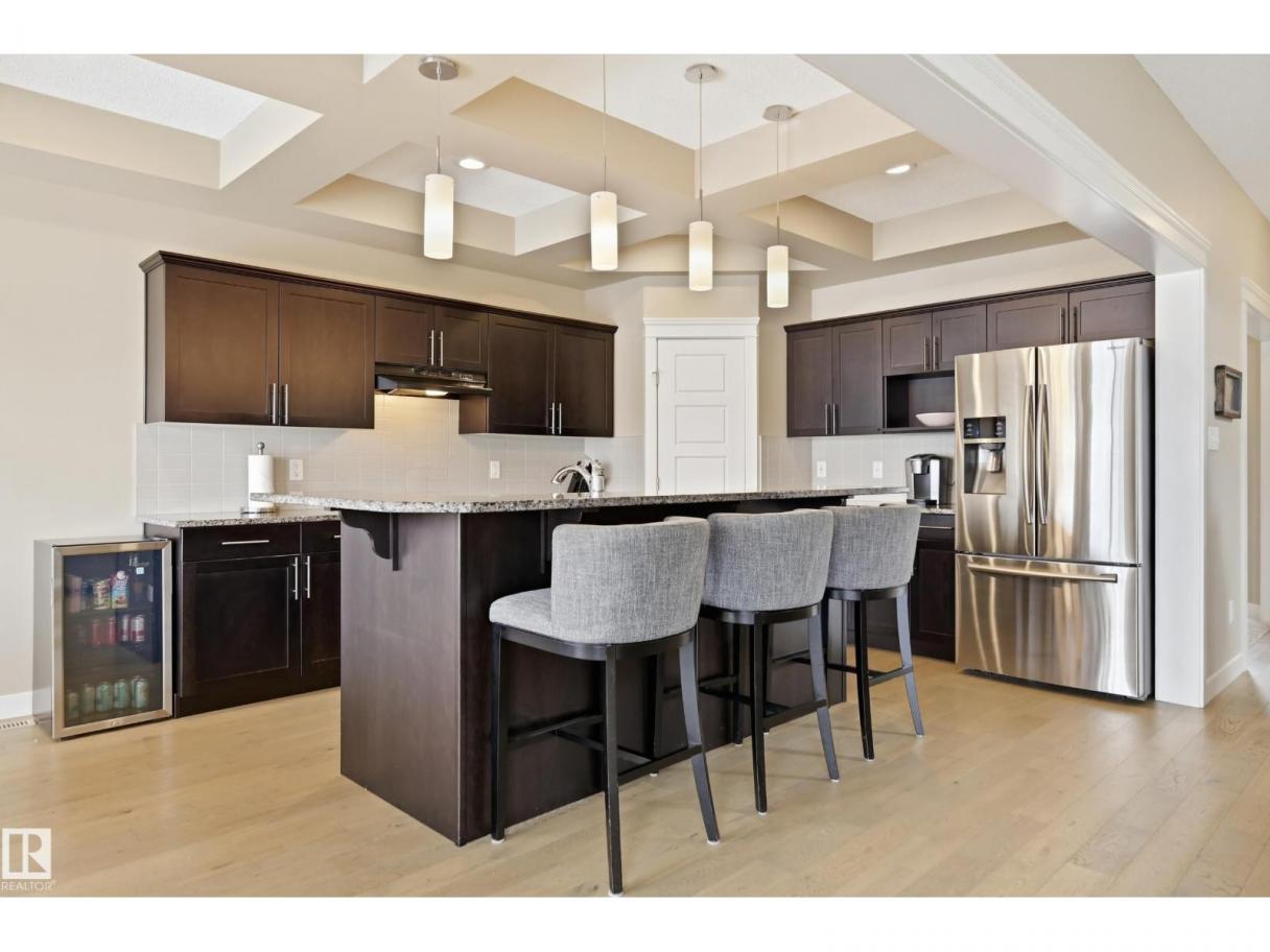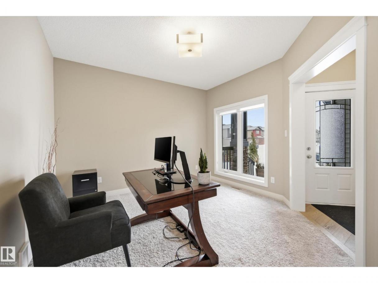 POND-BACKING 2,350 SQ FT HOME IN DESIRABLE DANSEREAU MEADOWS, BEAUMONT. This beautiful Pacesetter-built home offers a well-designed layout with a double attached garage. The main floor features engineered hardwood throughout, a bright open dining area with large windows—ideal as a formal dining space or home office/den, and convenient main floor laundry. The kitchen includes granite countertops, a pantry, and an elegant coffered ceiling, flowing into the eating area at the back of the home. Relax in the inviting living room with a cozy gas fireplace. Upstairs, enjoy a spacious bonus room with vaulted ceilings, a wide hallway, and a huge primary retreat with French doors, walk-in closet, and spa-like 5-piece ensuite featuring a soaker tub, stand-up shower, dual sinks, and built-in storage. Two additional generous bedrooms and a 4-piece bath complete the upper level. Step outside to a large backyard backing the pond, complete with a glass-railed deck for enjoying the view. (id:6769)