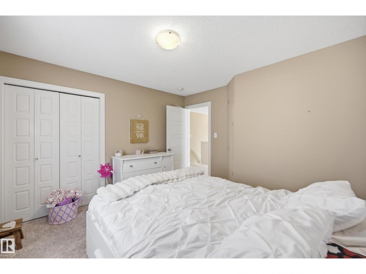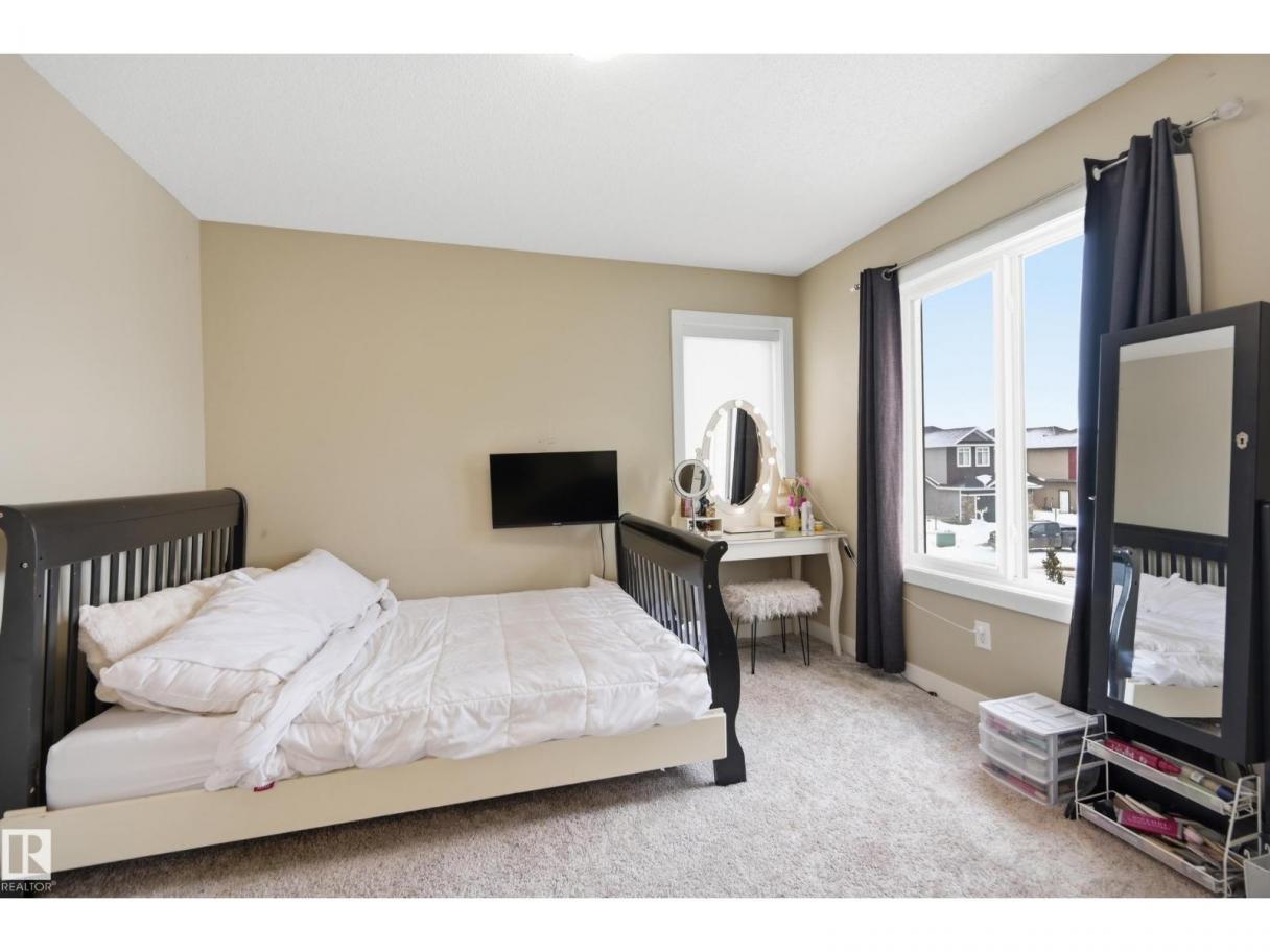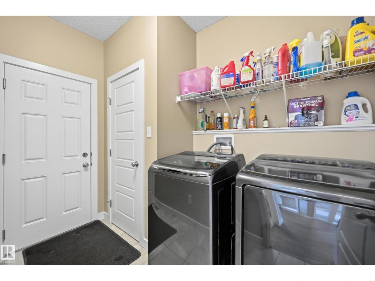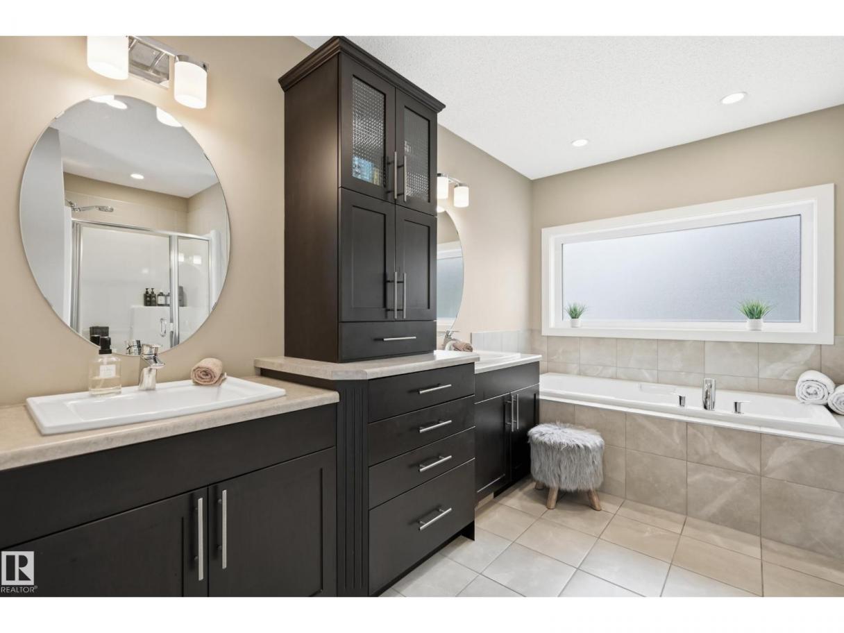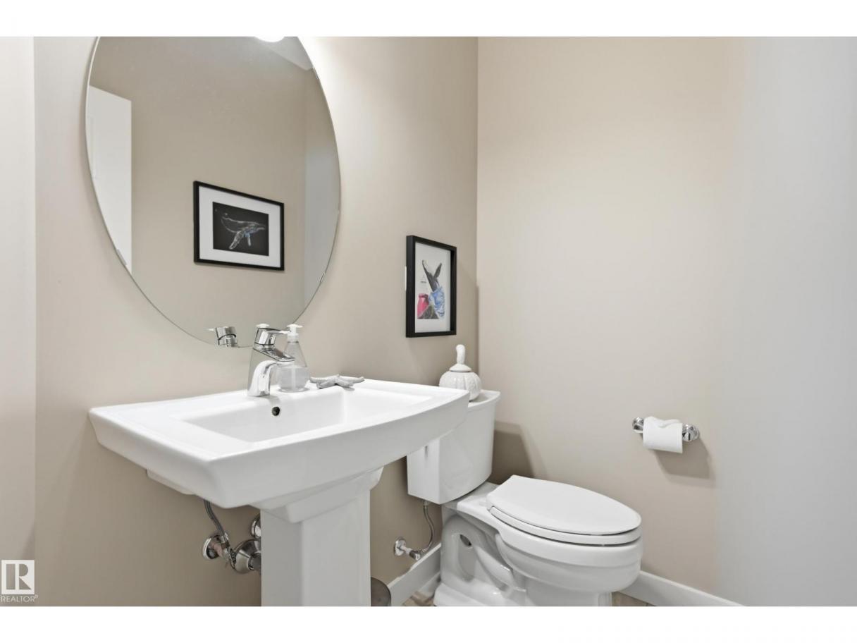 POND-BACKING 2,350 SQ FT HOME IN DESIRABLE DANSEREAU MEADOWS, BEAUMONT. This beautiful Pacesetter-built home offers a well-designed layout with a double attached garage. The main floor features engineered hardwood throughout, a bright open dining area with large windows—ideal as a formal dining space or home office/den, and convenient main floor laundry. The kitchen includes granite countertops, a pantry, and an elegant coffered ceiling, flowing into the eating area at the back of the home. Relax in the inviting living room with a cozy gas fireplace. Upstairs, enjoy a spacious bonus room with vaulted ceilings, a wide hallway, and a huge primary retreat with French doors, walk-in closet, and spa-like 5-piece ensuite featuring a soaker tub, stand-up shower, dual sinks, and built-in storage. Two additional generous bedrooms and a 4-piece bath complete the upper level. Step outside to a large backyard backing the pond, complete with a glass-railed deck for enjoying the view. (id:6769)