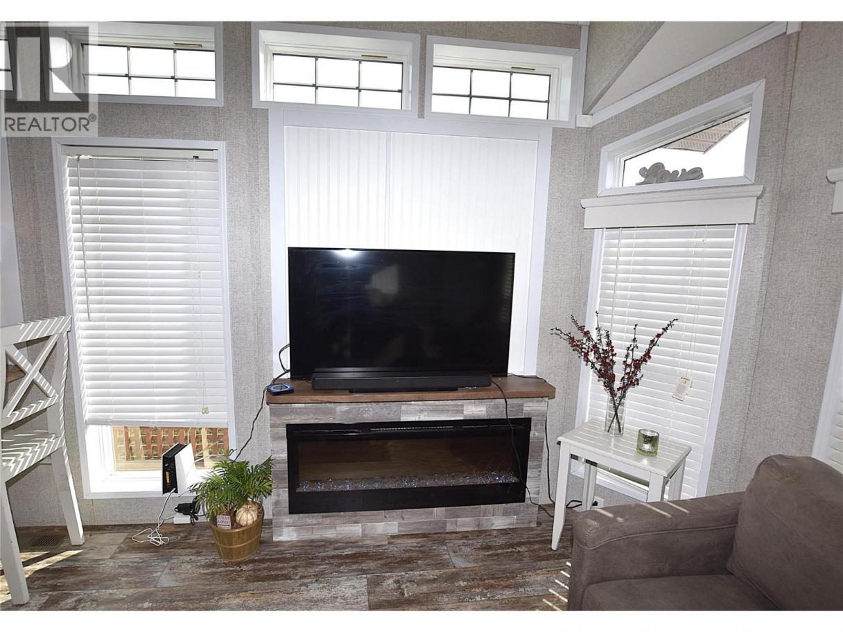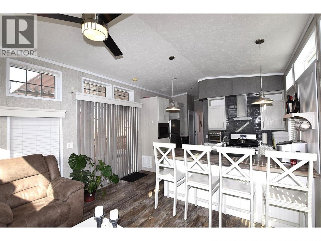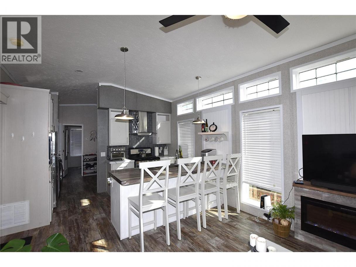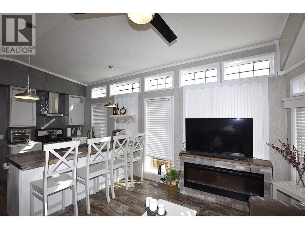 Welcome to #5–65 Antoine Road, a beautifully maintained 8-year-old Park Model home in Willow Lake Side Homes MHP—just 10 minutes from Vernon and less than 5 minutes to the golf course. This bright and inviting home features an open-concept main living area with vaulted ceilings and an abundance of windows, filling the space with natural light. The kitchen is thoughtfully designed with a large island, farmhouse-style sink, and stainless steel appliances—including a dishwasher—making it both stylish and functional. The living room offers a charming bay window and a cozy electric fireplace, perfect for adding warmth and ambiance on cooler evenings. The bedroom is well-appointed with two closets featuring built-in drawers, plus additional built-in storage above the bed for maximum organization. Step outside to enjoy the spacious 9' x 22' covered deck—ideal for relaxing or entertaining throughout the spring, summer, and fall. The fully fenced yard provides privacy, ample gardening space, and includes a 10' x 8' shed for extra storage. Additional features include: Soft water system Carport plus two additional parking spots Access to Okanagan Lake The pad rental is an affordable $400/month and includes water, sewer, garbage, road maintenance, and lake access. An excellent condo alternative for anyone looking to enjoy affordable living in the Okanagan, close to the lake and all amenities. (id:6769)