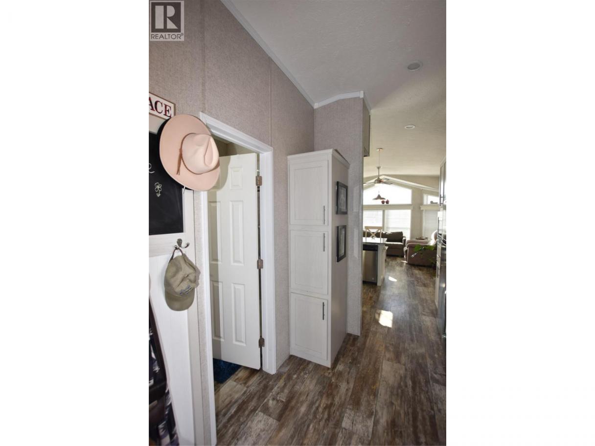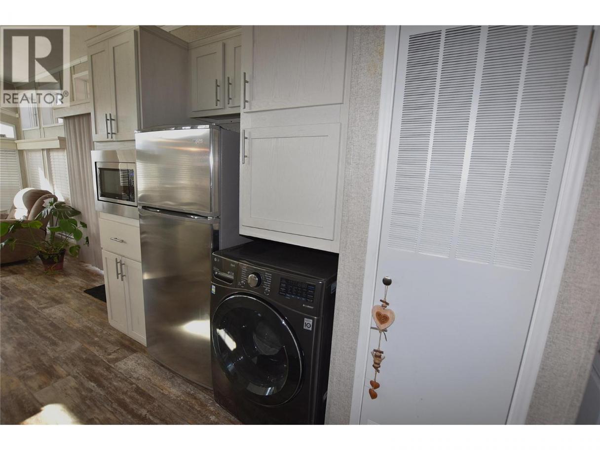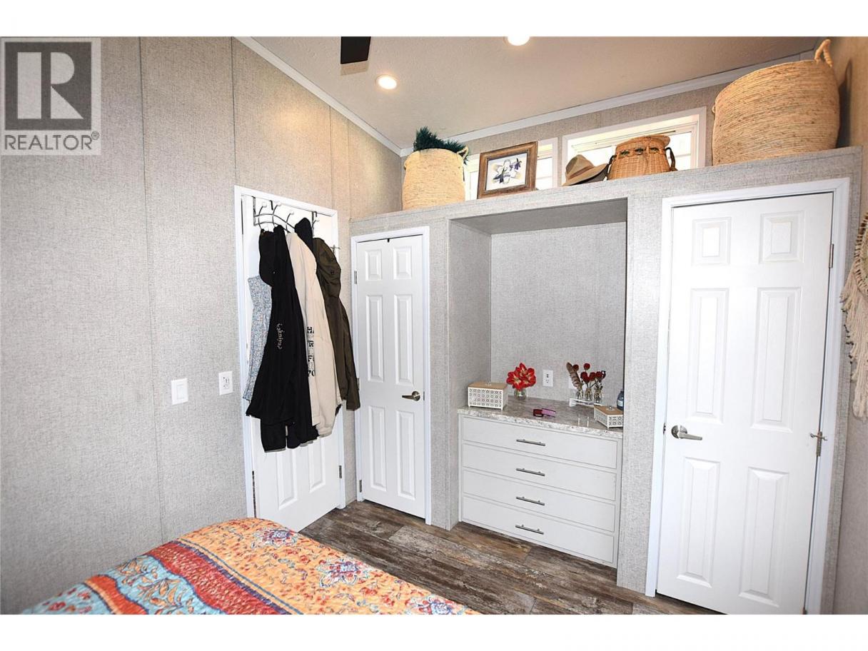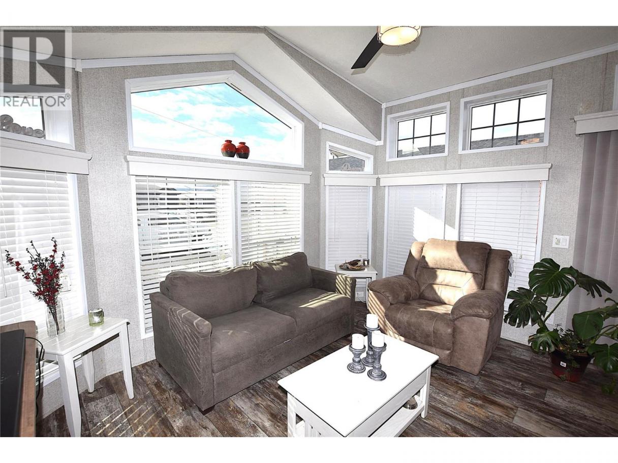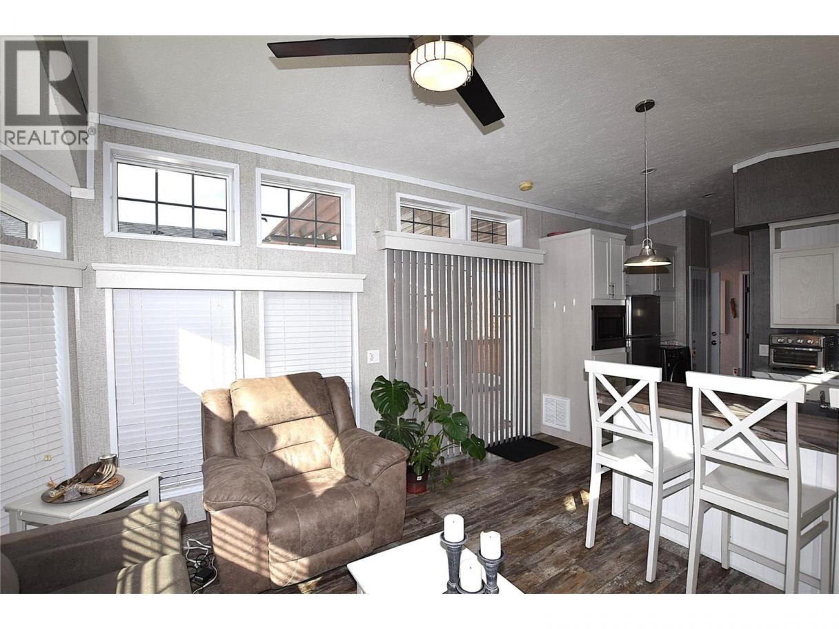 Welcome to #5–65 Antoine Road, a beautifully maintained 8-year-old Park Model home in Willow Lake Side Homes MHP—just 10 minutes from Vernon and less than 5 minutes to the golf course. This bright and inviting home features an open-concept main living area with vaulted ceilings and an abundance of windows, filling the space with natural light. The kitchen is thoughtfully designed with a large island, farmhouse-style sink, and stainless steel appliances—including a dishwasher—making it both stylish and functional. The living room offers a charming bay window and a cozy electric fireplace, perfect for adding warmth and ambiance on cooler evenings. The bedroom is well-appointed with two closets featuring built-in drawers, plus additional built-in storage above the bed for maximum organization. Step outside to enjoy the spacious 9' x 22' covered deck—ideal for relaxing or entertaining throughout the spring, summer, and fall. The fully fenced yard provides privacy, ample gardening space, and includes a 10' x 8' shed for extra storage. Additional features include: Soft water system Carport plus two additional parking spots Access to Okanagan Lake The pad rental is an affordable $400/month and includes water, sewer, garbage, road maintenance, and lake access. An excellent condo alternative for anyone looking to enjoy affordable living in the Okanagan, close to the lake and all amenities. (id:6769)