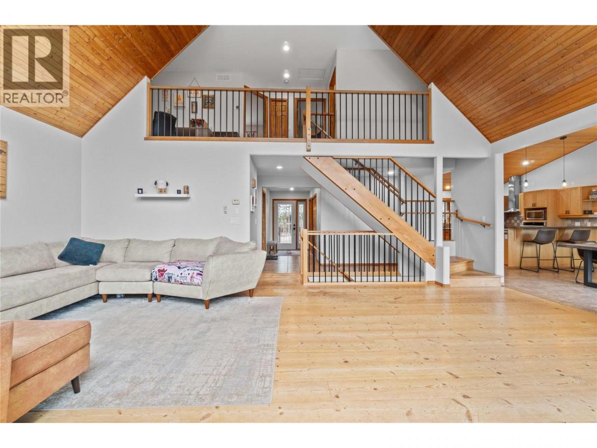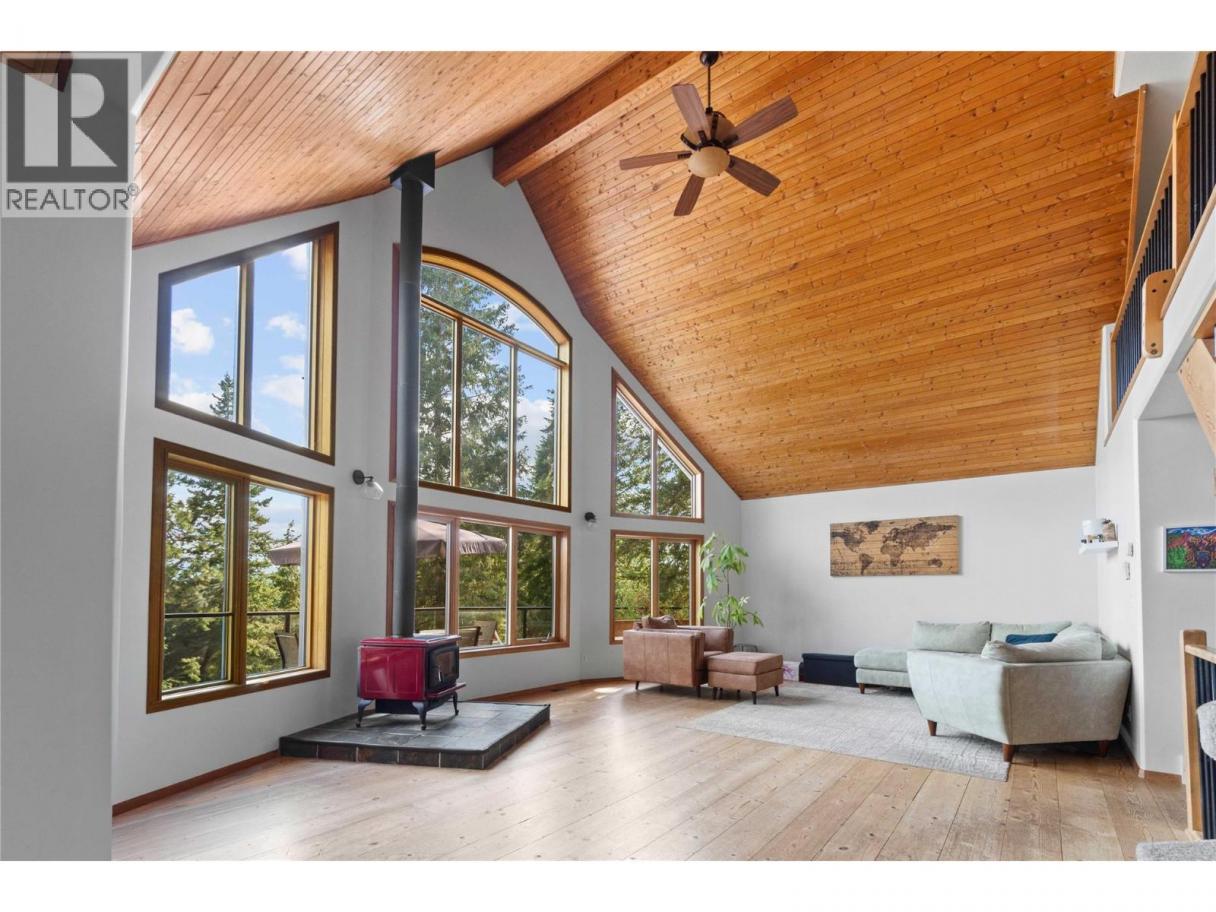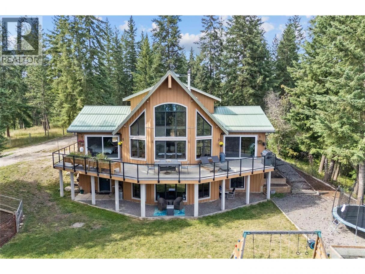 Rustic charm and modern comfort in this stunning 5.14-acre retreat. With 3,890 sq. ft., 5 bedrooms and 4 bathrooms, this home is designed for both relaxation and privacy. The heart of the home is the soaring A-frame style living room, where a wall of windows frames serene forest views and floods the space with natural light. Tongue-and-groove wood ceilings continue through the main living areas and inviting primary suite, adding warmth and character. The spacious kitchen is a chef’s delight, featuring a wall oven, gas range, and a peninsula with eating bar. An oversized sliding door from the dining area opens to an expansive deck, perfect for outdoor gatherings and soaking in the mountain views. The main floor also offers a generous primary bedroom with deck access, spa-inspired ensuite with soaker tub and walk-in shower, plus an additional bedroom or den, half bathroom, and laundry room. Upstairs, a loft overlooks the living room plus two more bedrooms & bathroom. The basement is the ultimate entertainment hub, with a large rec room, wet bar, and fifth bedroom with full bathroom. Outside offers abundant space for hobbies, animals, or whatever your needs may be. Outbuildings include a 24’ x 24’ workshop with attached double carport & equipment storage, 14’ x 10’ storage shed, 30’ x 22’ barn & chicken coop. The fully fenced and gated property offers exceptional privacy. This property is more than a home—it’s a lifestyle, offering peace, space, & endless possibilities. (id:6769)