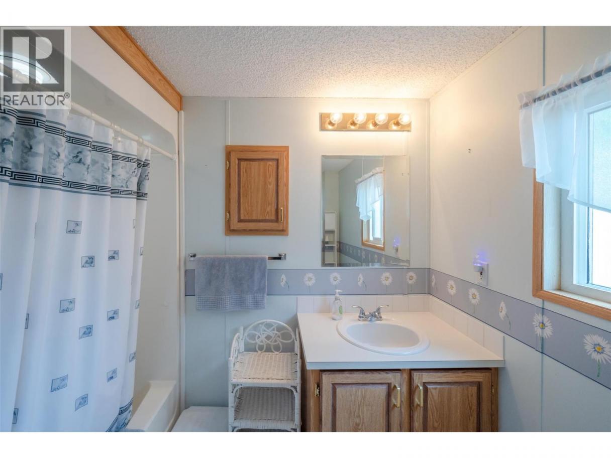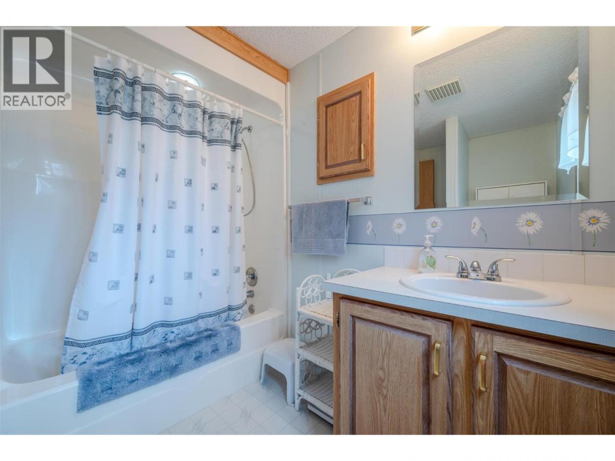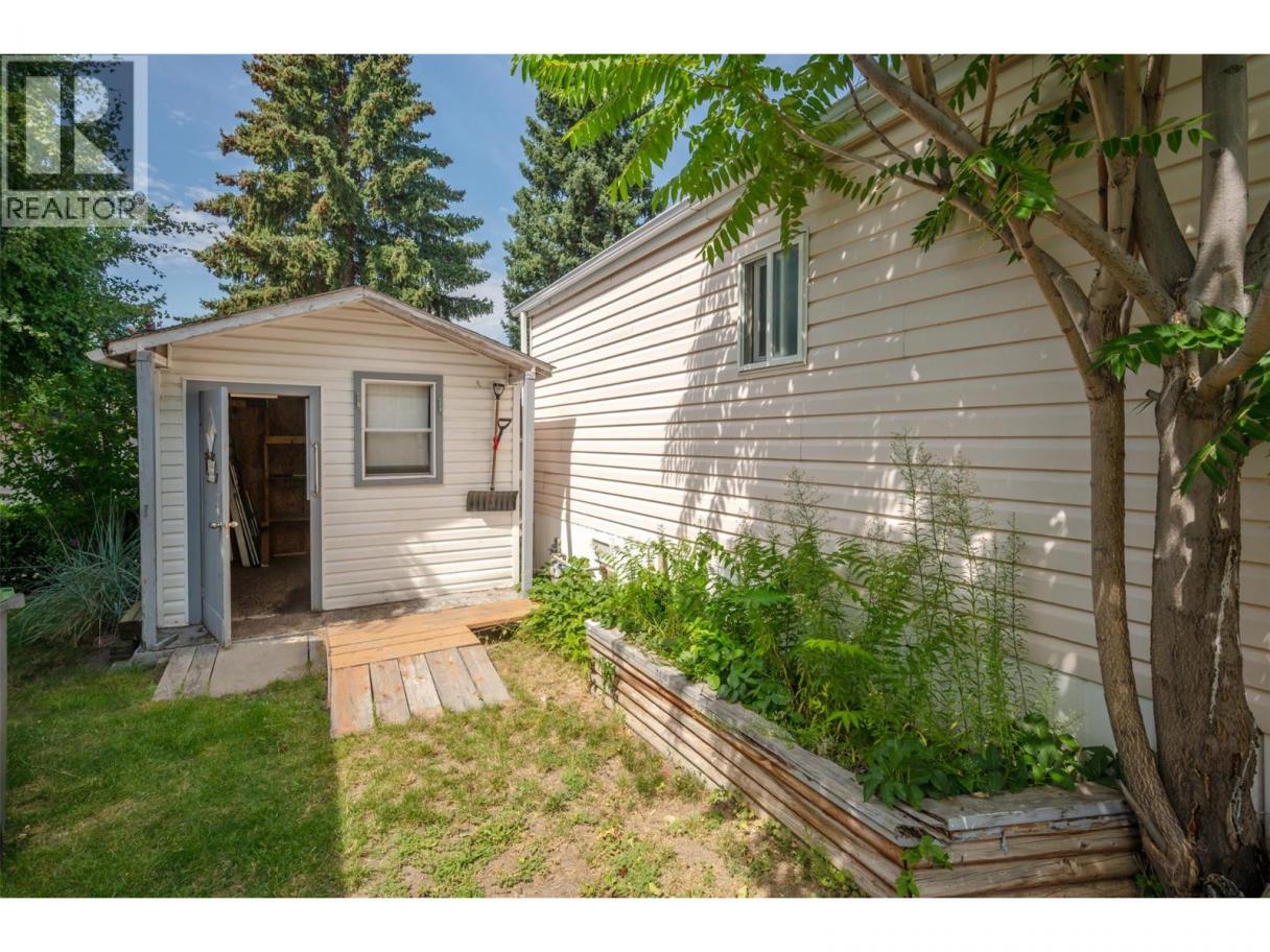 Corner lot, priced to sell. This well-appointed 2 bedroom, 2 bathroom one level home offers a quiet location with great views. Features of this home include a bright kitchen with skylights, vaulted ceilings, a bedroom at each end of the home with a private ensuite attached to the primary bedroom, and an attached storage area. Outside you can enjoy the large covered deck with views of Peach Cliff or putter in the 8x8 shed, perfect for your projects. You even have your own peach tree! This unit is located in Peach Cliff MHP, which is a 55+ park that does allow pets upon approval. Book your viewing today. (id:6769)